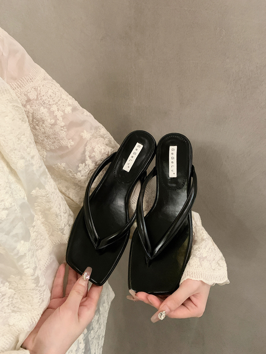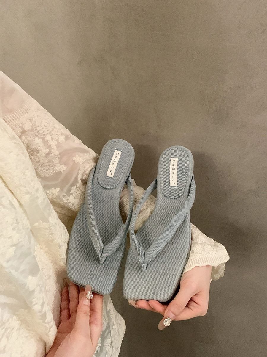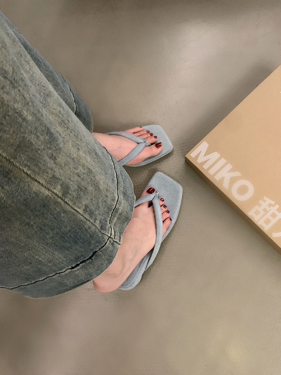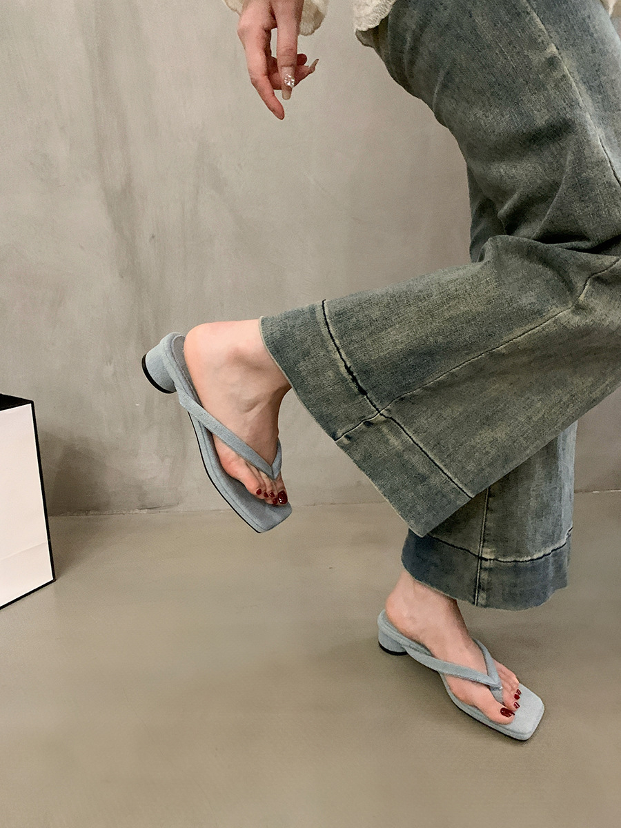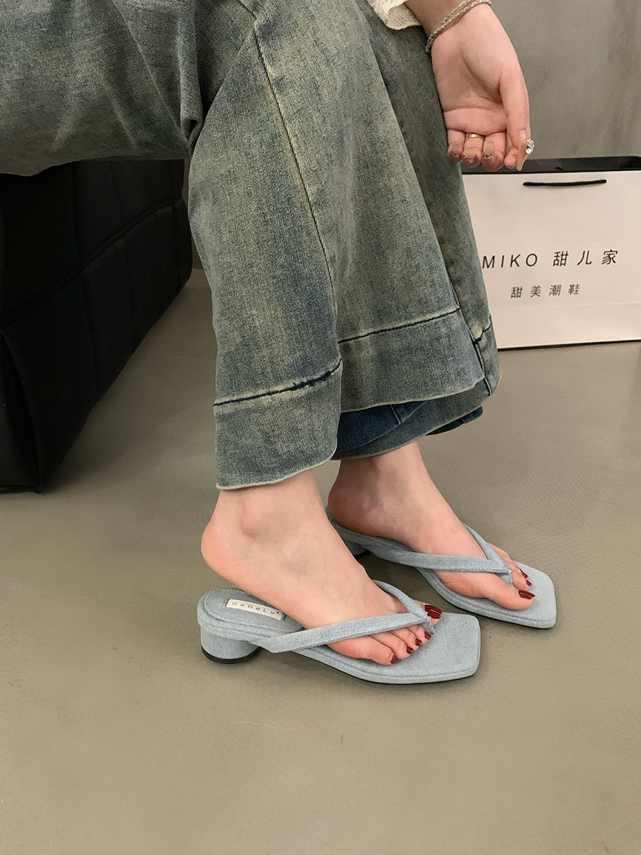 두꺼운 힐 실버 플립 플롭 여성 여름 아우터웨어 2024 새로운 유행 프랑스 스타일 작은 샌들 플립 플롭스토어 가기
