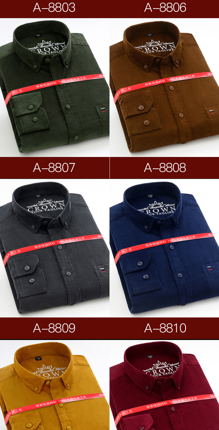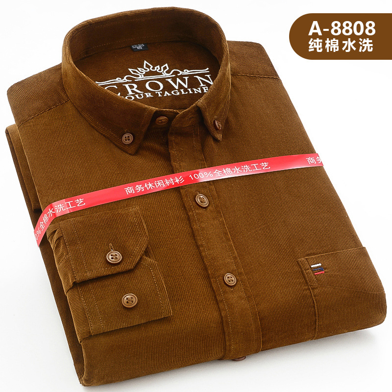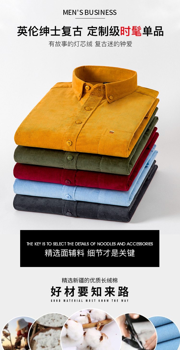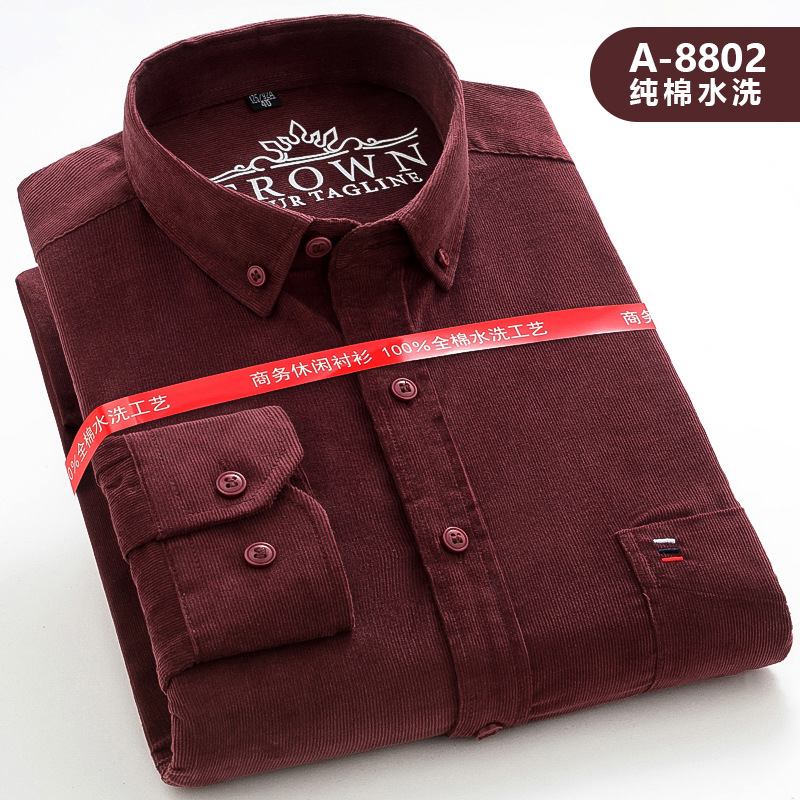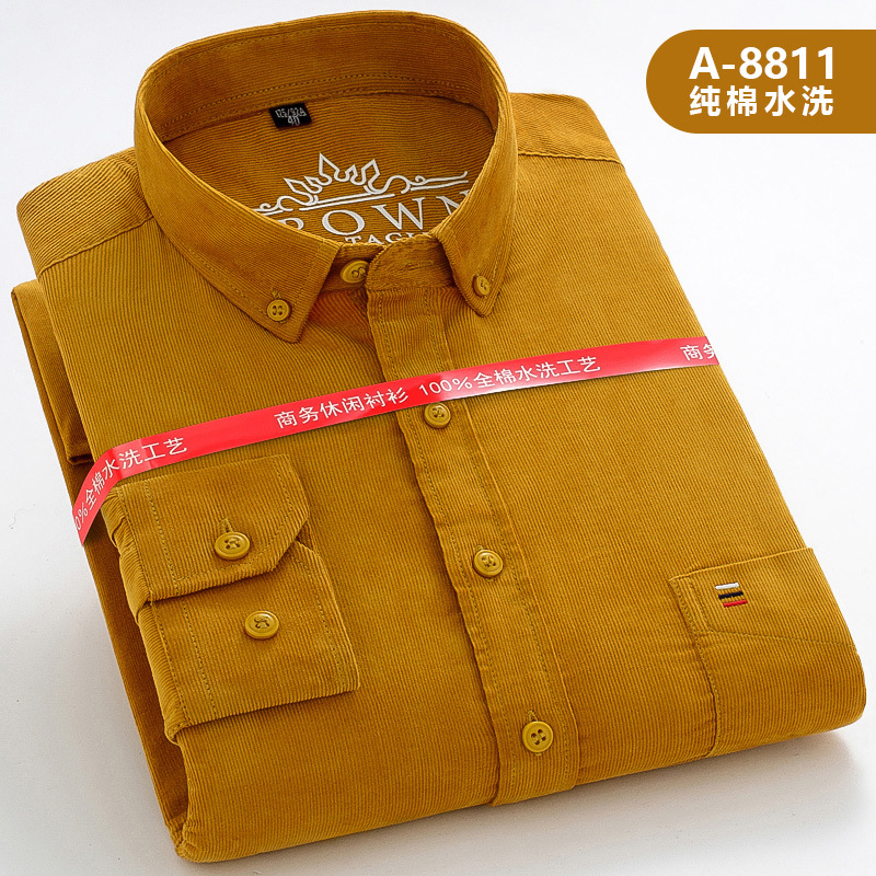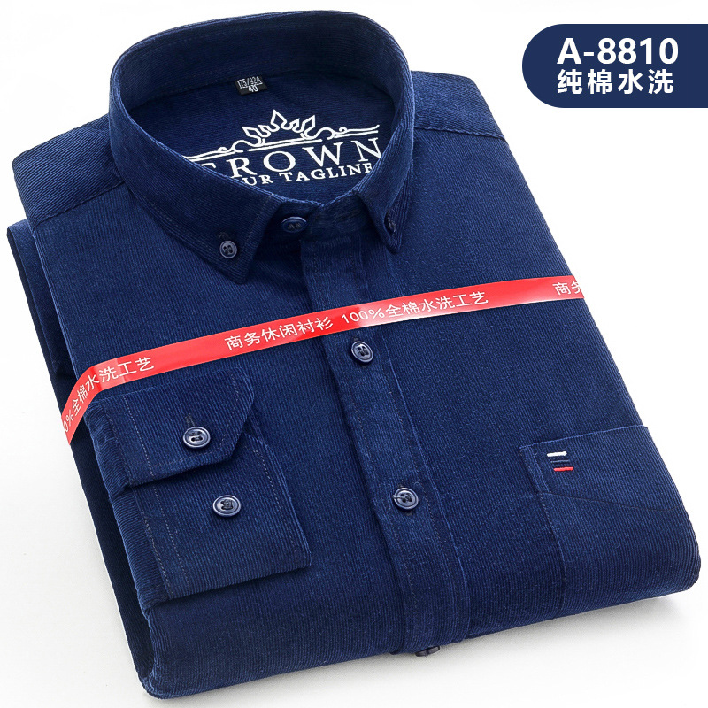 중년 남성 순면 코듀로이 긴팔 셔츠 비즈니스 슬림 캐주얼 봄과 가을 인치 셔츠 플러스 사이즈 도매 세대스토어 가기