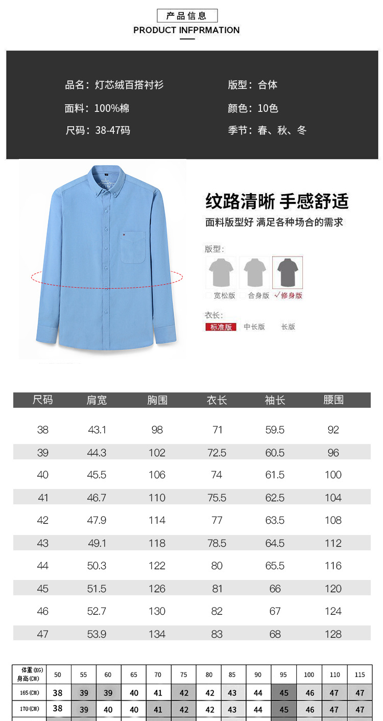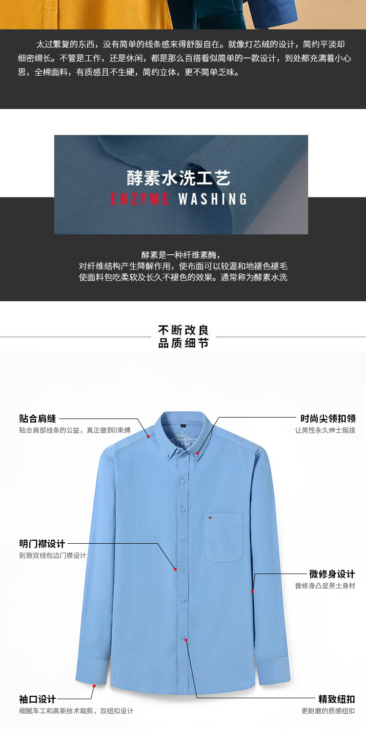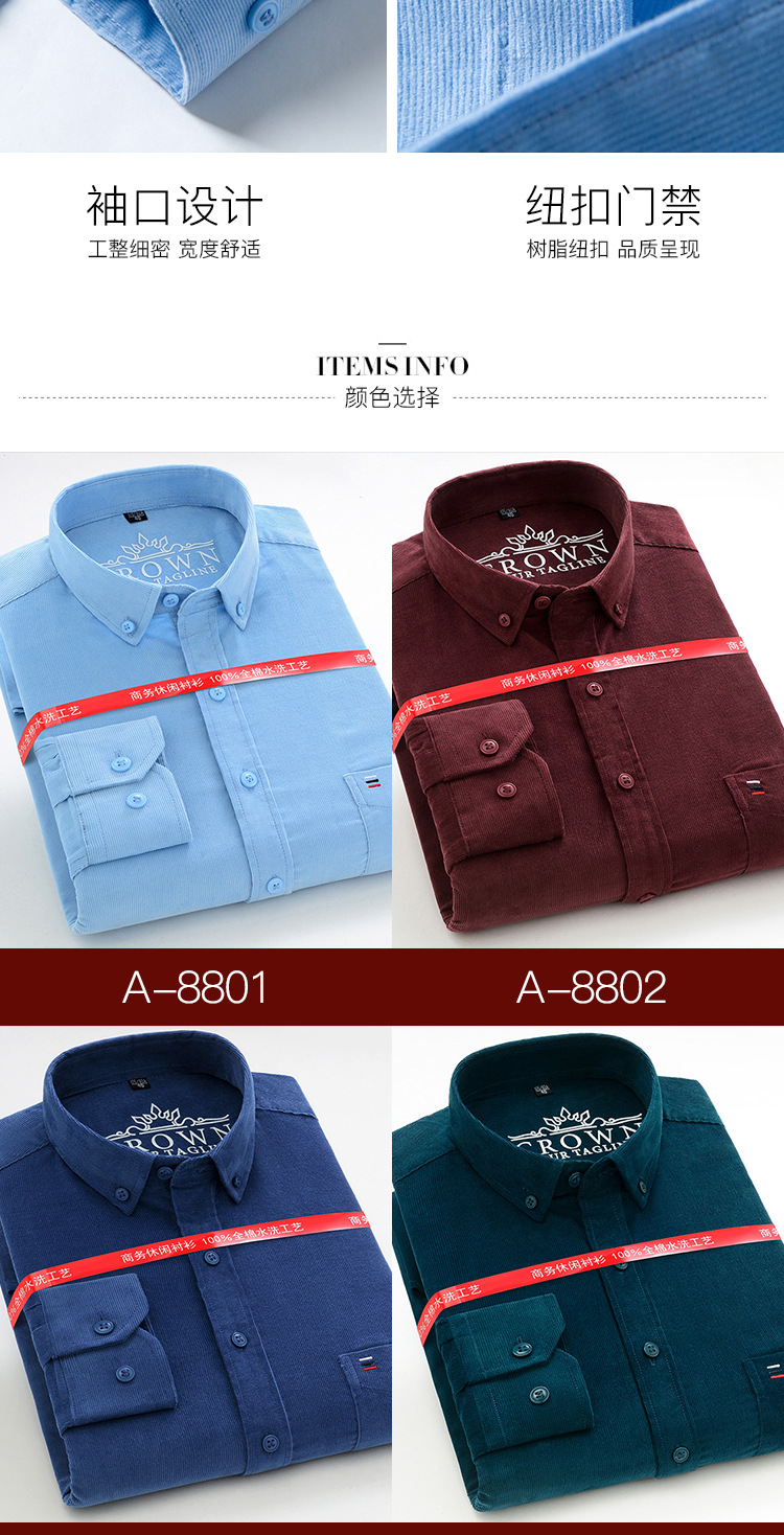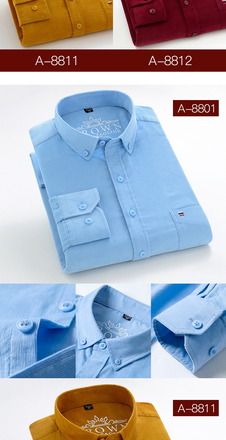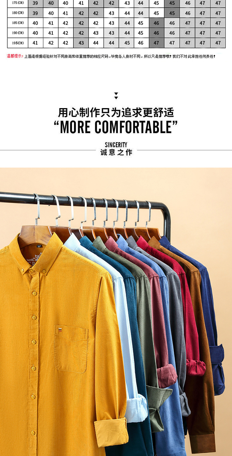 중년 남성 순면 코듀로이 긴팔 셔츠 비즈니스 슬림 캐주얼 봄과 가을 인치 셔츠 플러스 사이즈 도매 세대스토어 가기