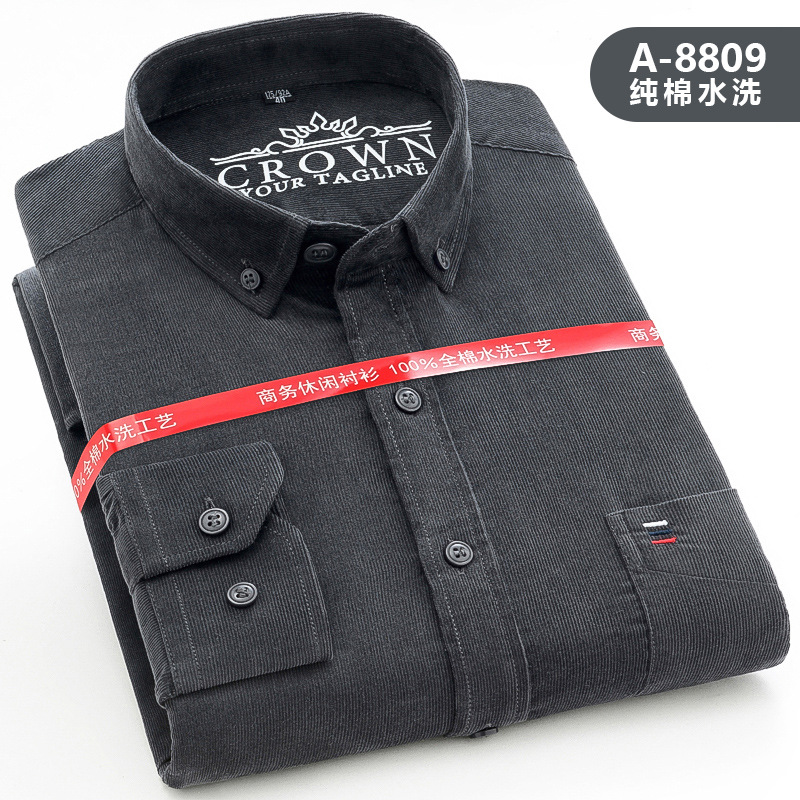중년 남성 순면 코듀로이 긴팔 셔츠 비즈니스 슬림 캐주얼 봄과 가을 인치 셔츠 플러스 사이즈 도매 세대
