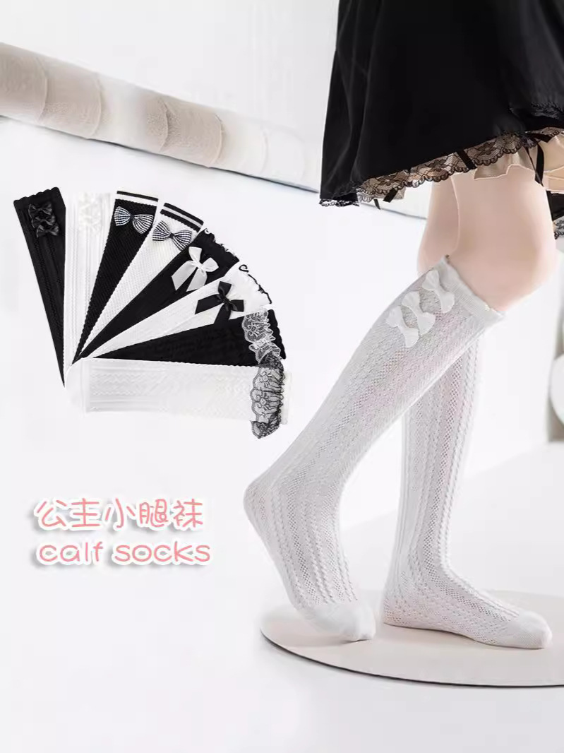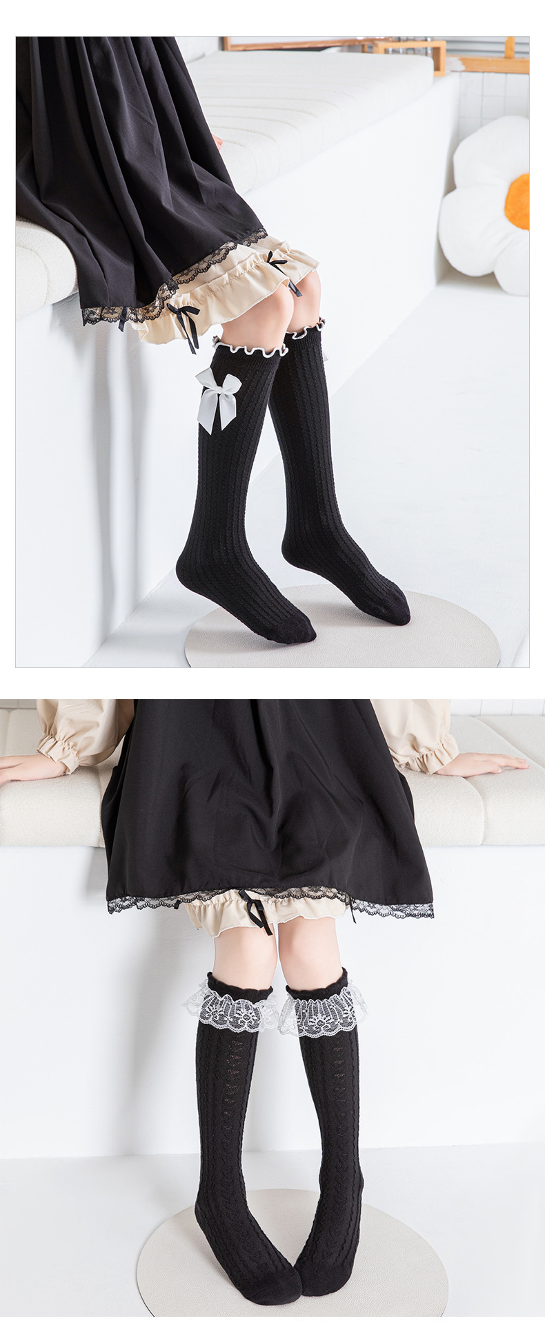 어린이 송아지 양말 가을 단색 소녀 도트 원사 레이스와 무릎 양말 빗 코튼 달콤한 여성의 보물 긴 양말