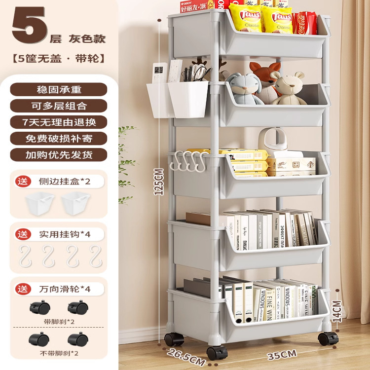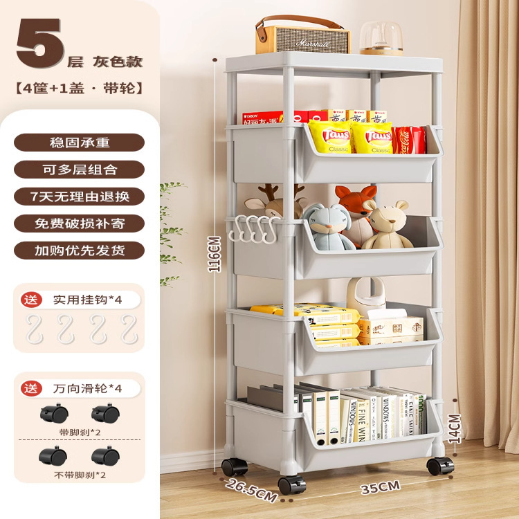 트롤리 스낵 랙 사무실 가정용 잡다한 장난감 다층 보관 및 정리 랙 이동식 바닥 스탠딩 보관 랙스토어 가기