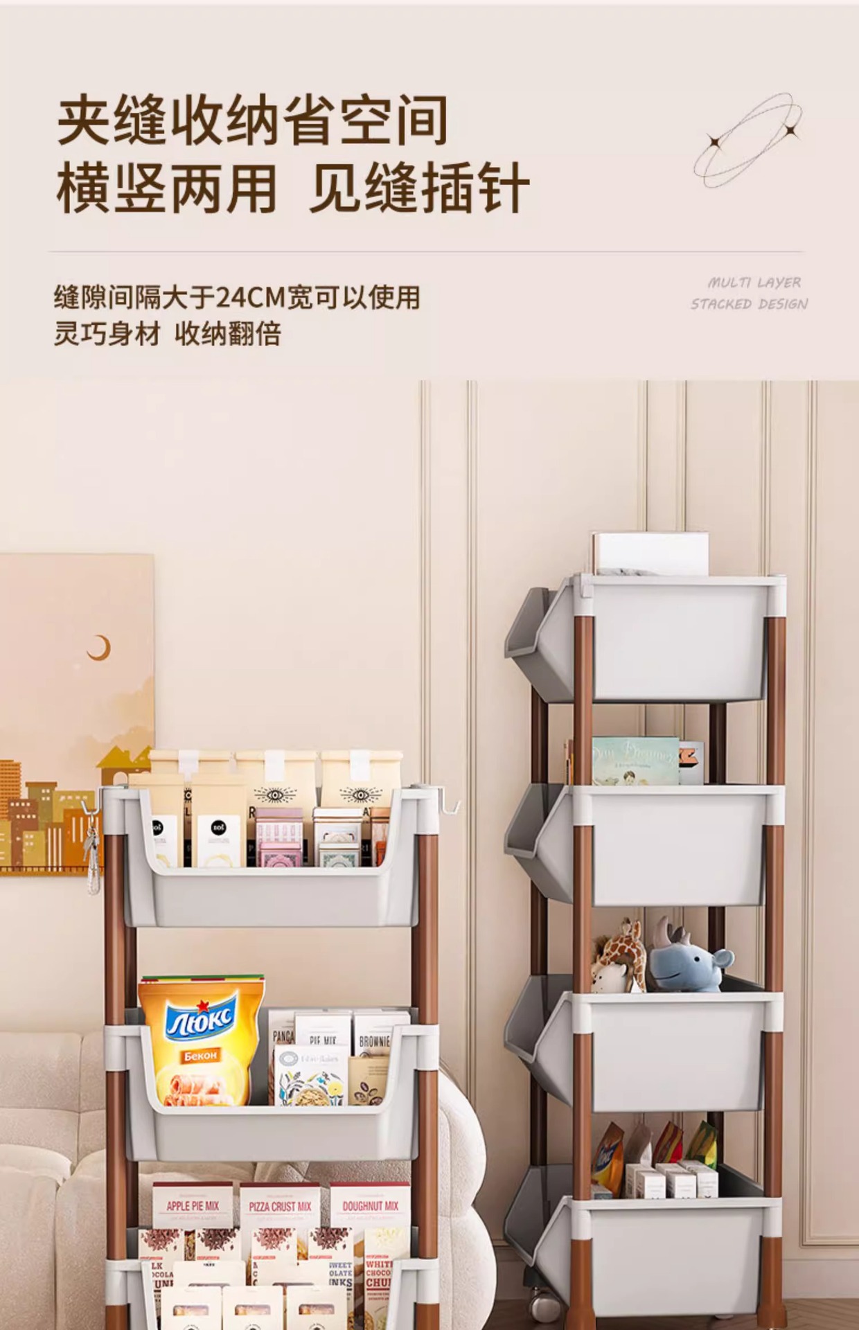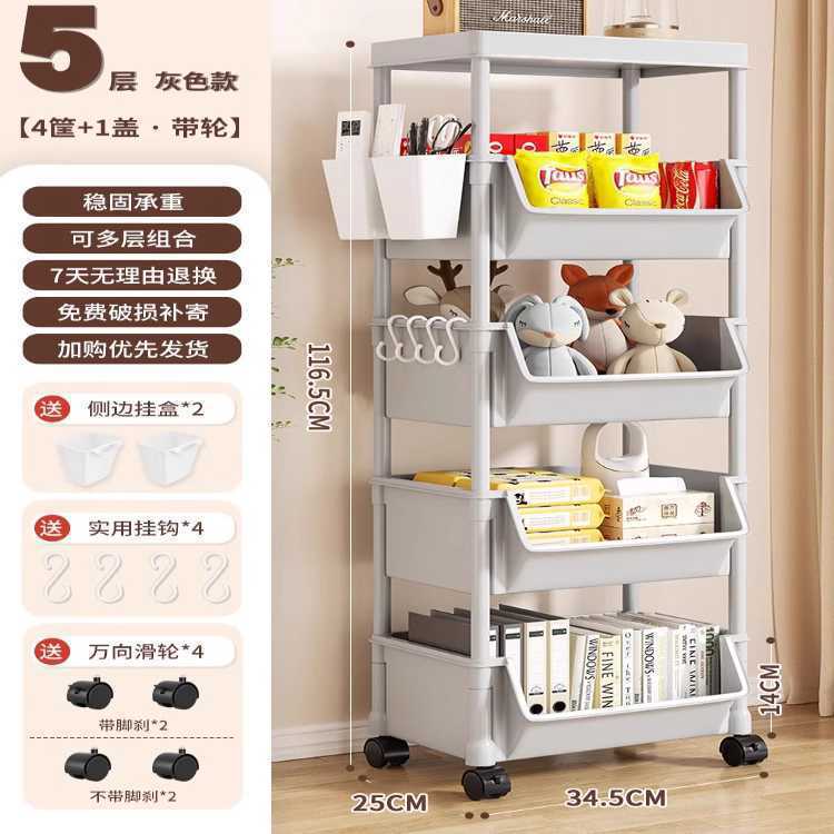 트롤리 스낵 랙 사무실 가정용 잡다한 장난감 다층 보관 및 정리 랙 이동식 바닥 스탠딩 보관 랙