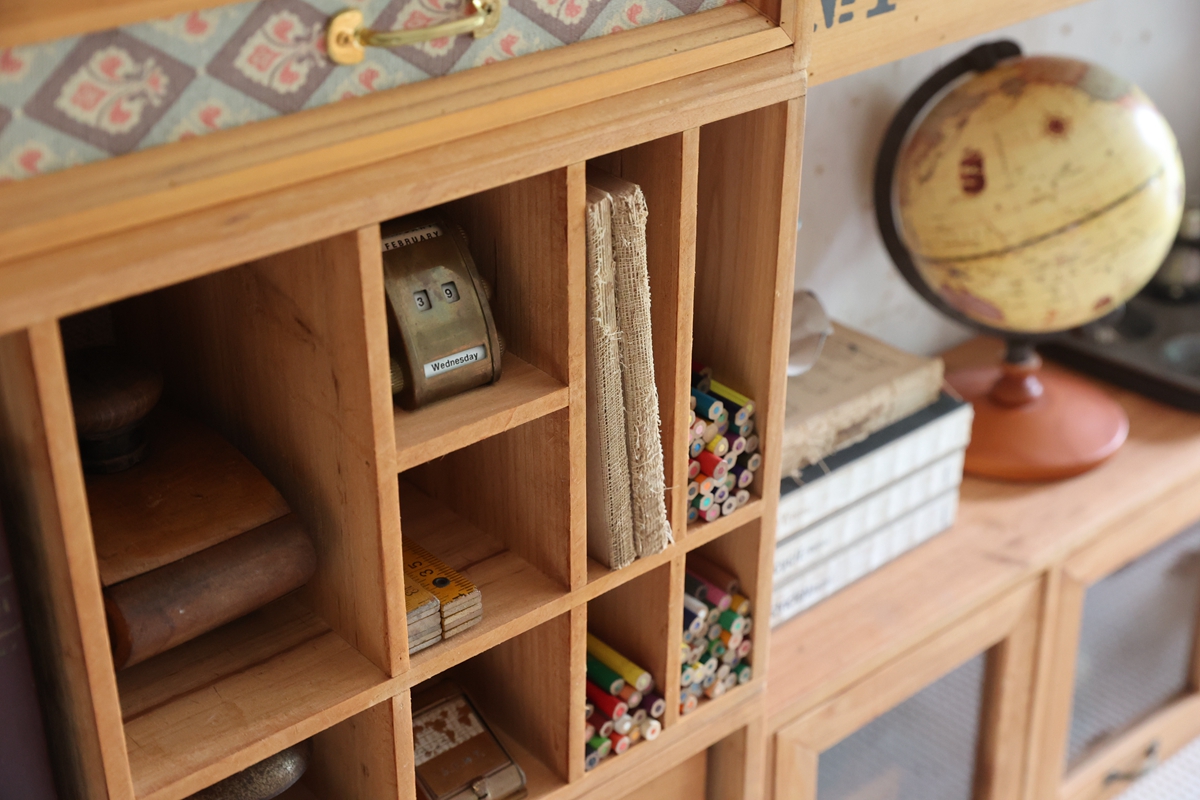 ☋ Sanshan 복고풍 데스크탑 수납함 서랍형 나무 수납장 핸드북 문구 브러쉬 책상 정리함