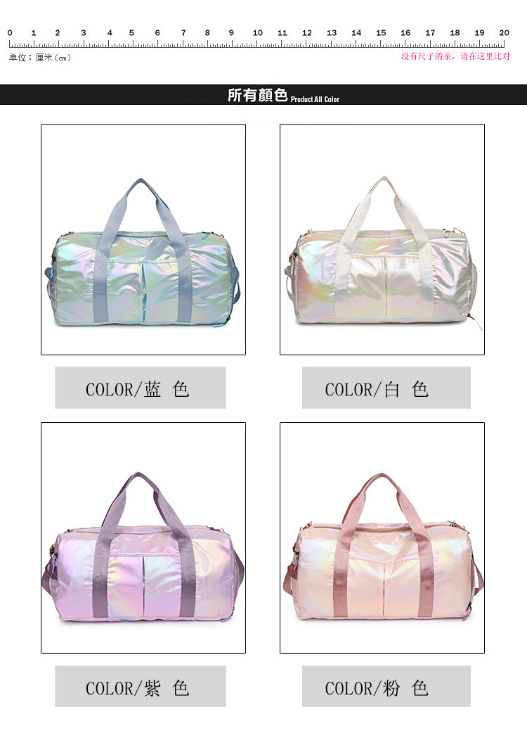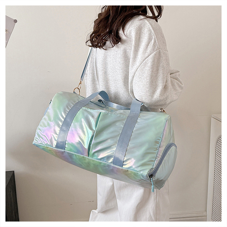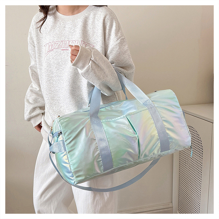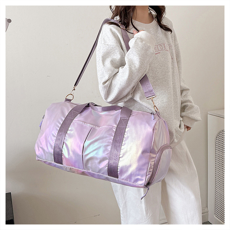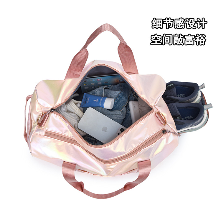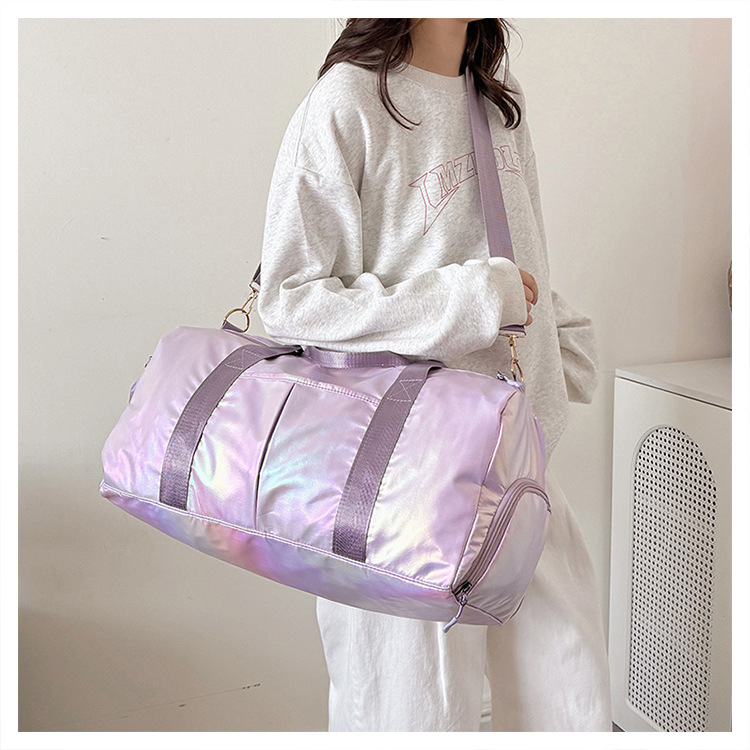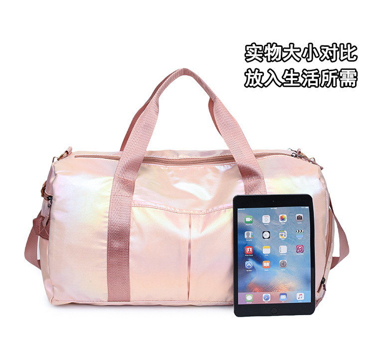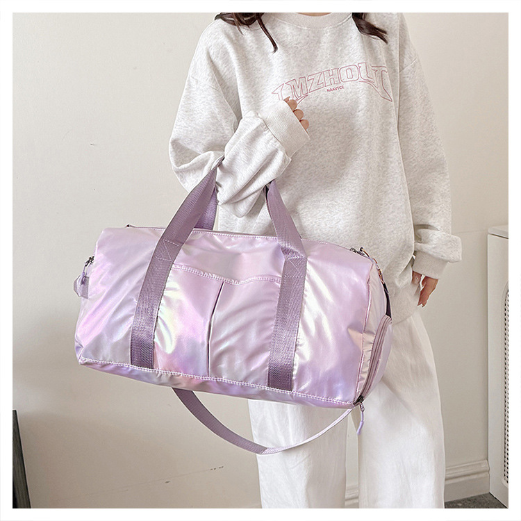 다채로운 여성 체육관 가방 건조하고 젖은 별도의 신발 훈련 가방 핸드백 대용량 진주 빛 단거리 여행 가방 가방