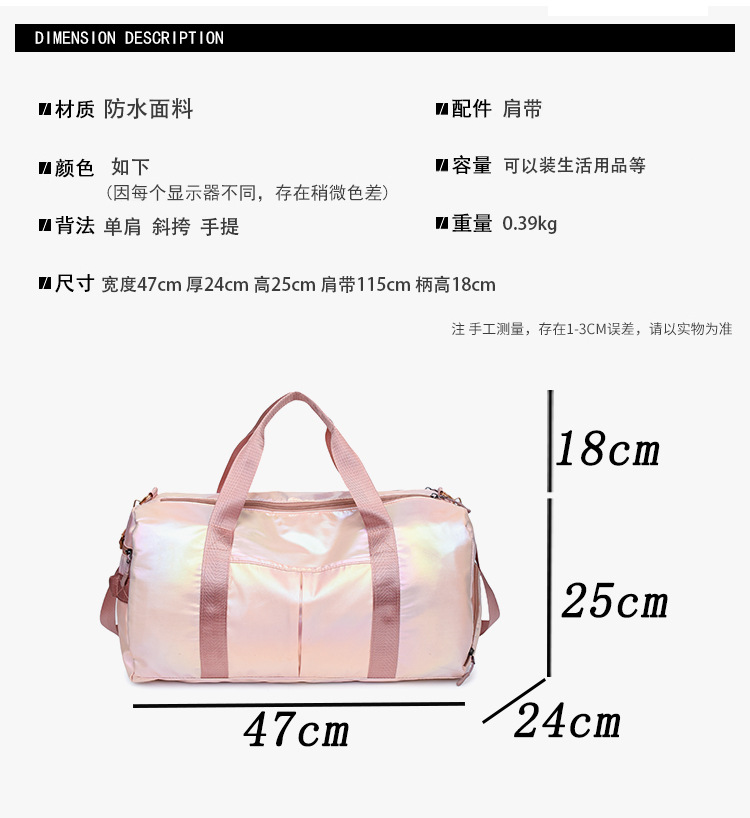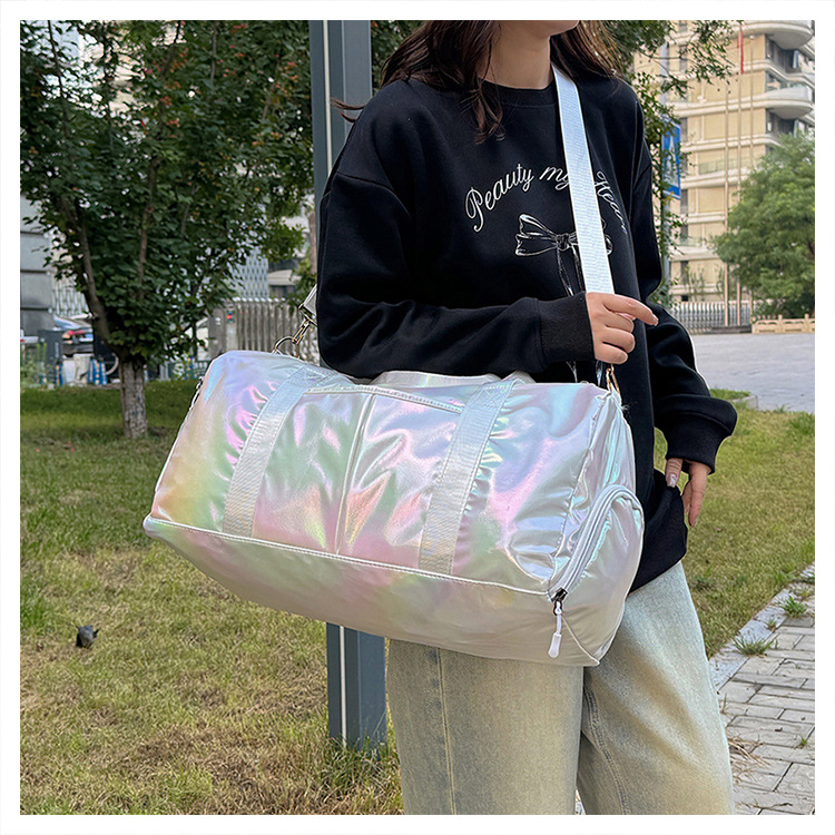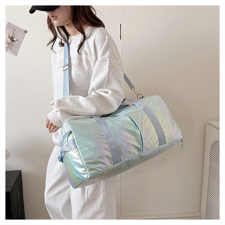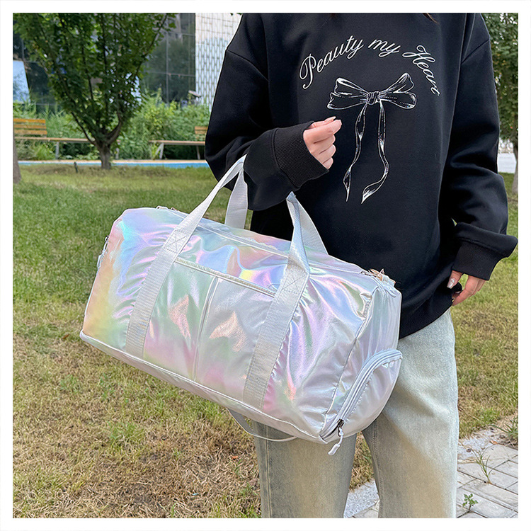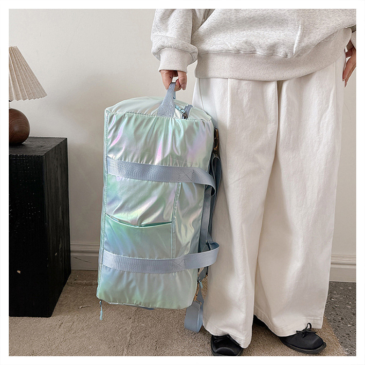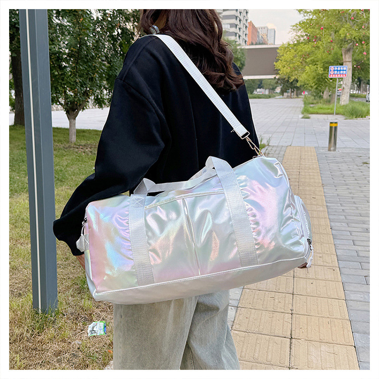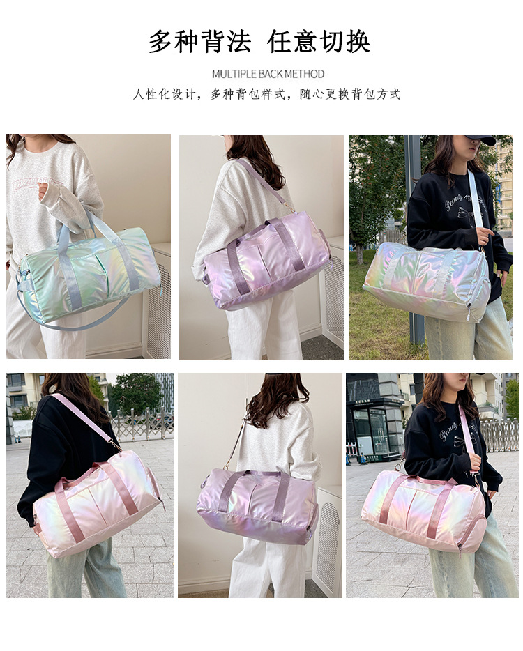 다채로운 여성 체육관 가방 건조하고 젖은 별도의 신발 훈련 가방 핸드백 대용량 진주 빛 단거리 여행 가방 가방