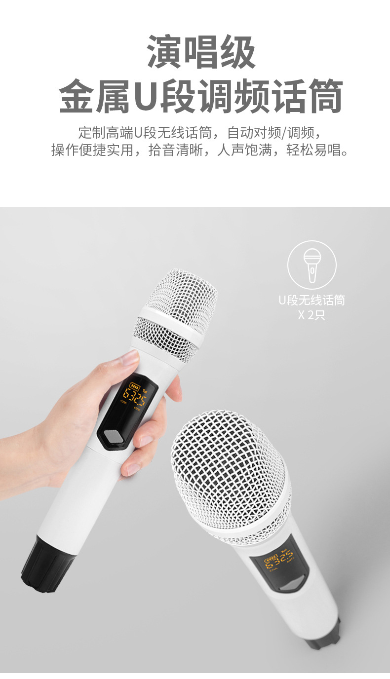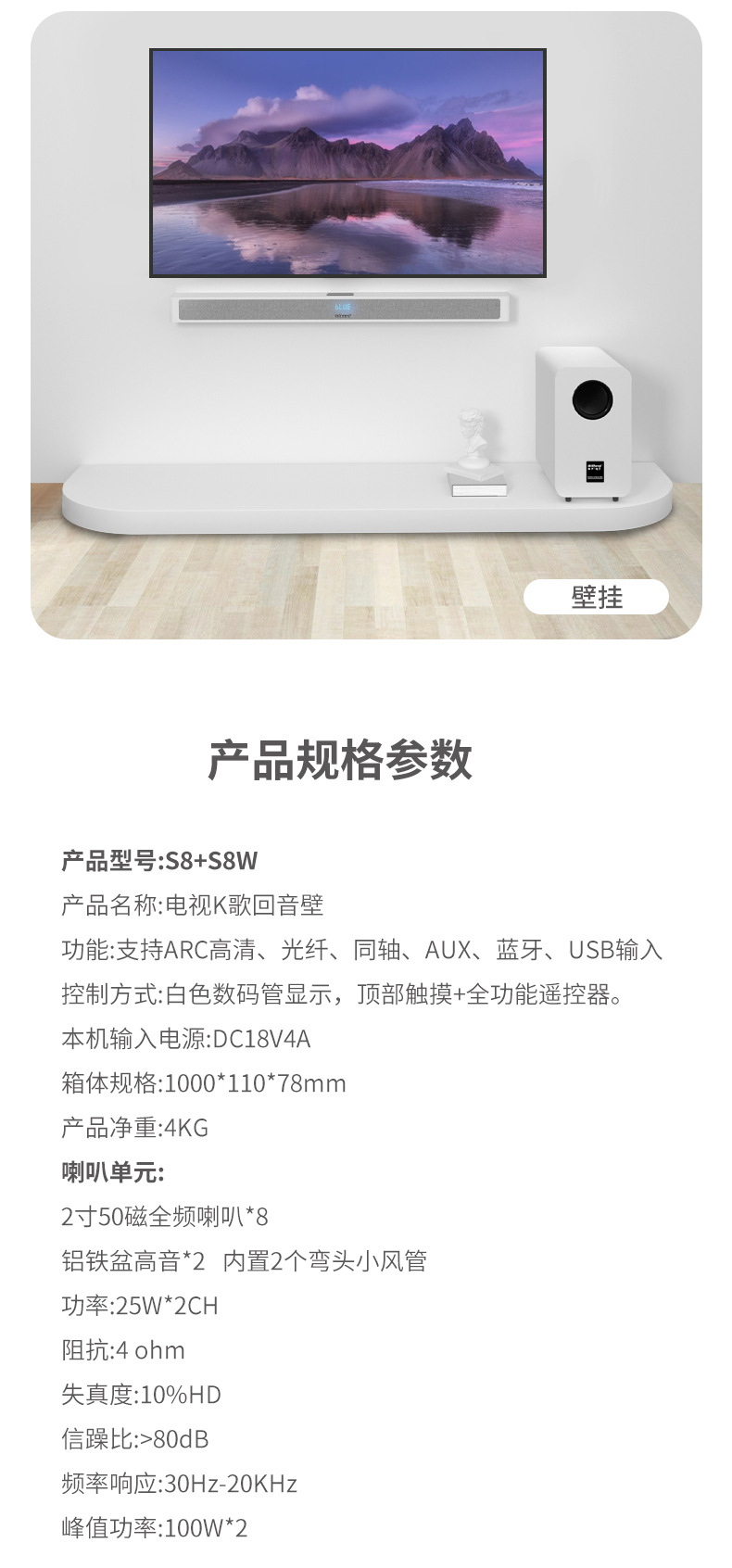 • S8 흰색 에코 벽 + 8inch 서브우퍼 + 한 쌍의 마이크 + 17inch 노래방 기계
