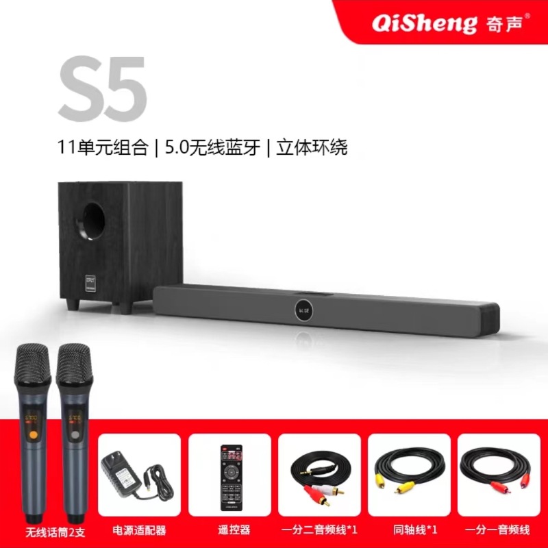 • S5 월넛 컬러 사운드바 + 6.5 서브우퍼 + 마이크 한 쌍