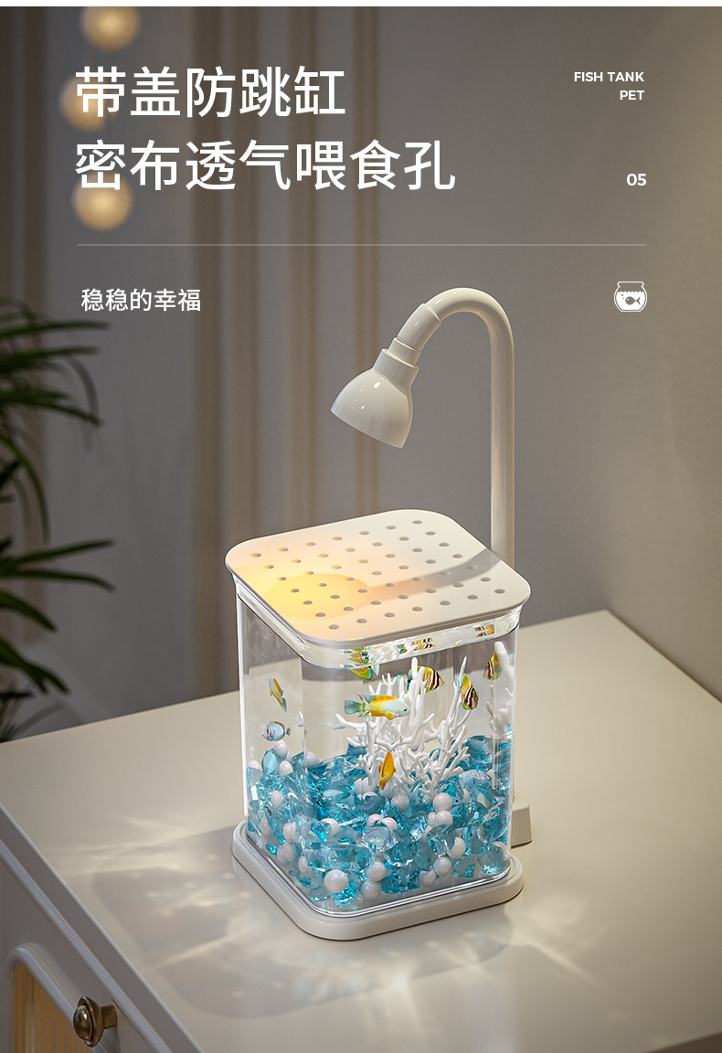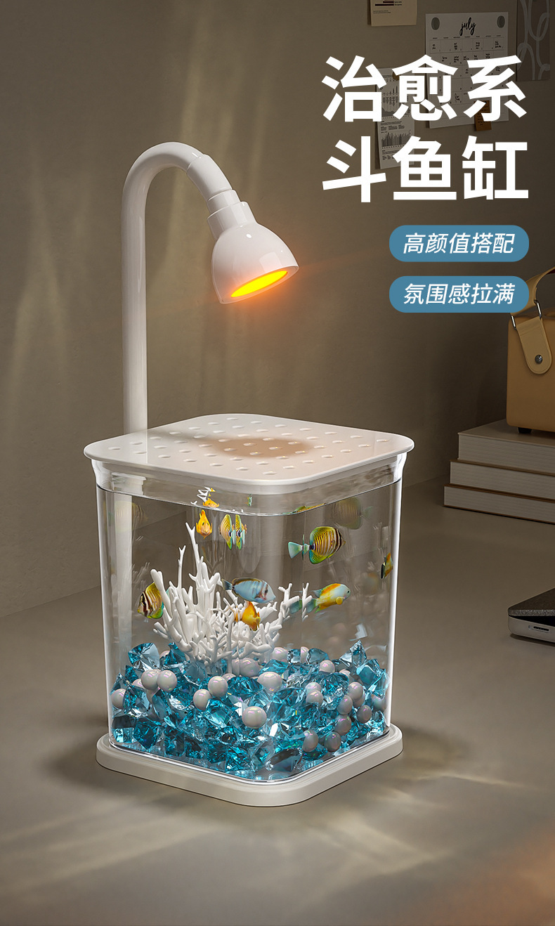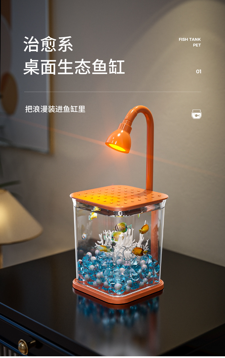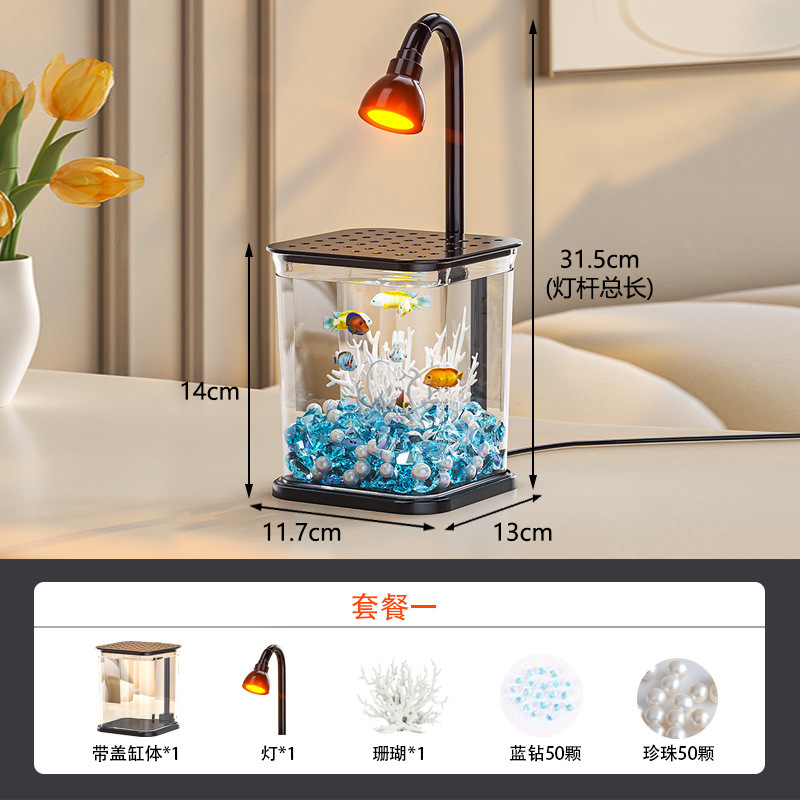 와이드 코트 인터넷 레드 두 어항 가정용 데스크탑 어항 조명 대기 빛 해파리 탱크 창조적 인 밤 빛 장식 장식품