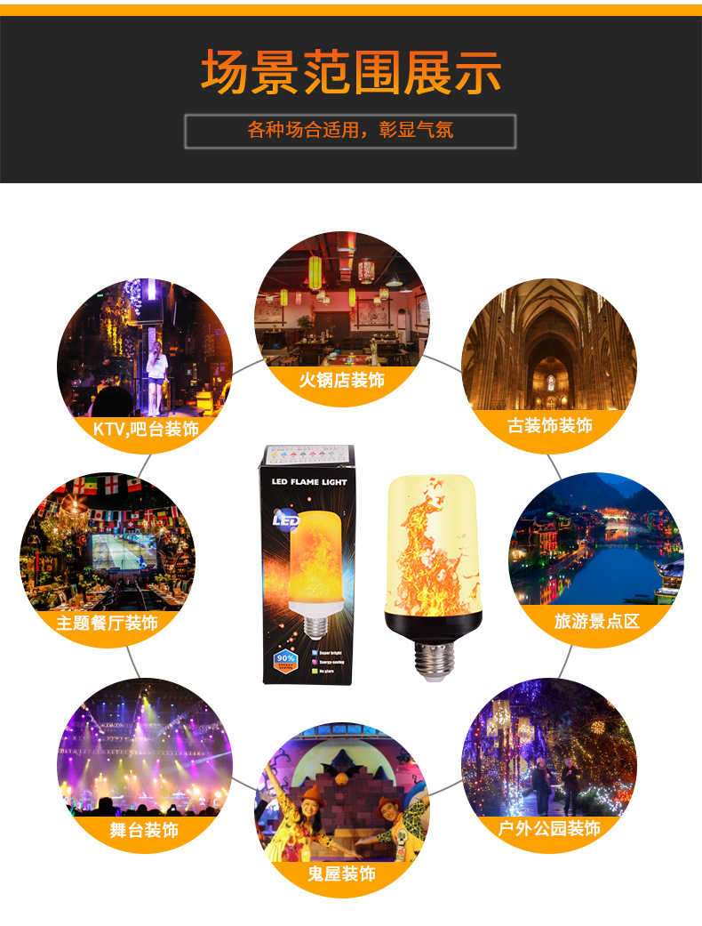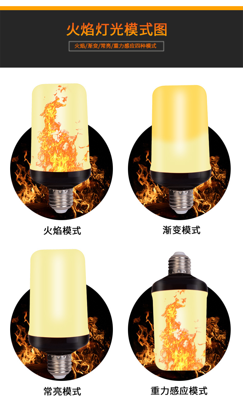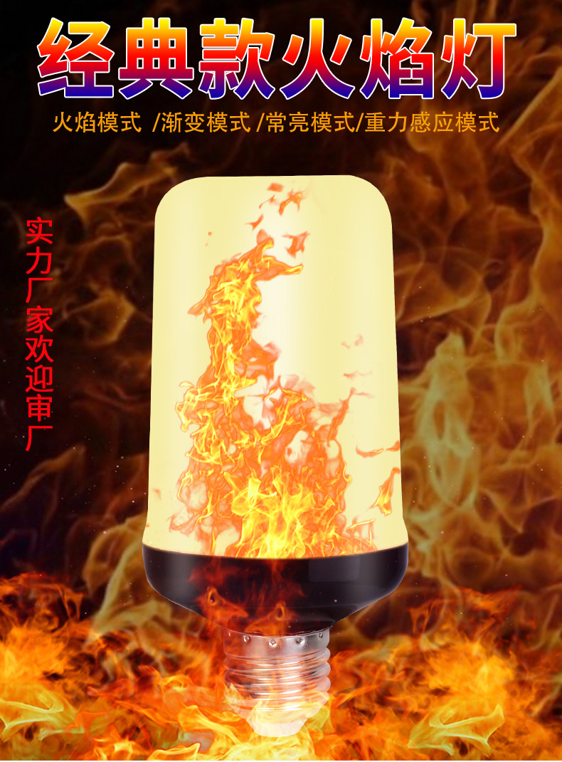 스팟 LED 불꽃 램프 중력 감지 4 모드 노란색 빛 E27 램프 홀더 가짜 불꽃 토치 점프 램프 전구스토어 가기
