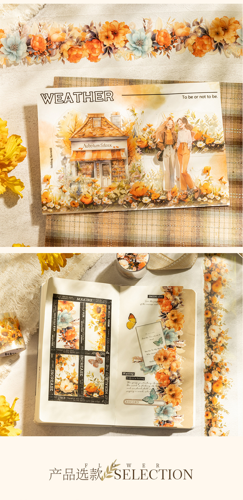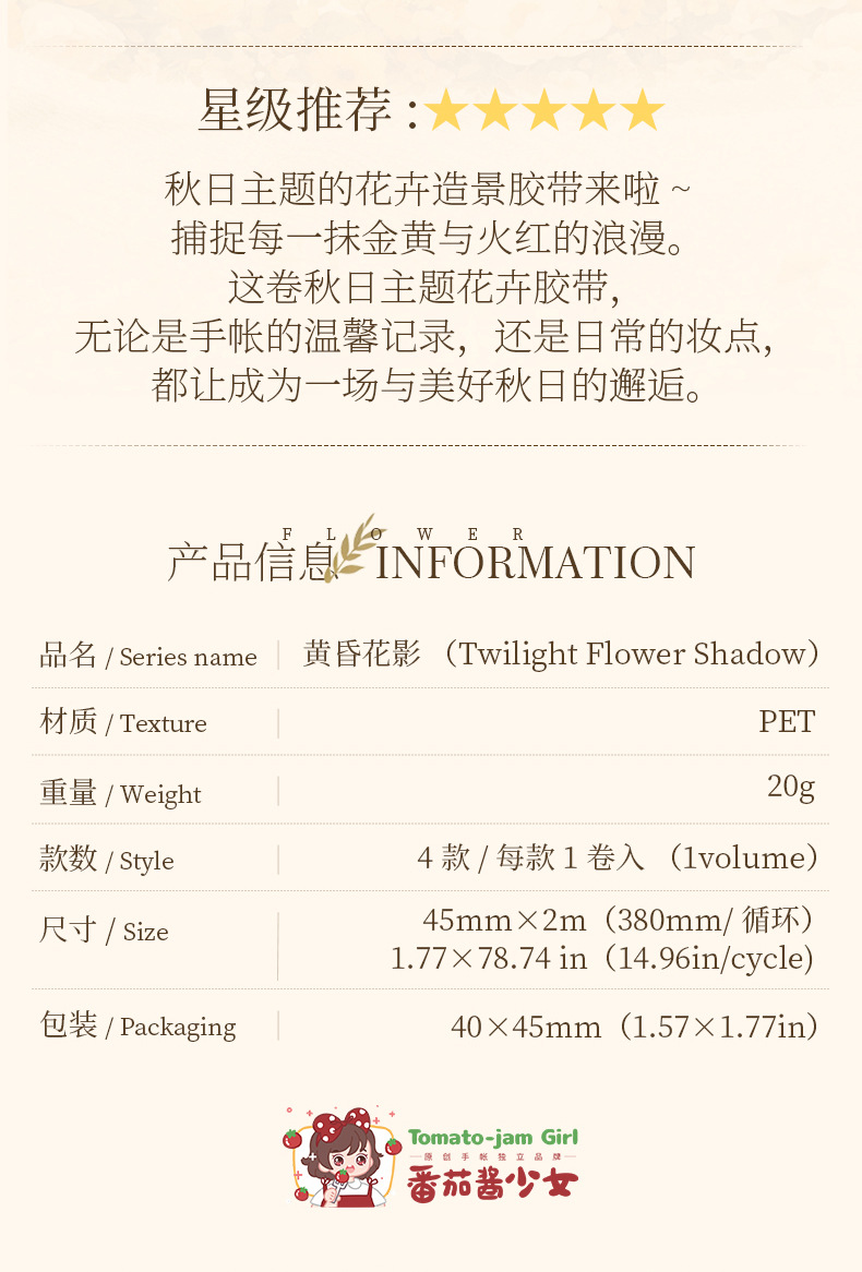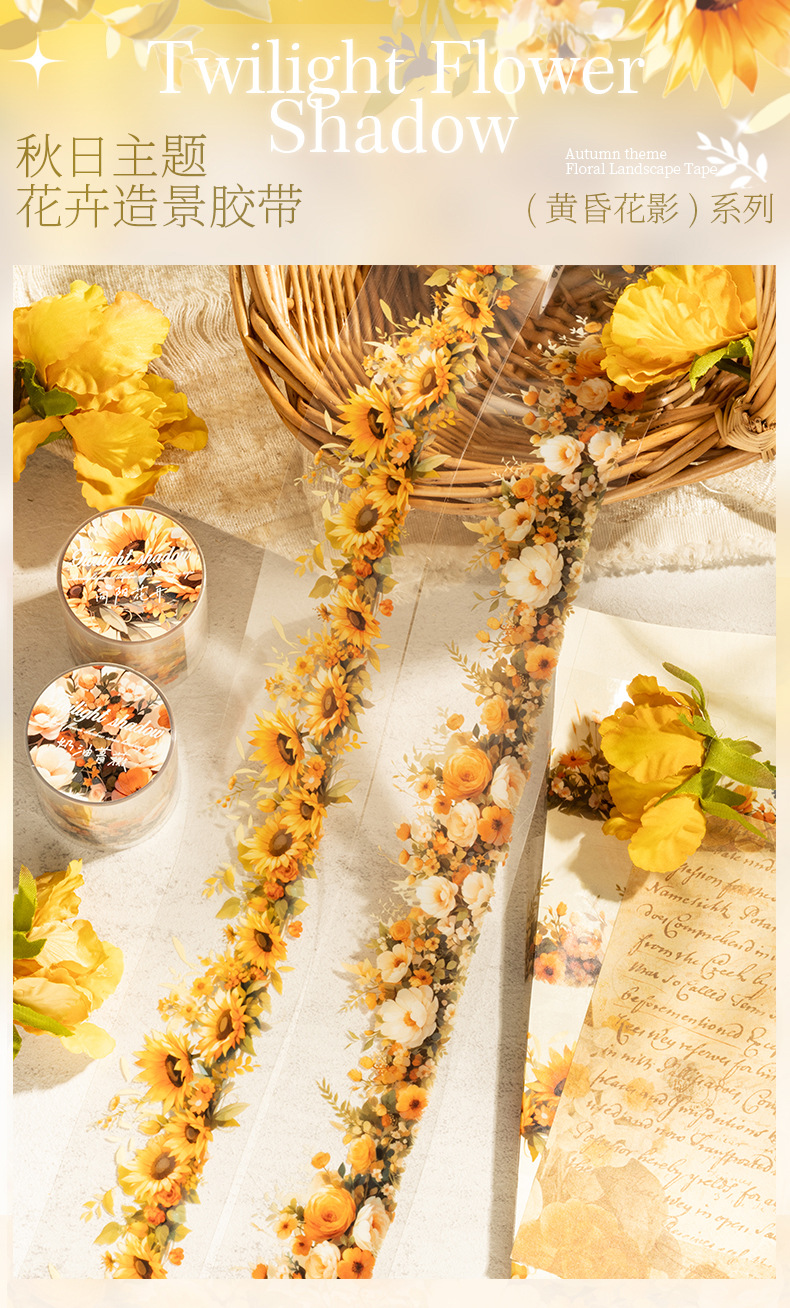 케첩 소녀 꽃 풍경 테이프 황혼 꽃 그림자 시리즈 4 가을 테마 소재 장식 스틱