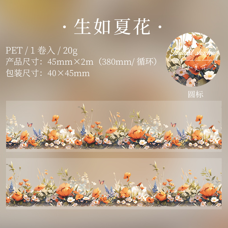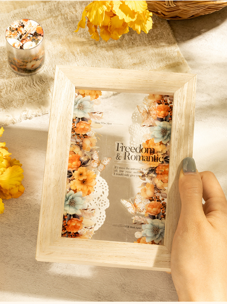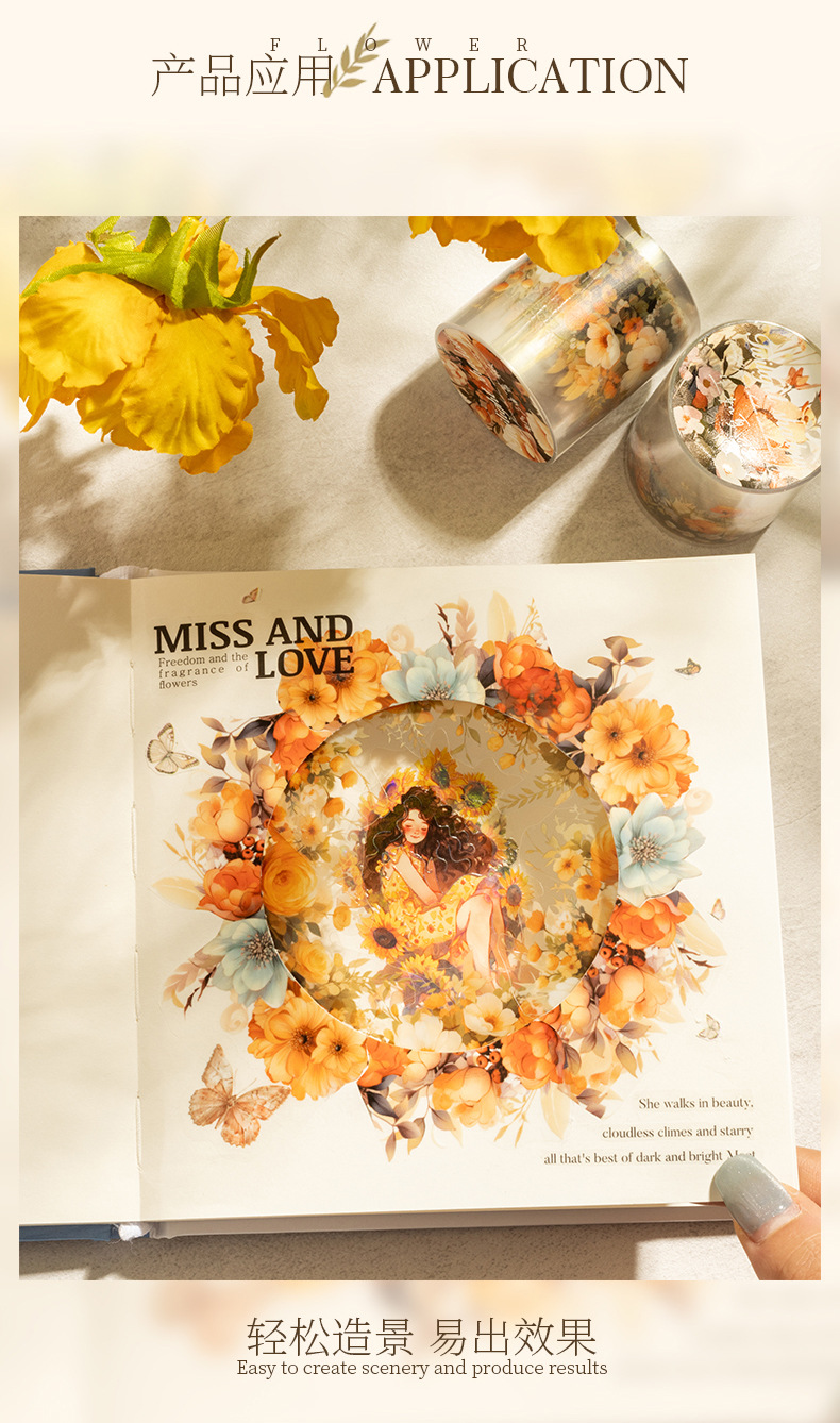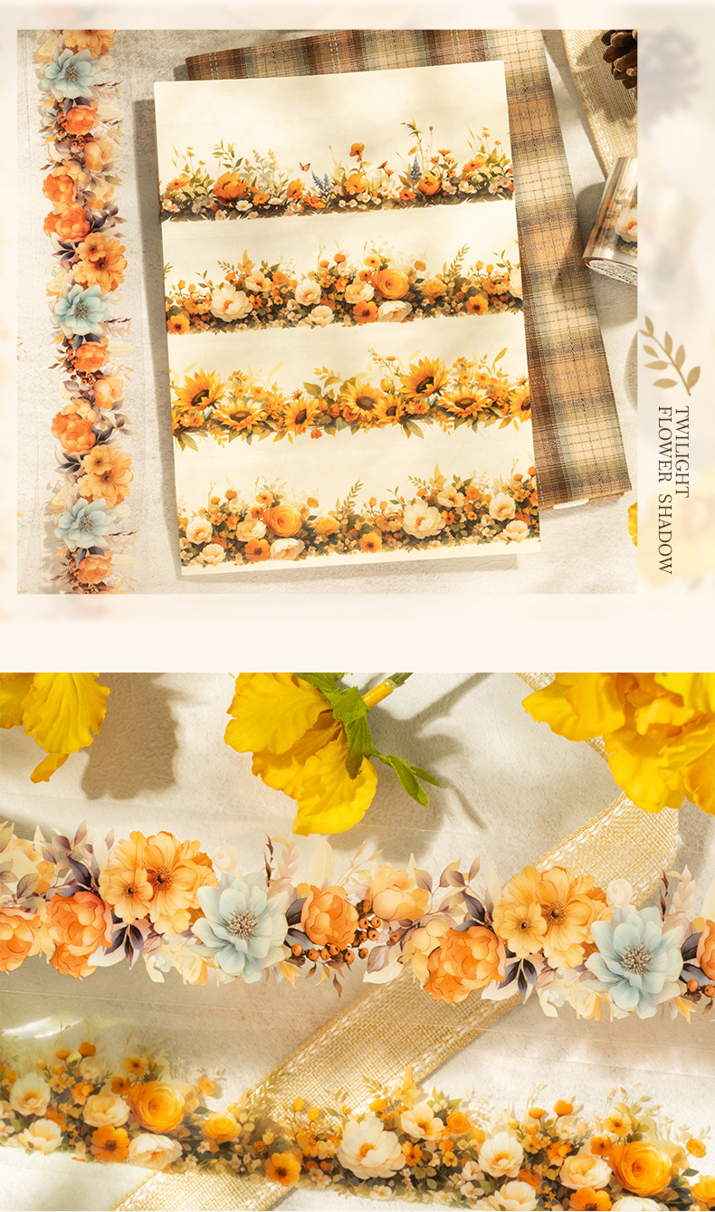 케첩 소녀 꽃 풍경 테이프 황혼 꽃 그림자 시리즈 4 가을 테마 소재 장식 스틱