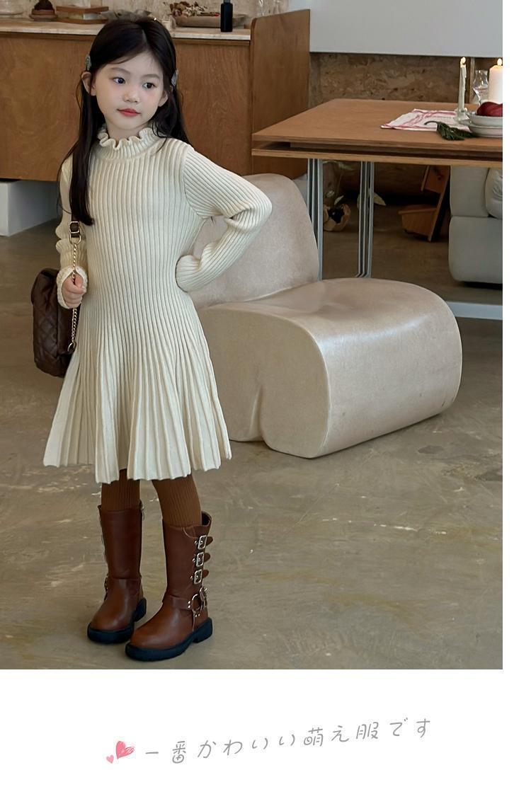 아동복 여아 단색 한국 스타일 니트 원피스 2025 가을 겨울 신상 패션 중간 길이 스웨터 원피스 트렌디 여아용스토어 가기