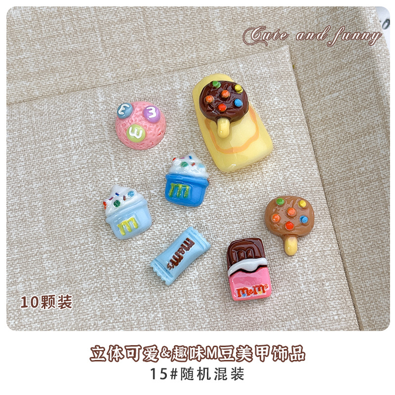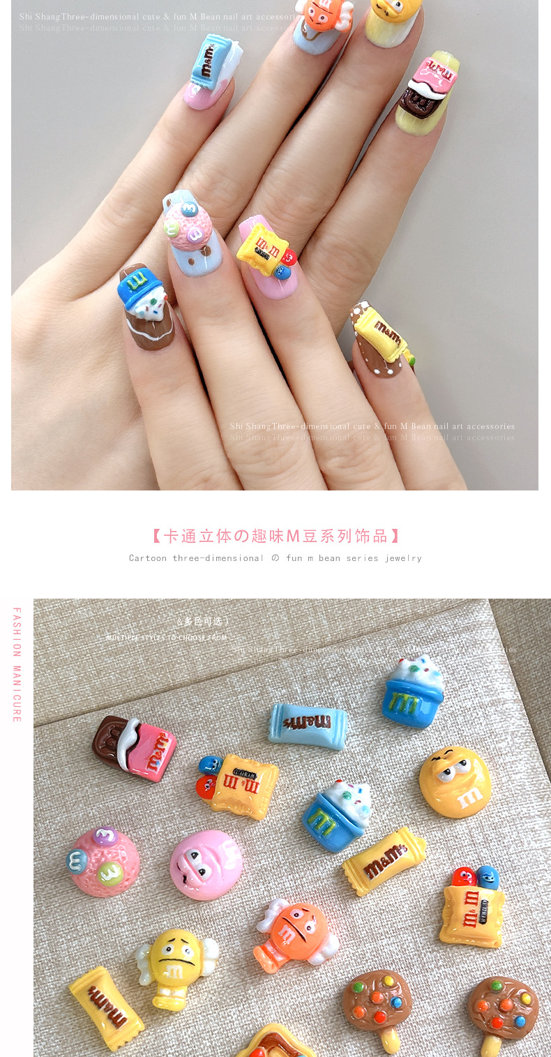 네일 아트 액세서리 컬러 미니 M 콩 초콜릿 재미 빈 인터넷 레드 만화 액세서리 수지 DIY 네일 다이아몬드 액세서리