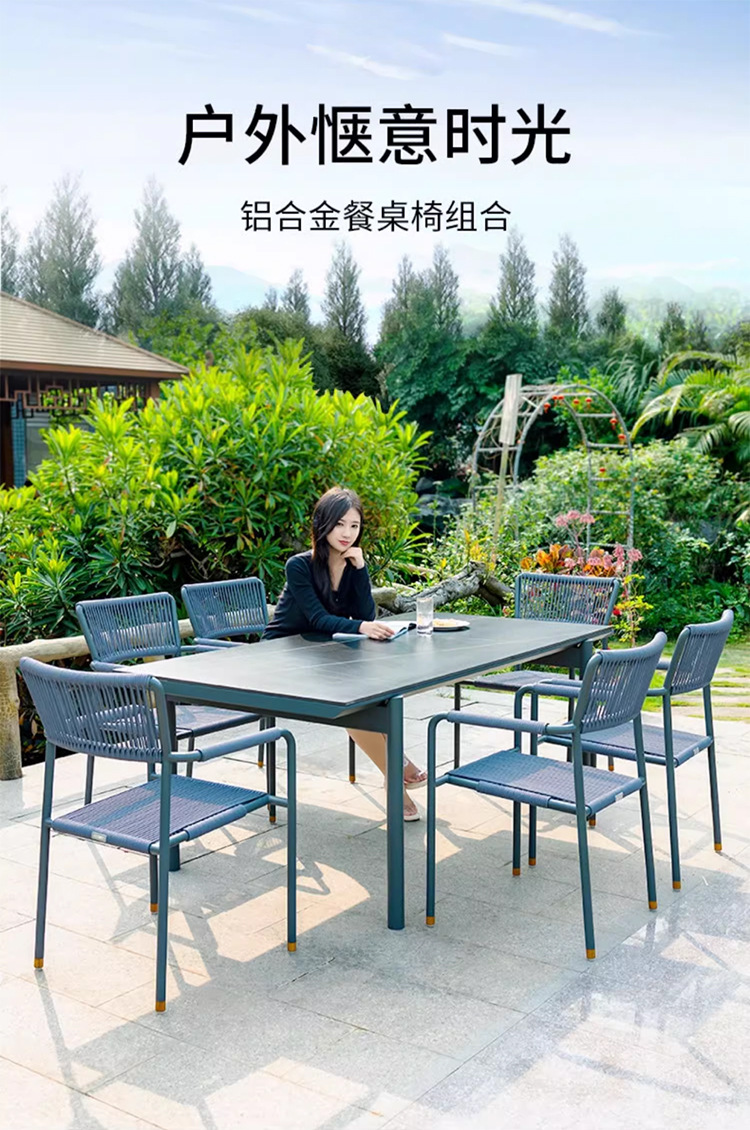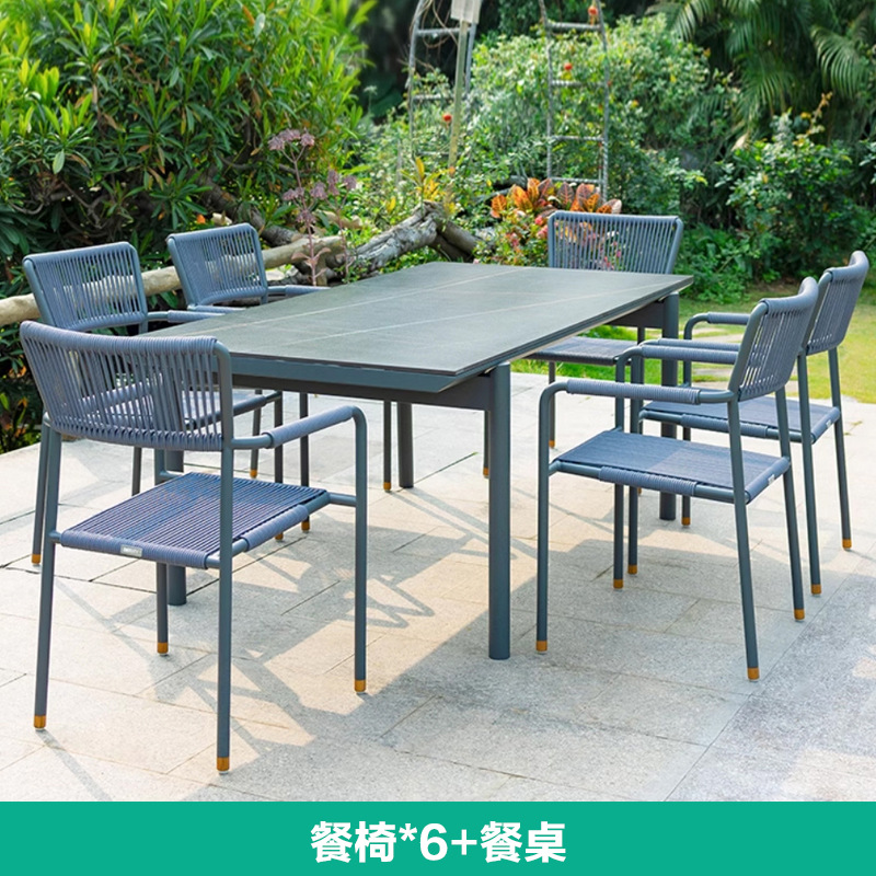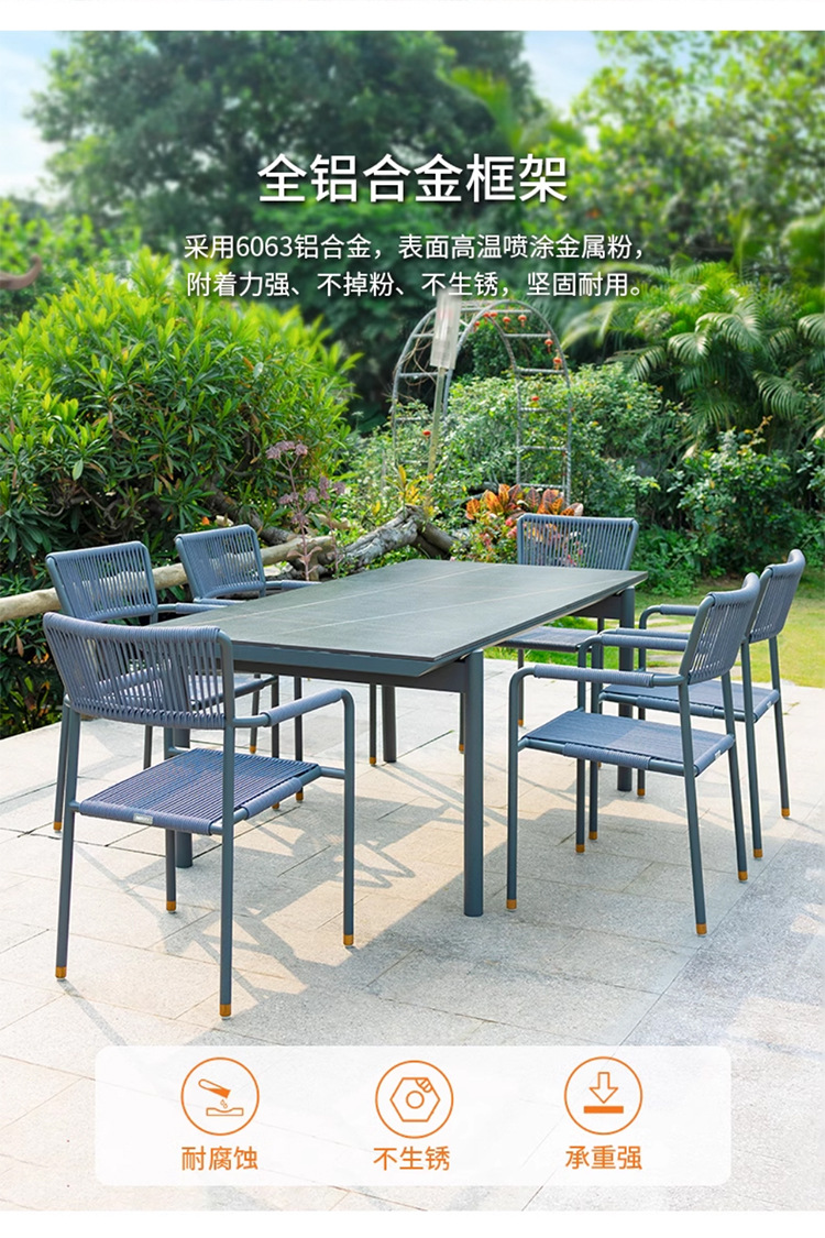 야외 테이블과 의자 조합 안뜰 야외 식탁과 의자 세트 확장 알루미늄 합금 테이블과 의자 녹슬지 않는 태양 보호 긴 테이블스토어 가기
