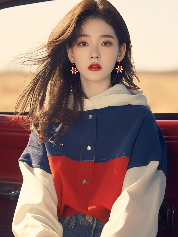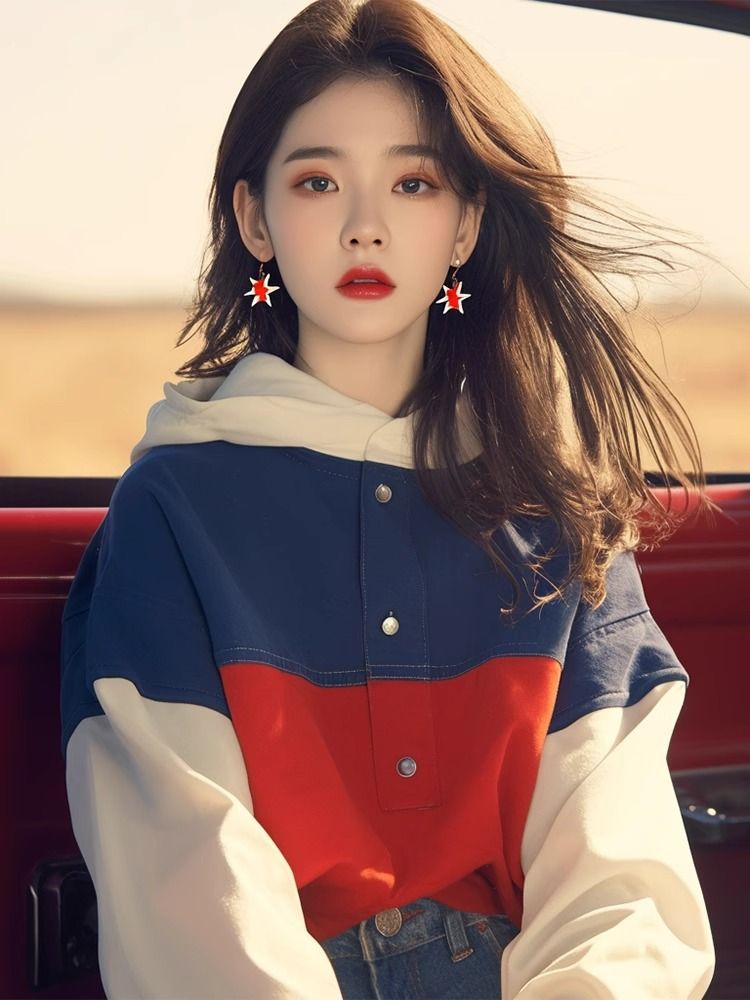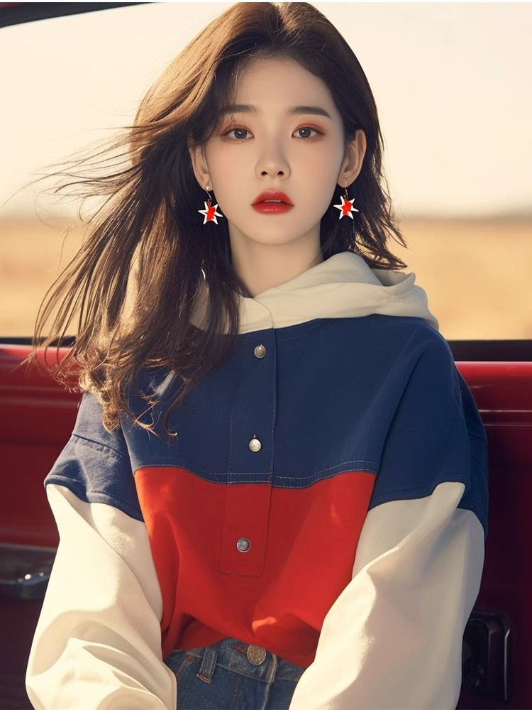 이른 가을 새로운 디자인 센스 탑 한국 스타일 서양식 연령 감소 느슨한 슬리밍 대학 스타일 대비 컬러 스티칭 후드 스웨트 셔츠