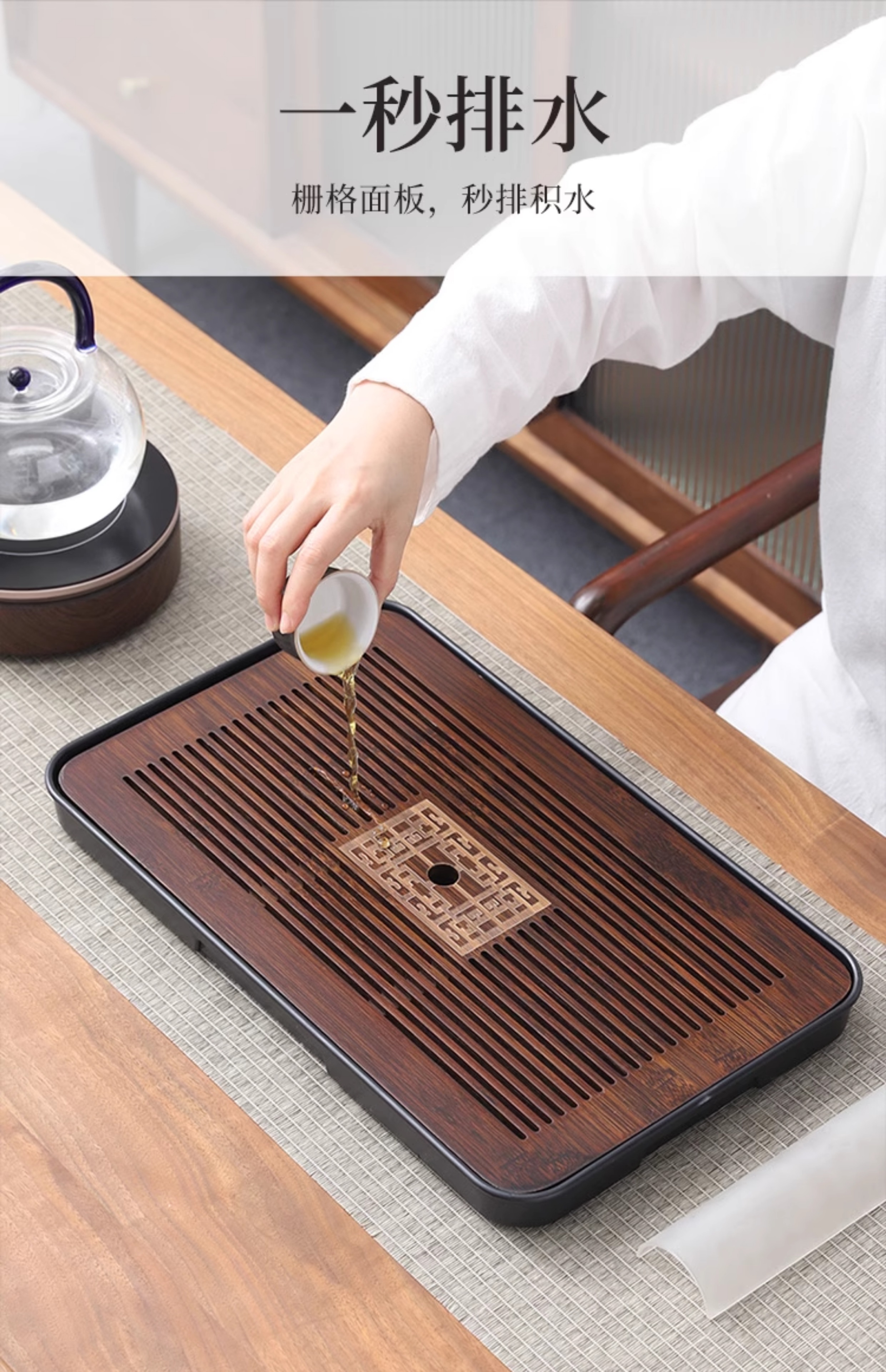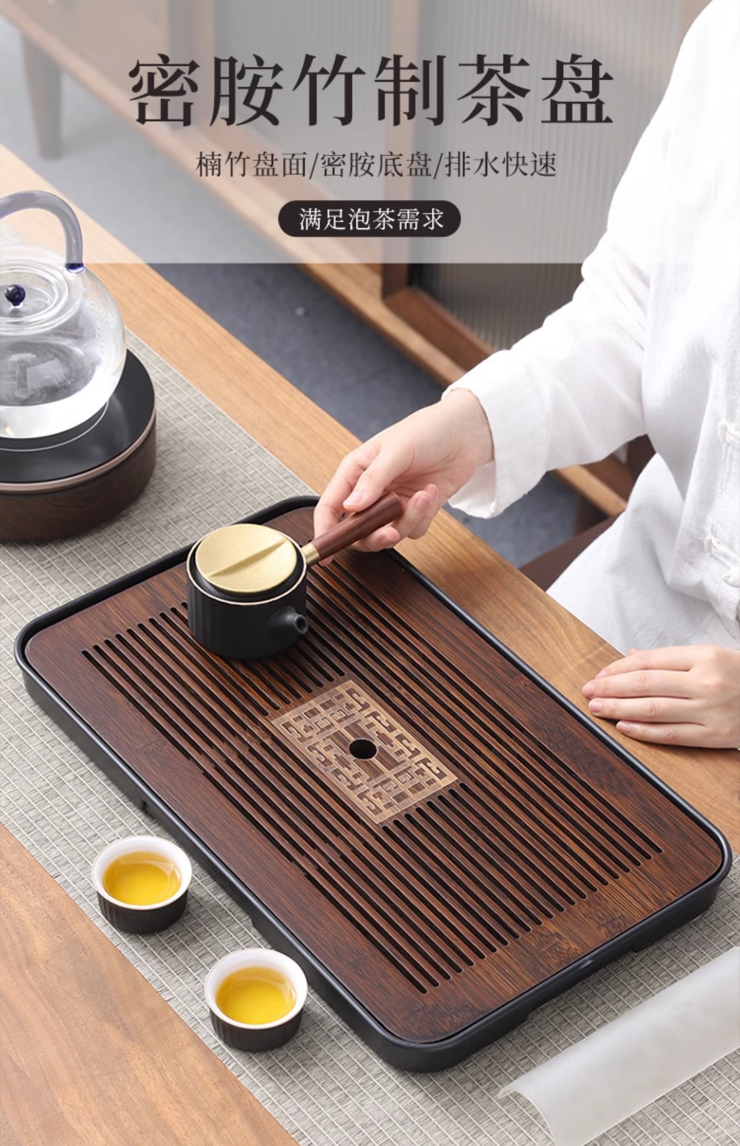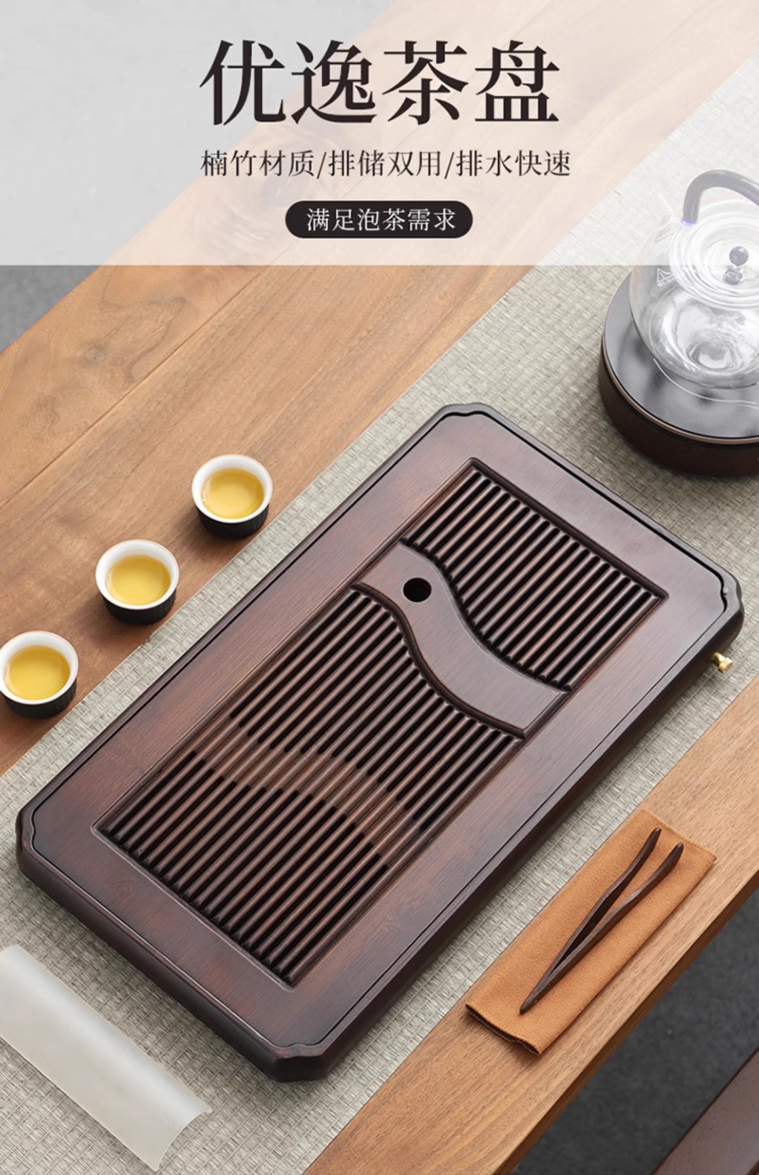 ✅ 차 트레이 가정용 쟁반 쿵푸 차 세트 2024 신형 차 바구니 대나무 원목 거실 배수 건조 소형스토어 가기