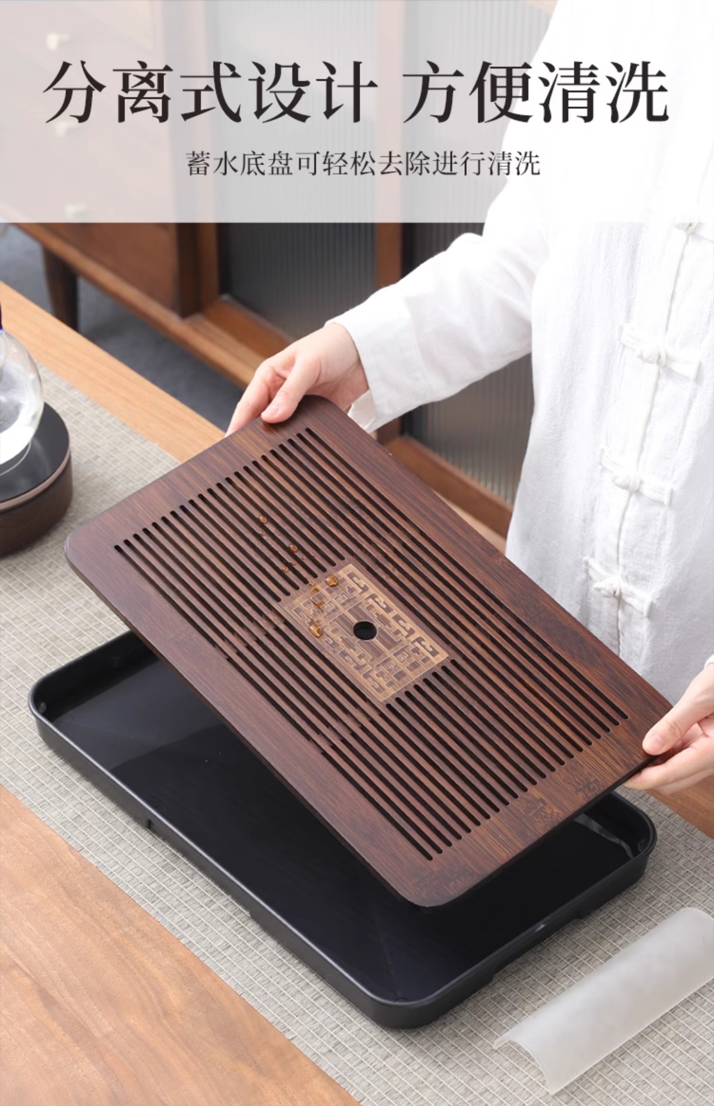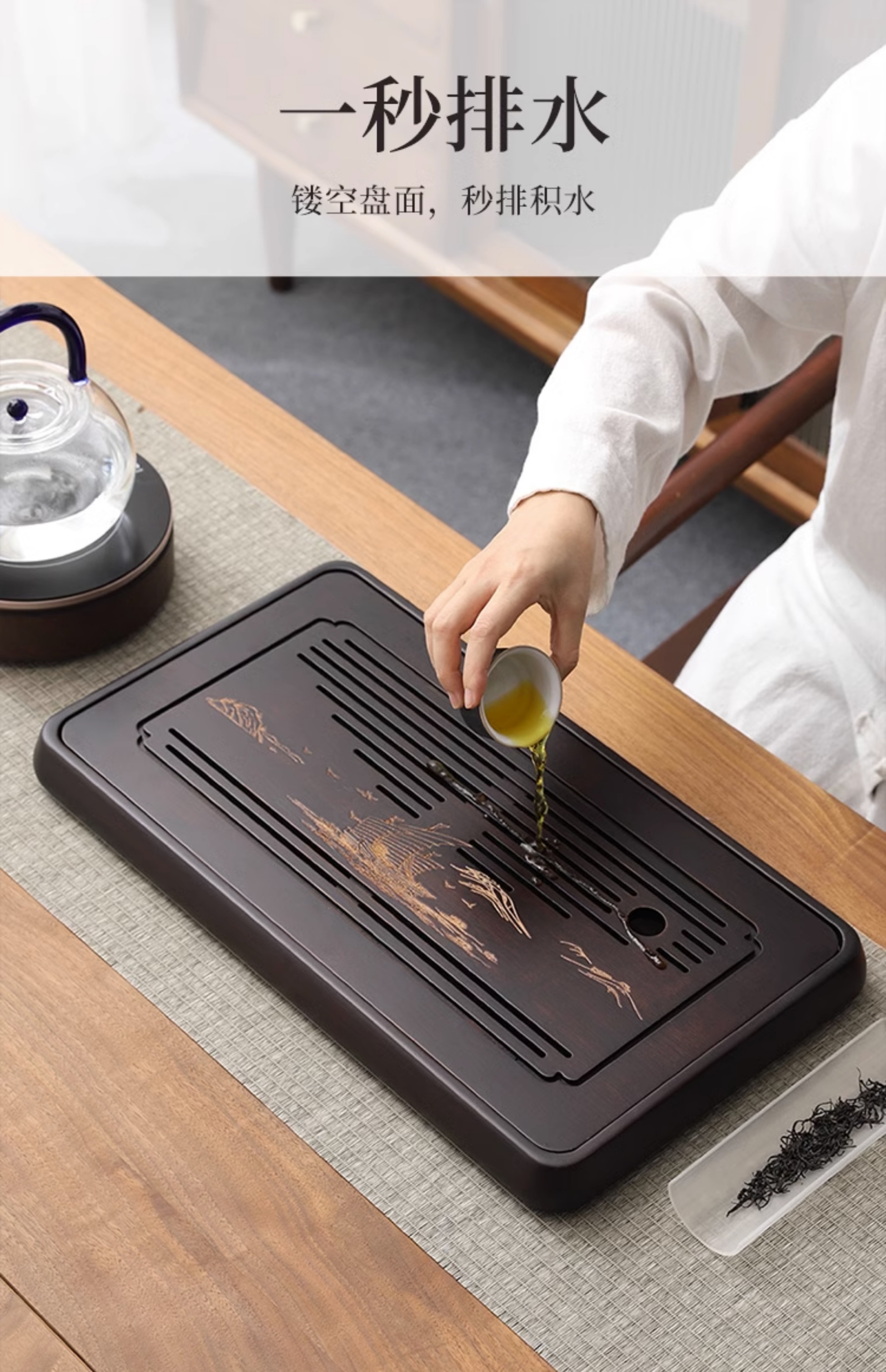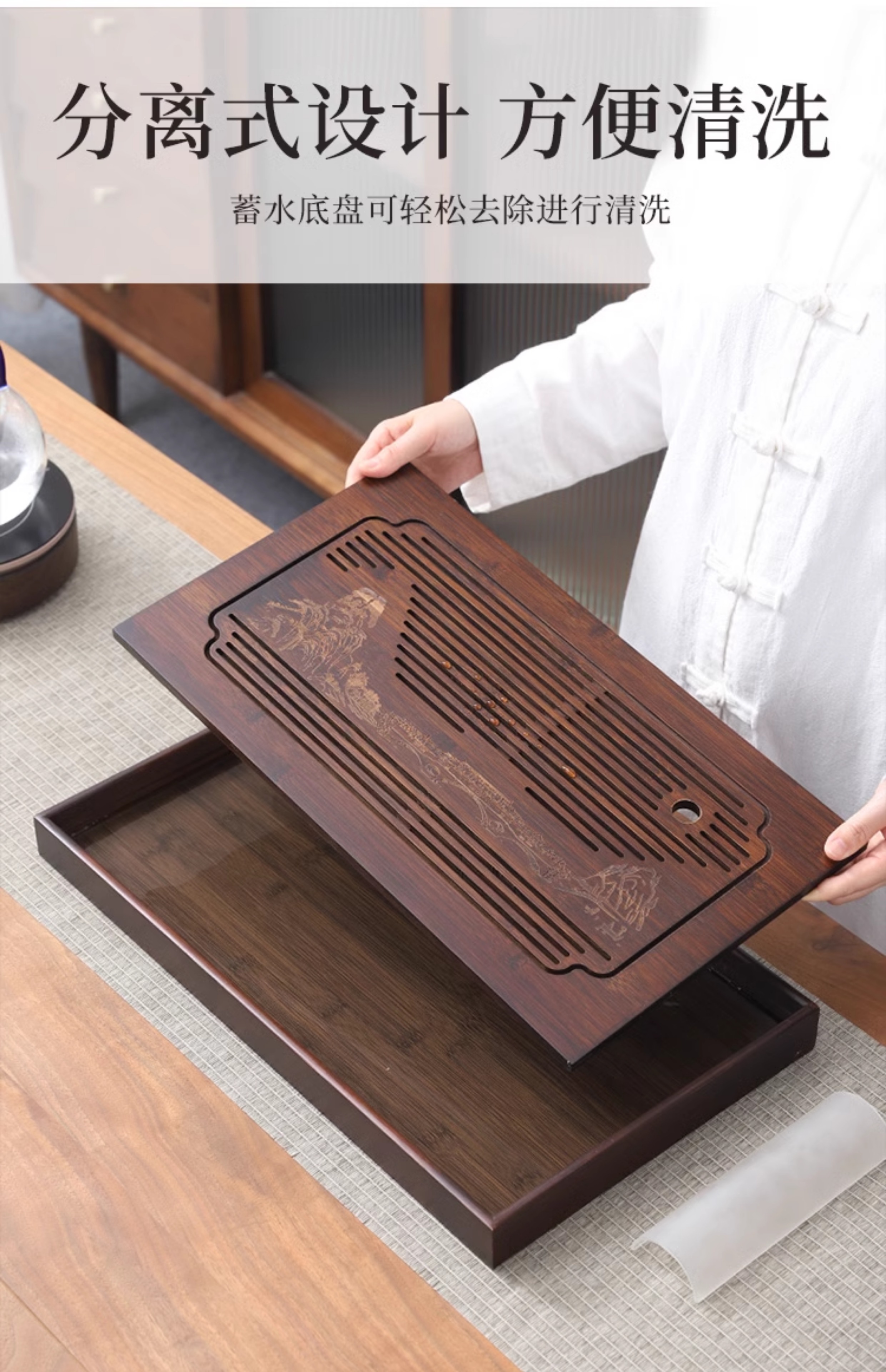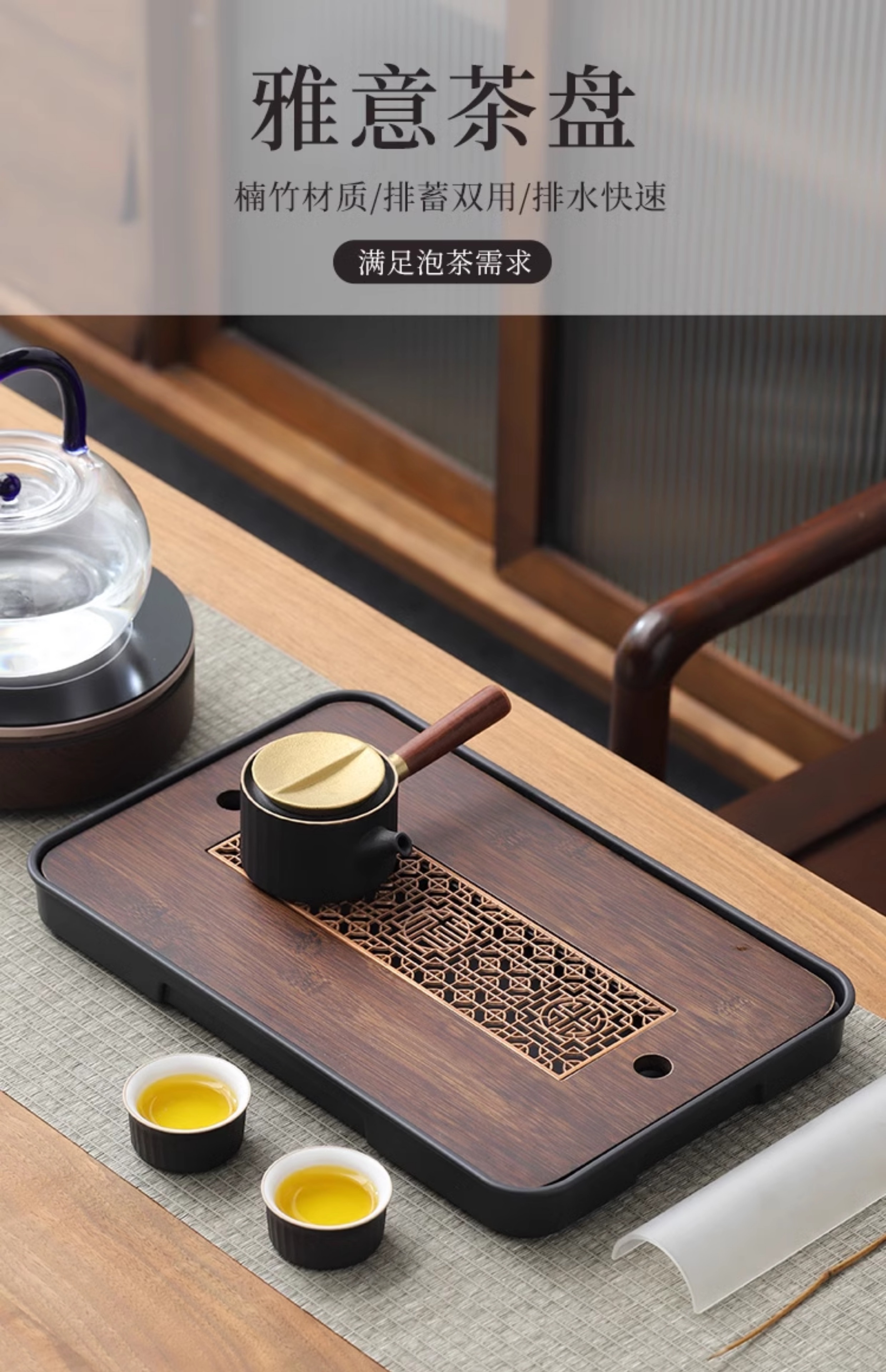 ✅ 차 트레이 가정용 쟁반 쿵푸 차 세트 2024 신형 차 바구니 대나무 원목 거실 배수 건조 소형스토어 가기