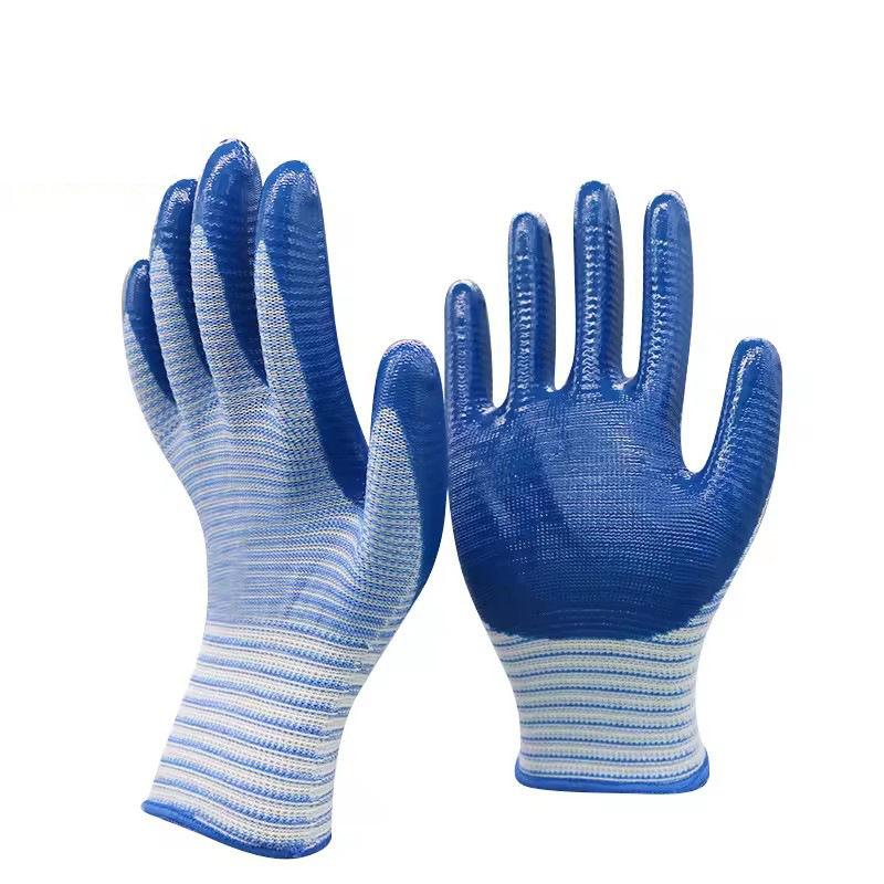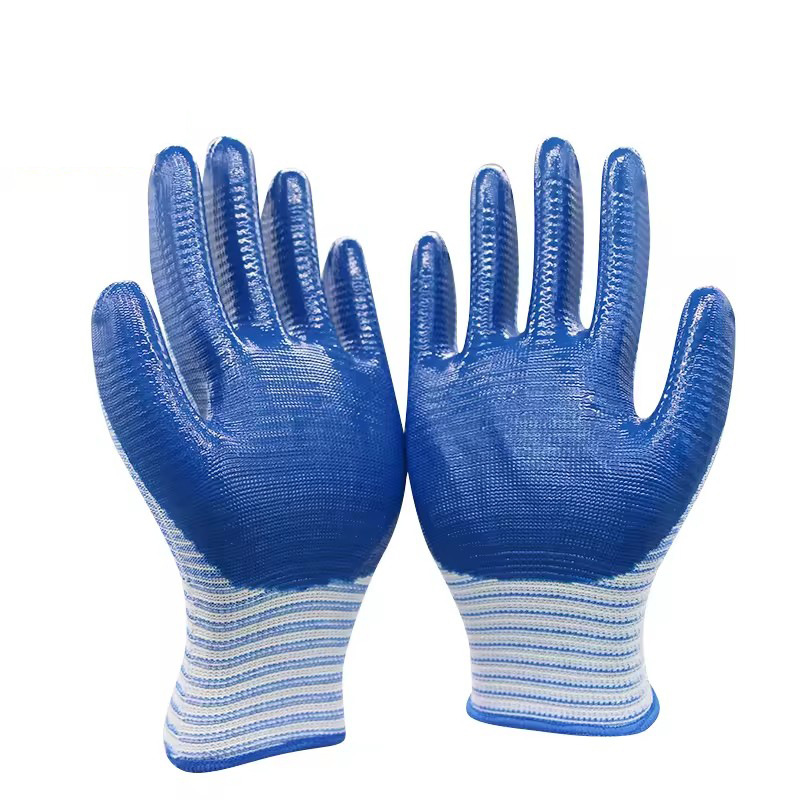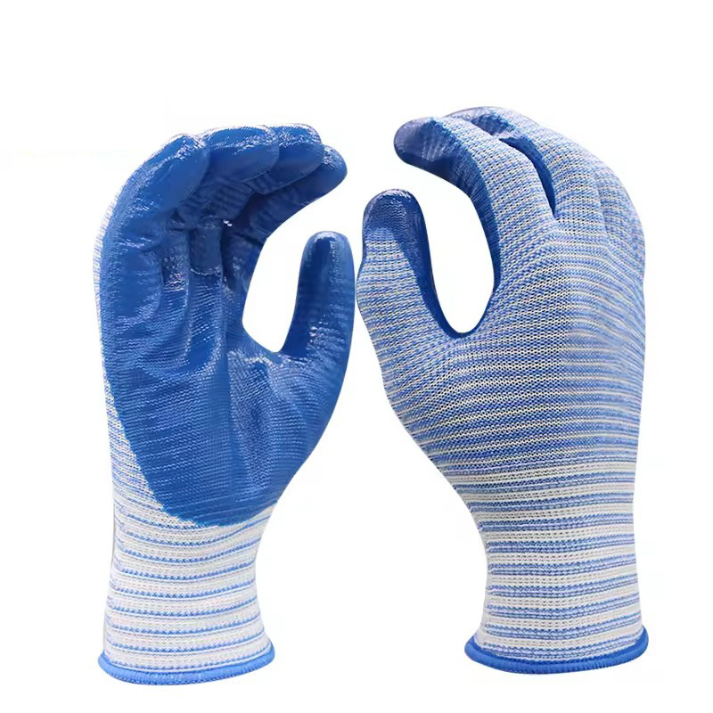 13 핀 나일론 얼룩말 패턴 니트릴 미끄럼 방지 내유성 담근 내마모성 자동차 수리 장갑 고무 노동 보호 장갑