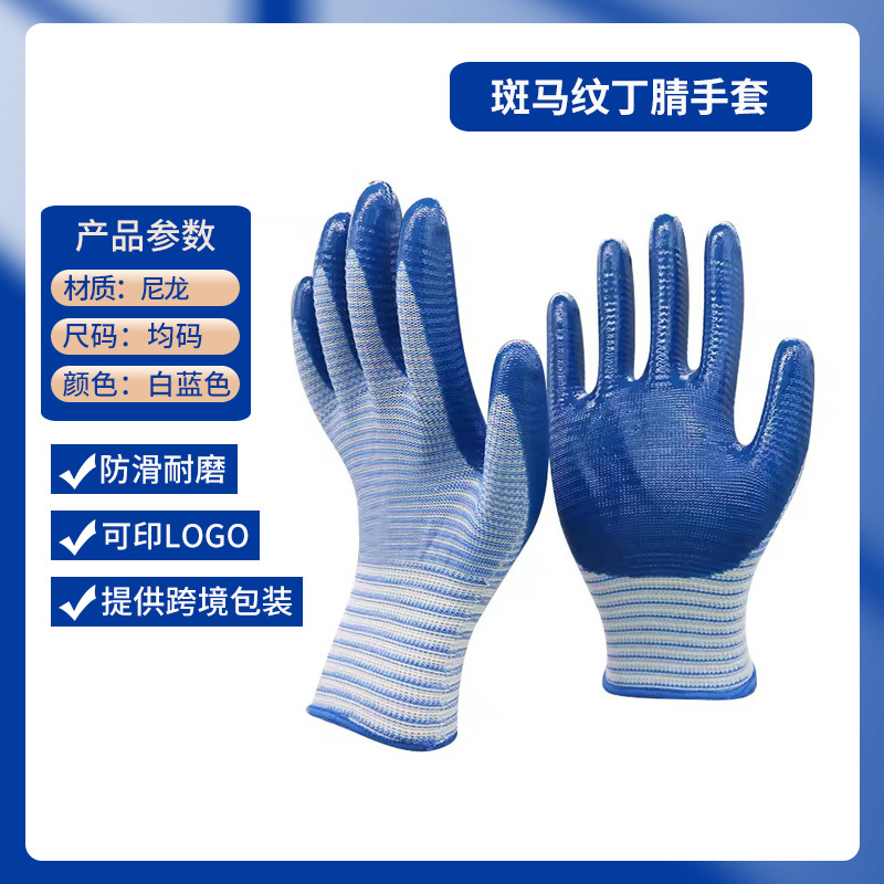 13 핀 나일론 얼룩말 패턴 니트릴 미끄럼 방지 내유성 담근 내마모성 자동차 수리 장갑 고무 노동 보호 장갑스토어 가기