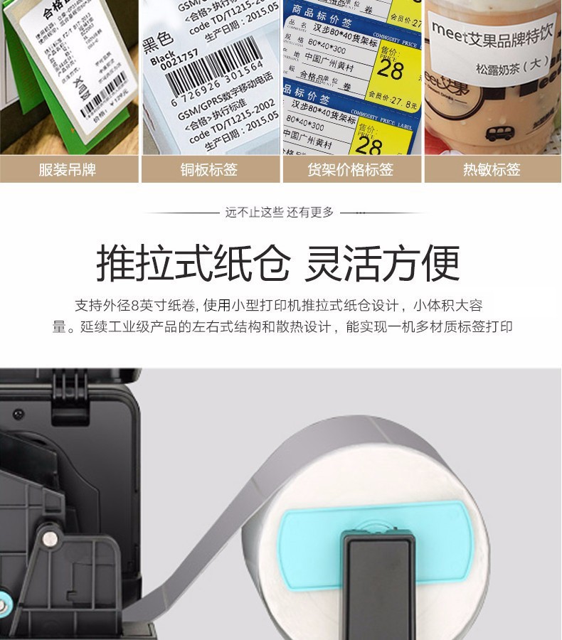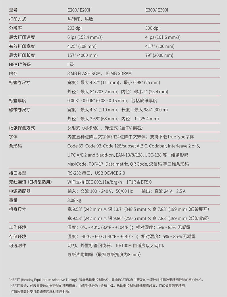 • E200i(203dpi)는 휴대폰 Bluetooth WIF1, 컴퓨터 USB 직렬 WIFI 연결을 지원합니다.
