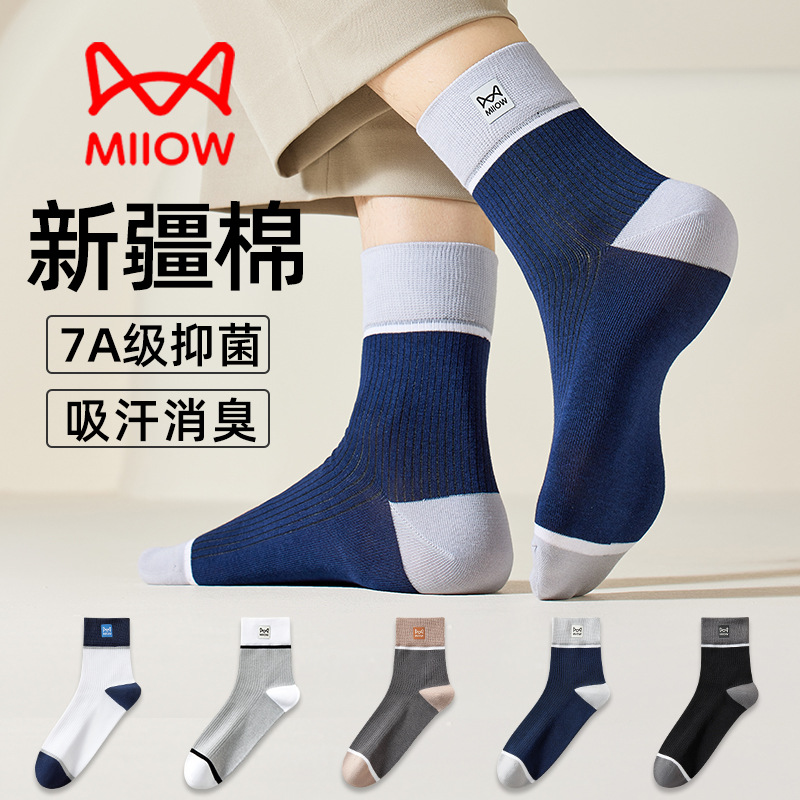 Catman 양말 남성 중간 배럴 가을과 겨울 새로운 탈취제 항균 땀 흡수성 통기성 트렌드 학생 단색 면화 스타킹