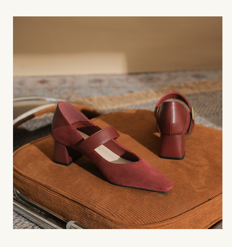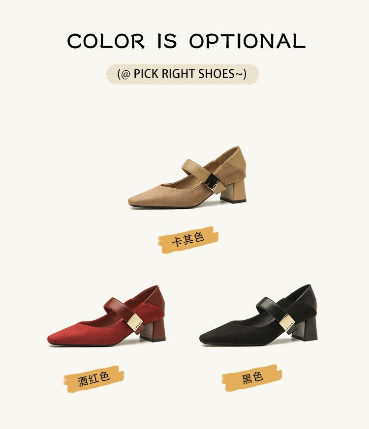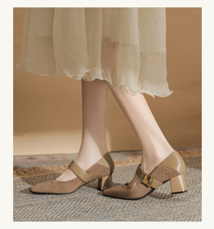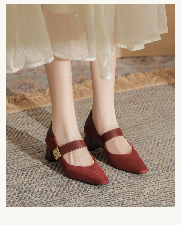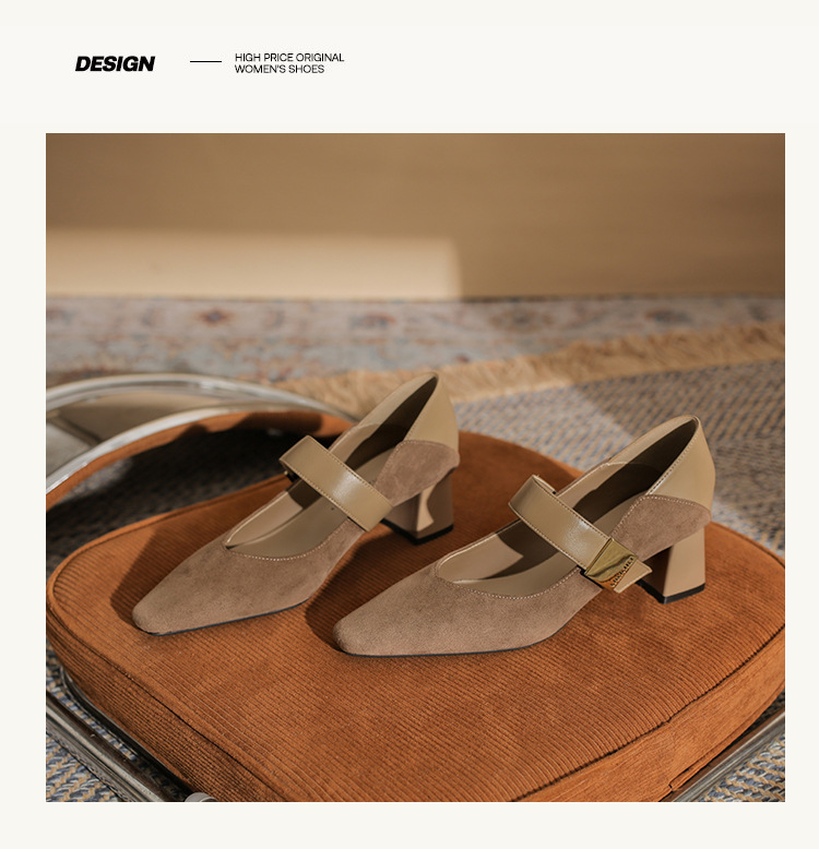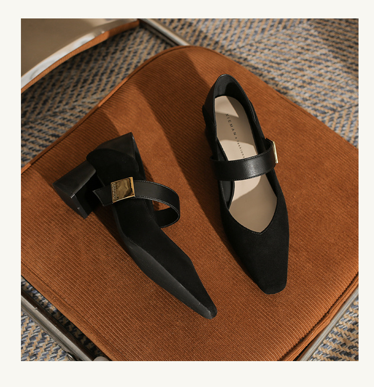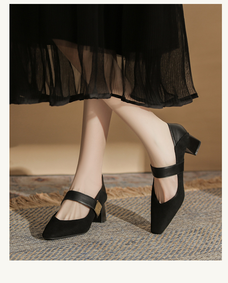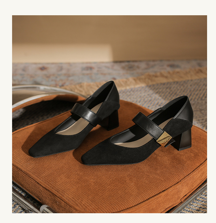 5996 우아한 올 매치 편안한 메리 제인 작은 스퀘어 헤드 두꺼운 힐 스퀘어 버클 여성 싱글 레이어 신발 2024 새로운 스웨이드 여성스토어 가기