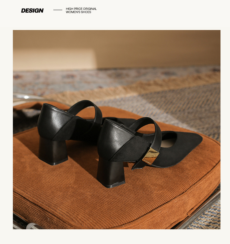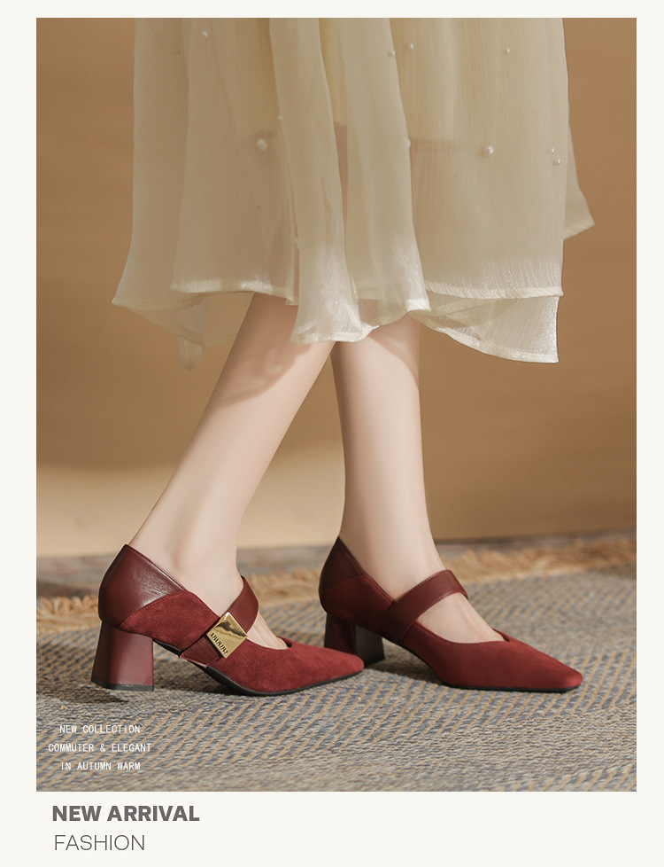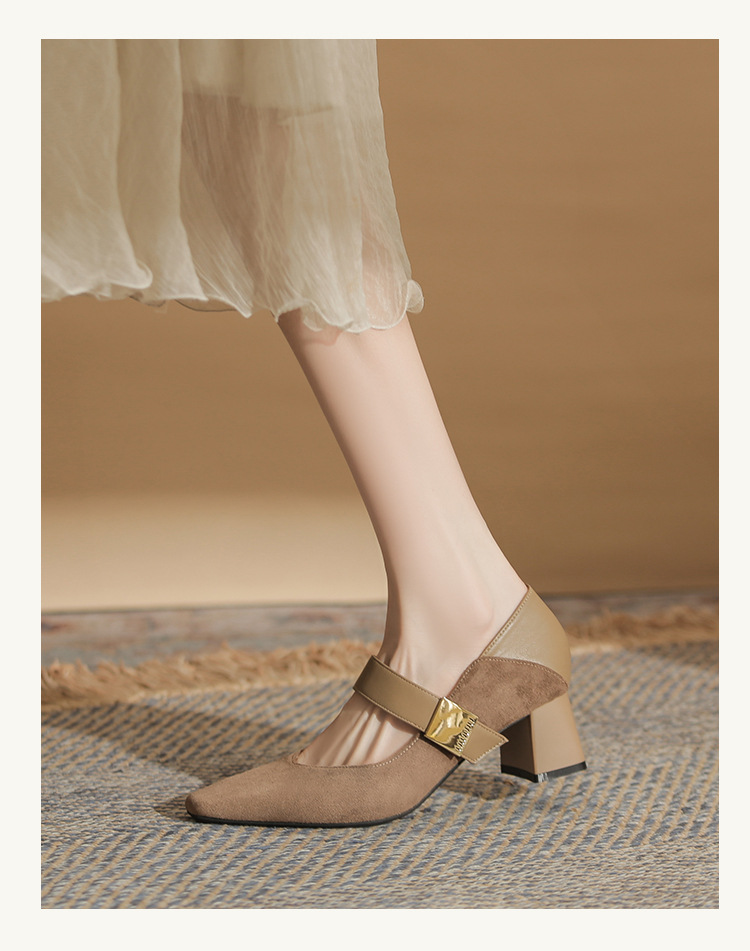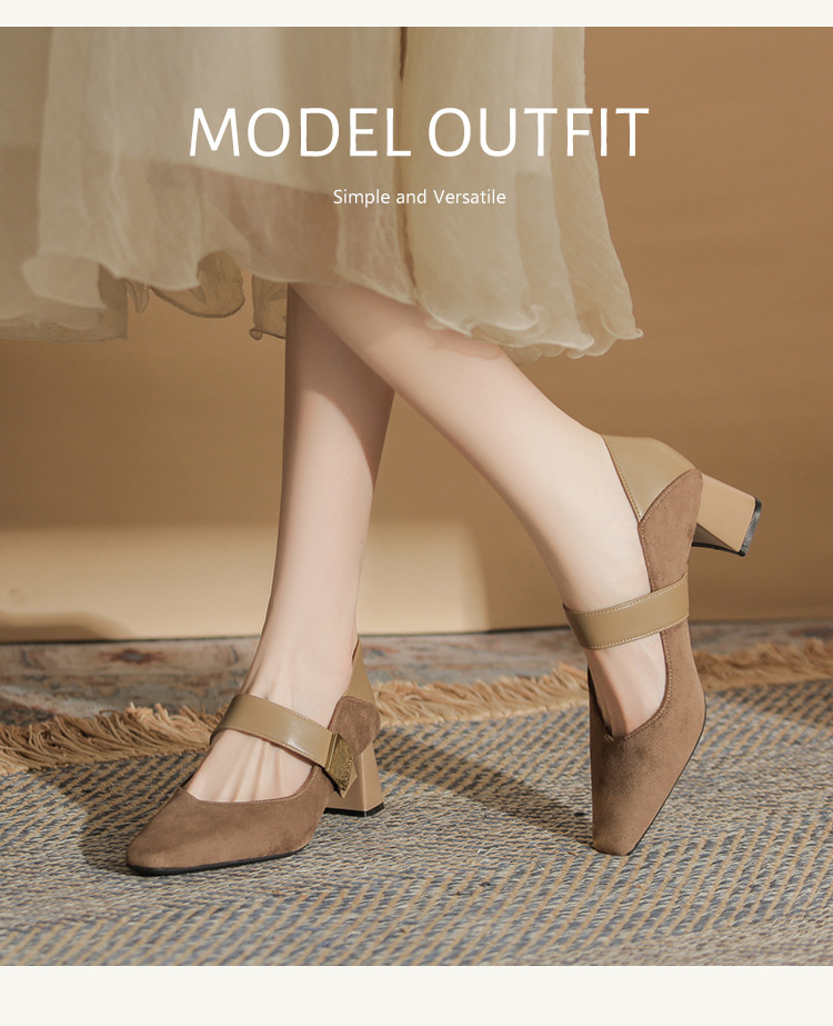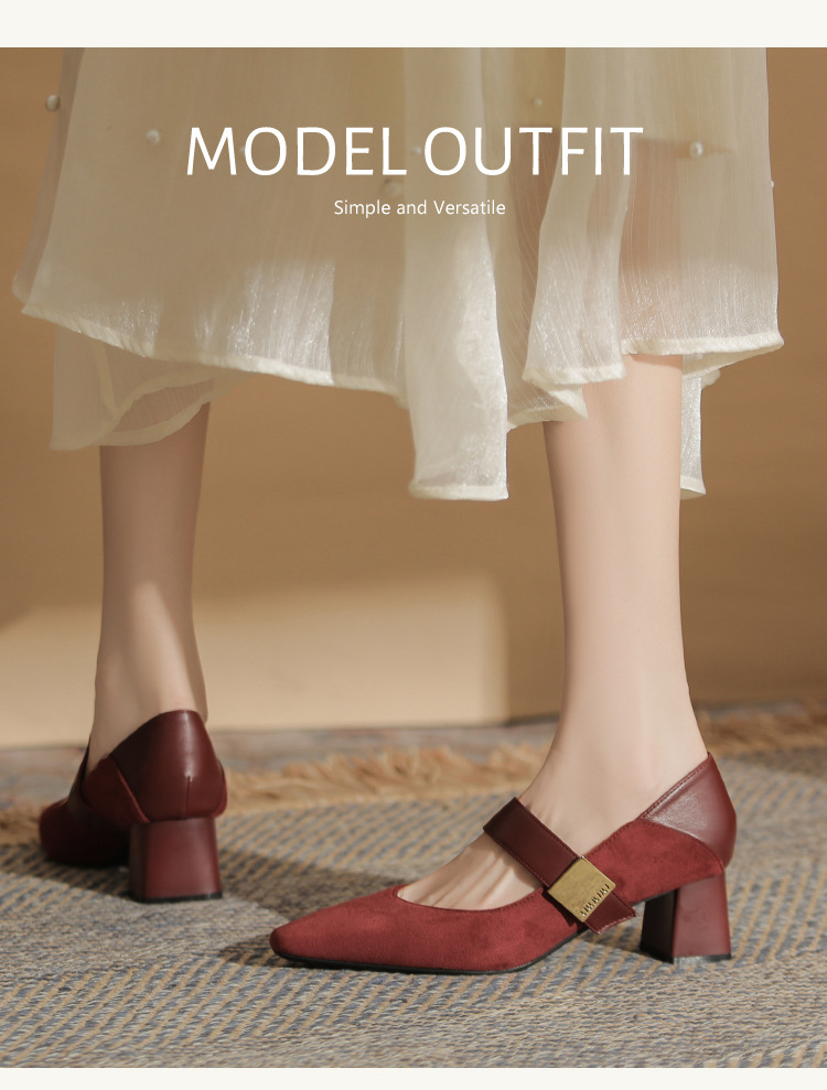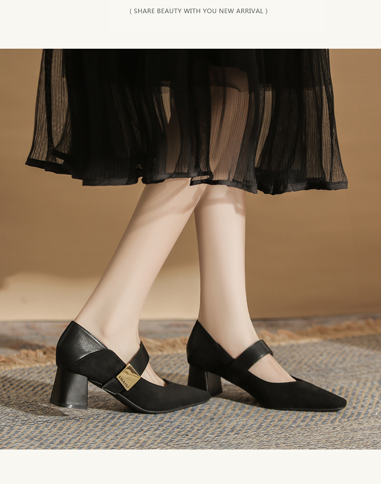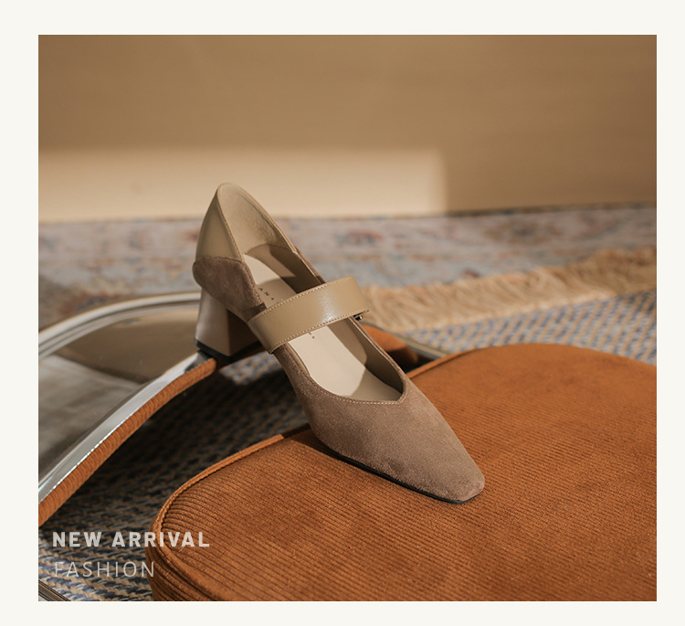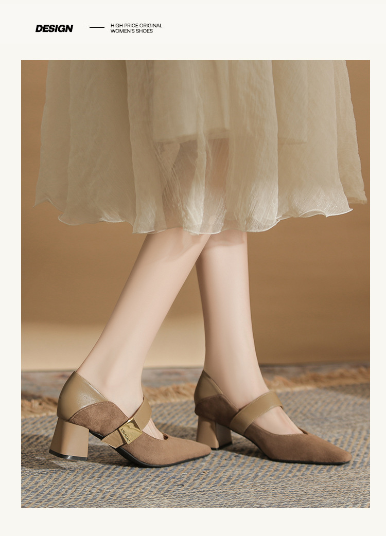 5996 우아한 올 매치 편안한 메리 제인 작은 스퀘어 헤드 두꺼운 힐 스퀘어 버클 여성 싱글 레이어 신발 2024 새로운 스웨이드 여성스토어 가기