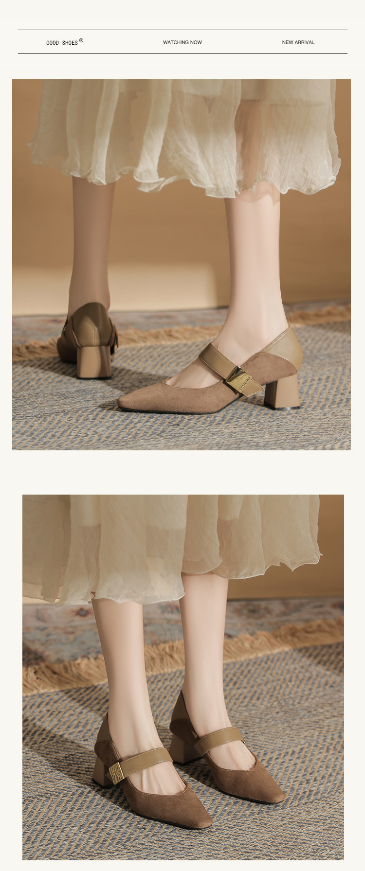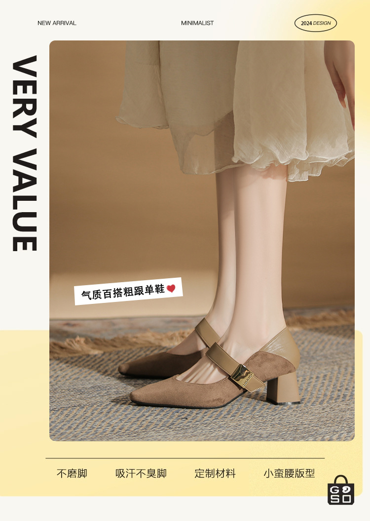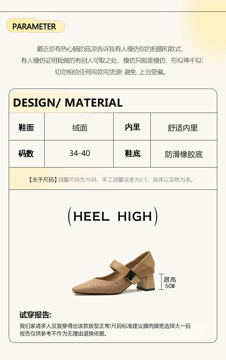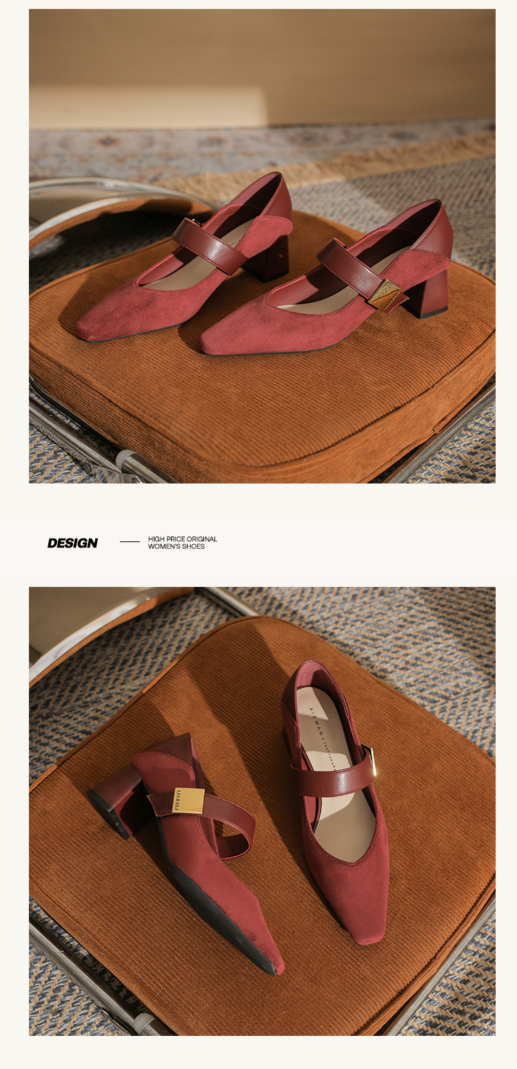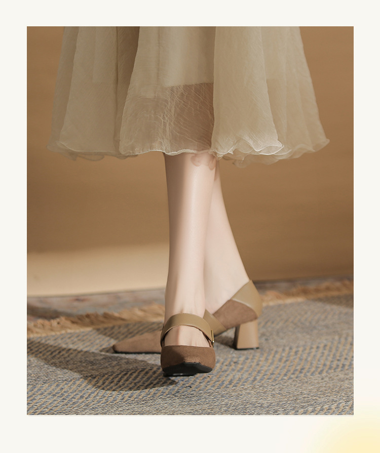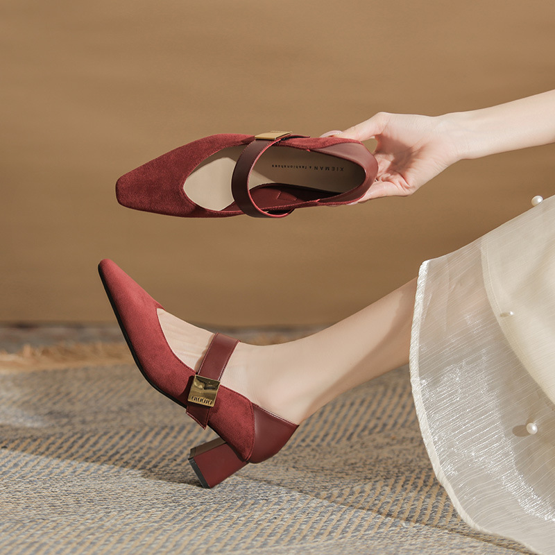 5996 우아한 올 매치 편안한 메리 제인 작은 스퀘어 헤드 두꺼운 힐 스퀘어 버클 여성 싱글 레이어 신발 2024 새로운 스웨이드 여성스토어 가기