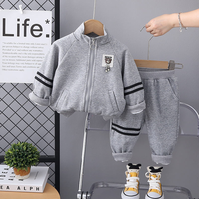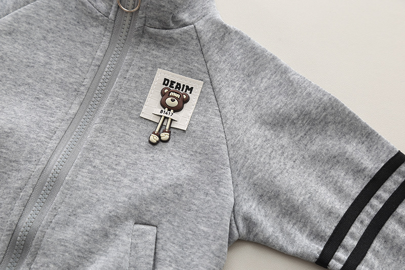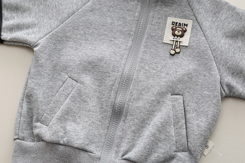 2024 가을 지퍼 곰 라벨 단색 아동복 소년 소녀 긴 소매 투피스 아동복 세트스토어 가기