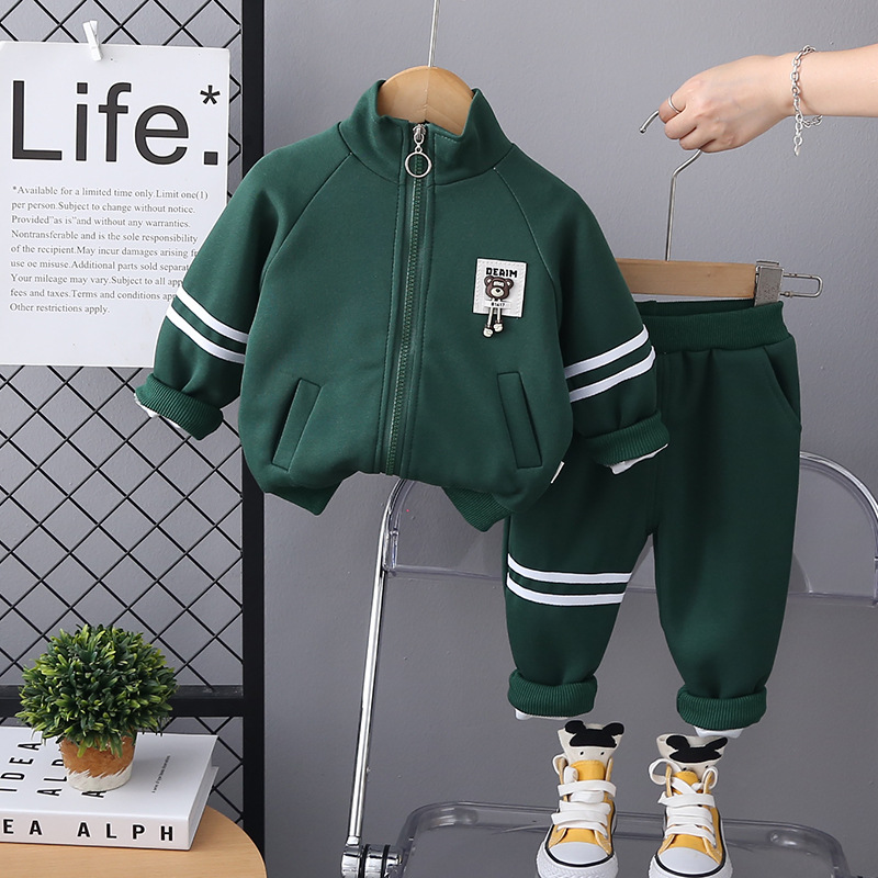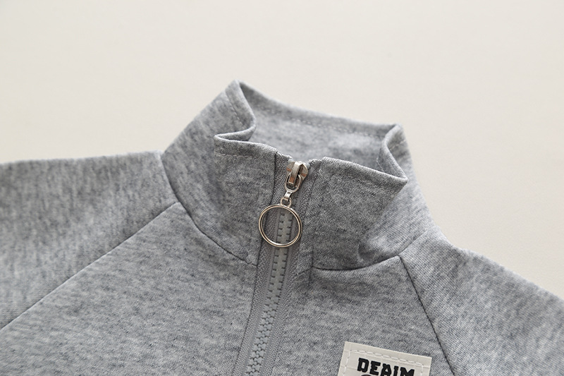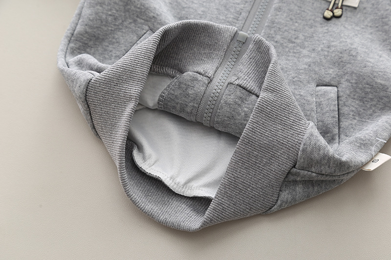 2024 가을 지퍼 곰 라벨 단색 아동복 소년 소녀 긴 소매 투피스 아동복 세트