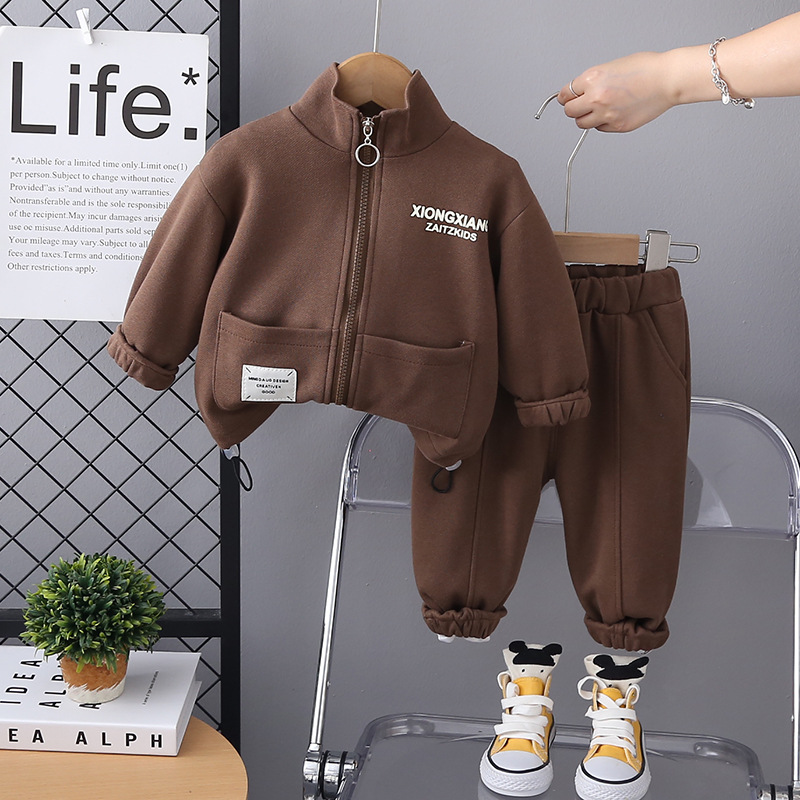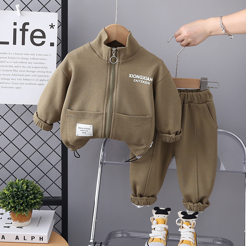 2024 가을 아동복 소년 긴팔 편지 지퍼 2 피스 어린이 가을 의류 어린이 세트 도매스토어 가기