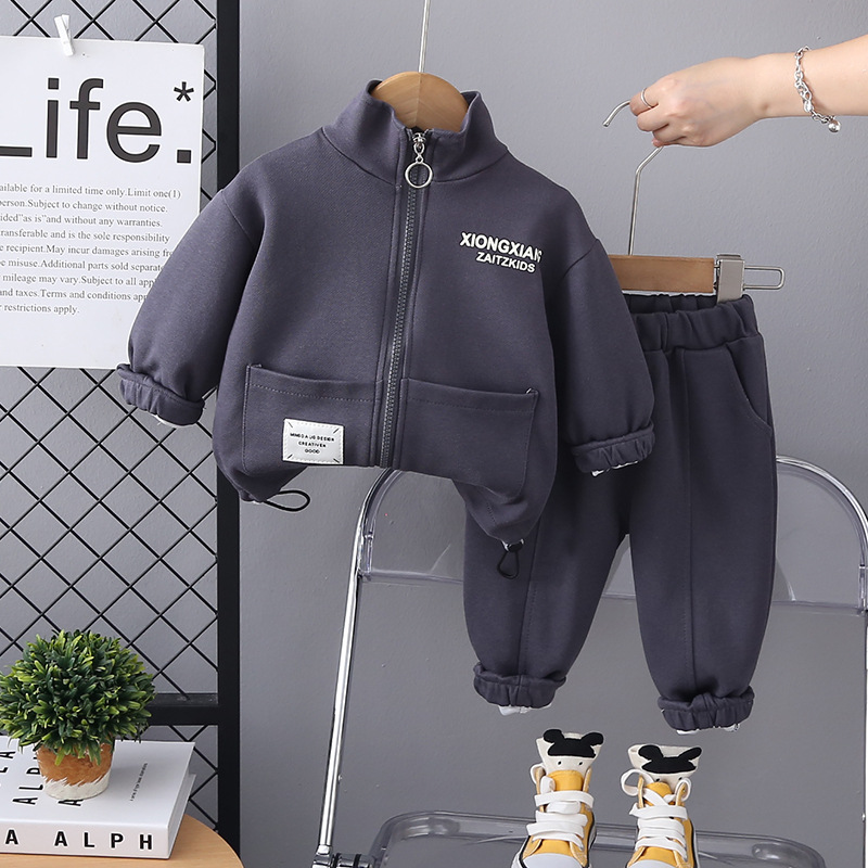 2024 가을 아동복 소년 긴팔 편지 지퍼 2 피스 어린이 가을 의류 어린이 세트 도매