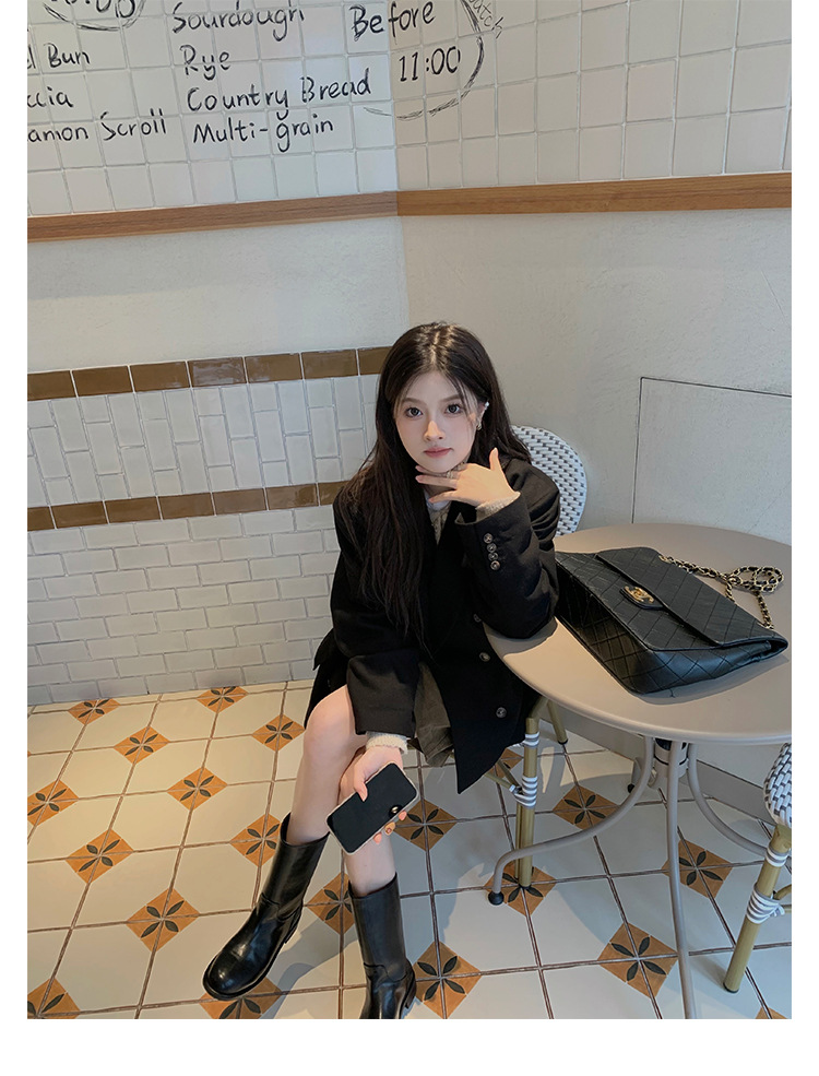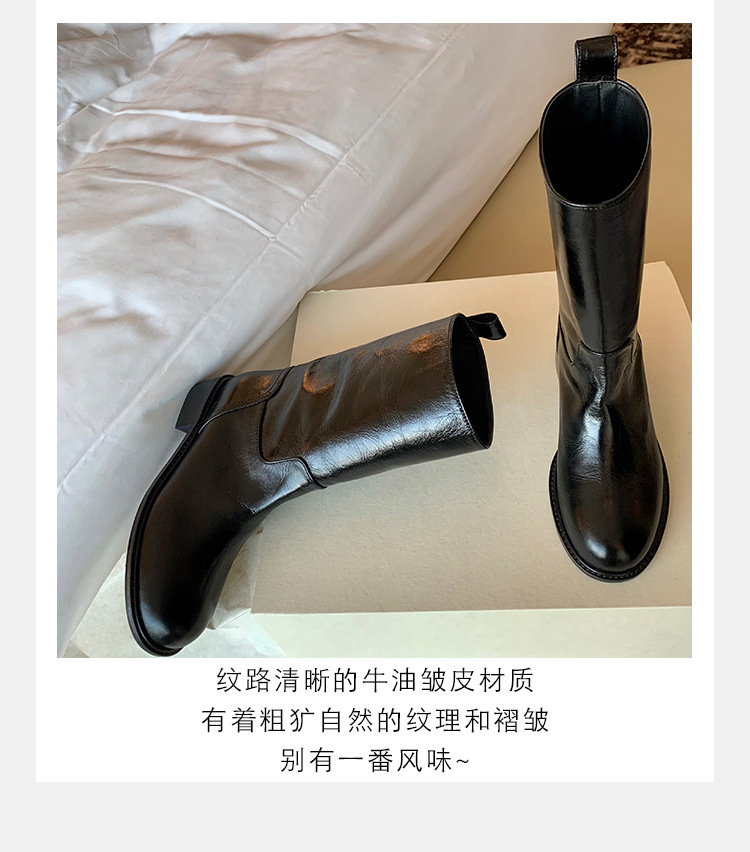 Cowhide 버전 ~ 복고풍 가오 레벨 느낌 넓은 배럴 가죽 두꺼운 중간 굽이 달린 서부 기사 짧은 부츠 여성의 가을 및 겨울 마틴 부츠