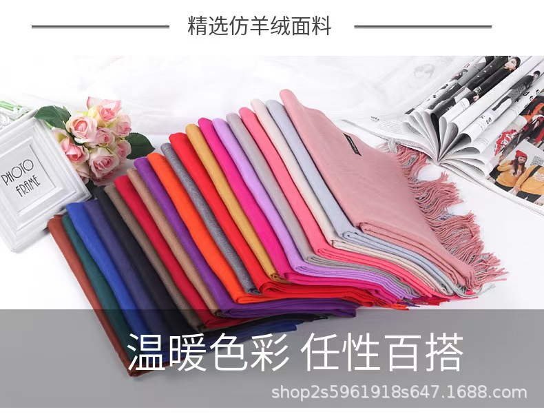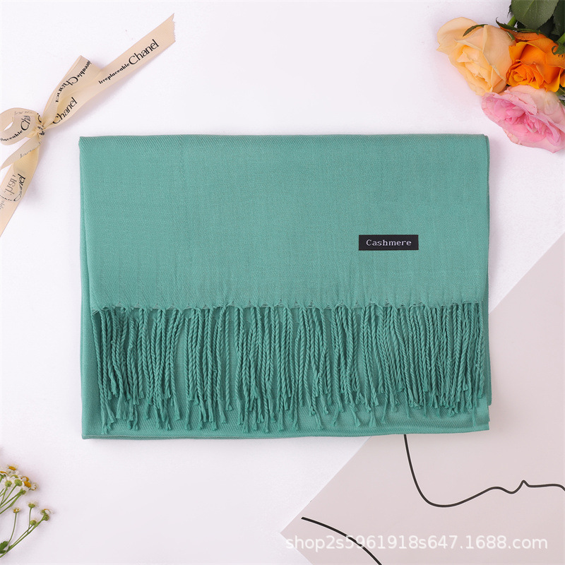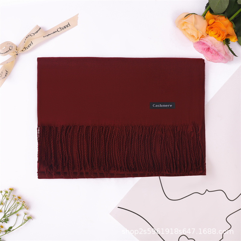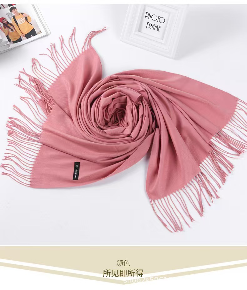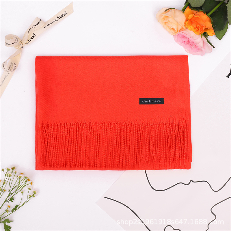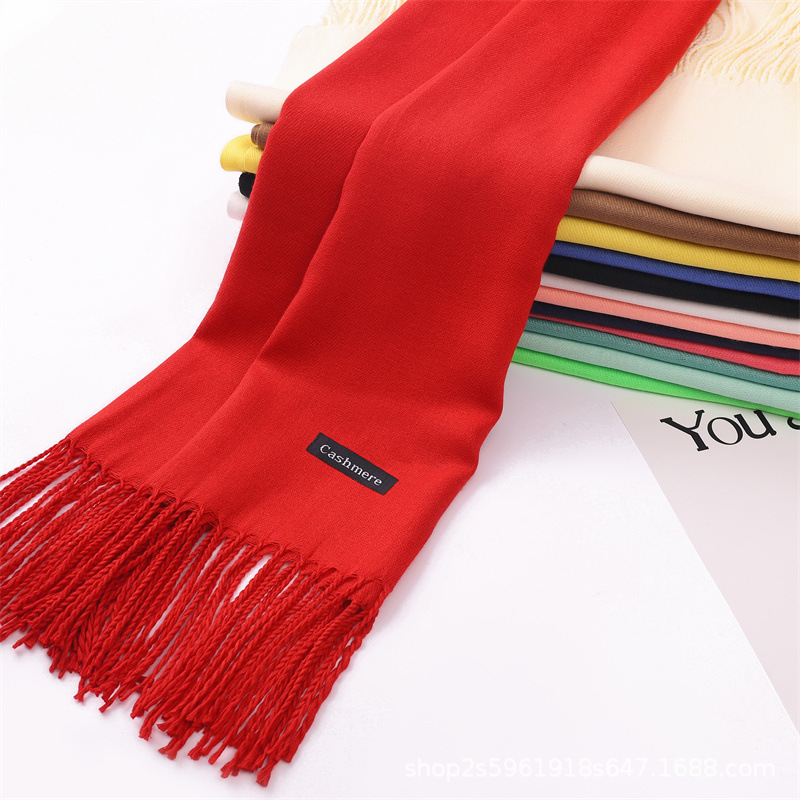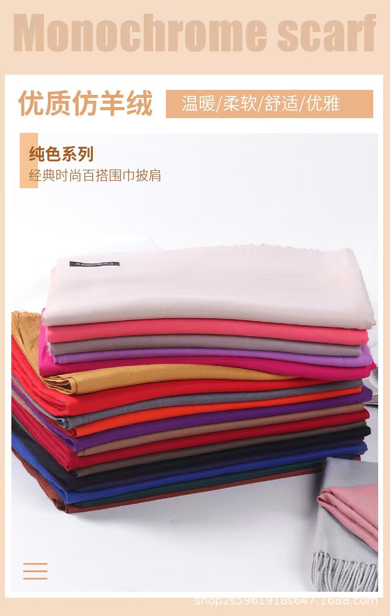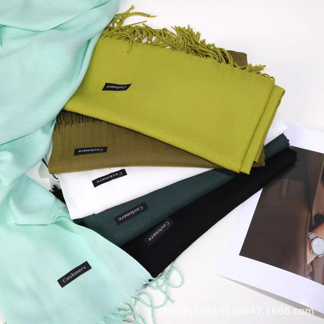 2024 가을, 겨울 새로운 유럽과 미국의 긴 술 따뜻한 스카프 솔리드 컬러 캐시미어 숄 다목적 스타일스토어 가기