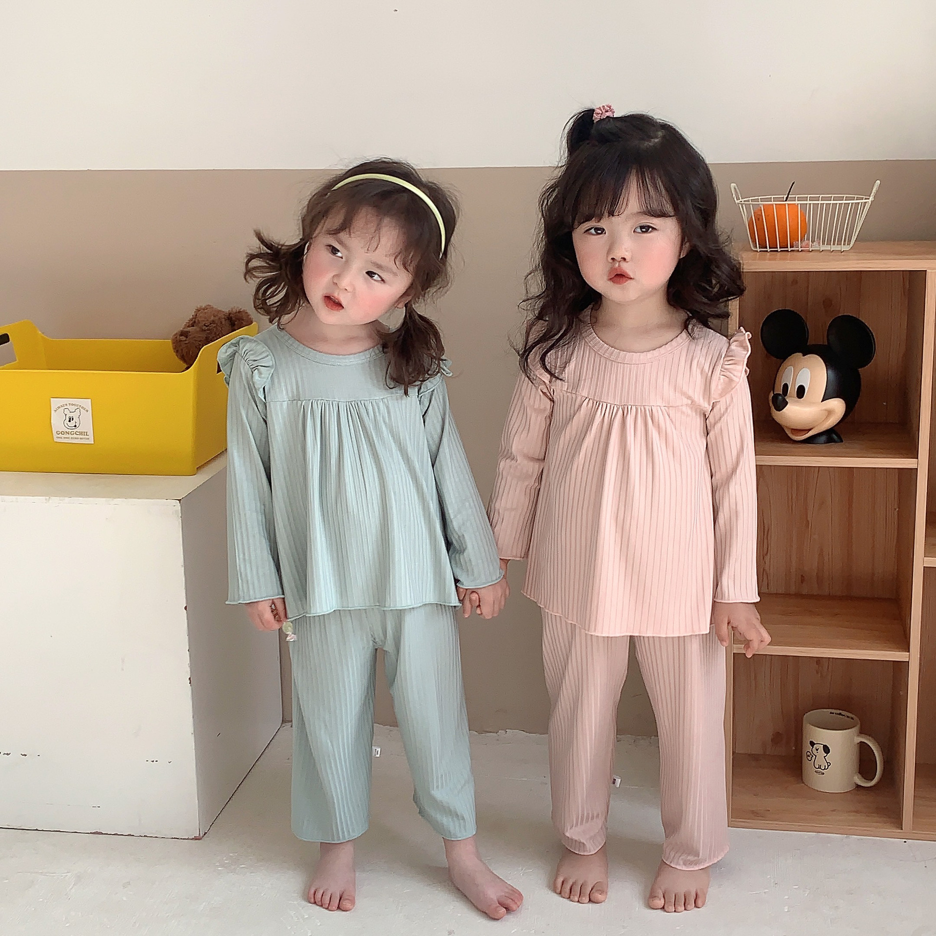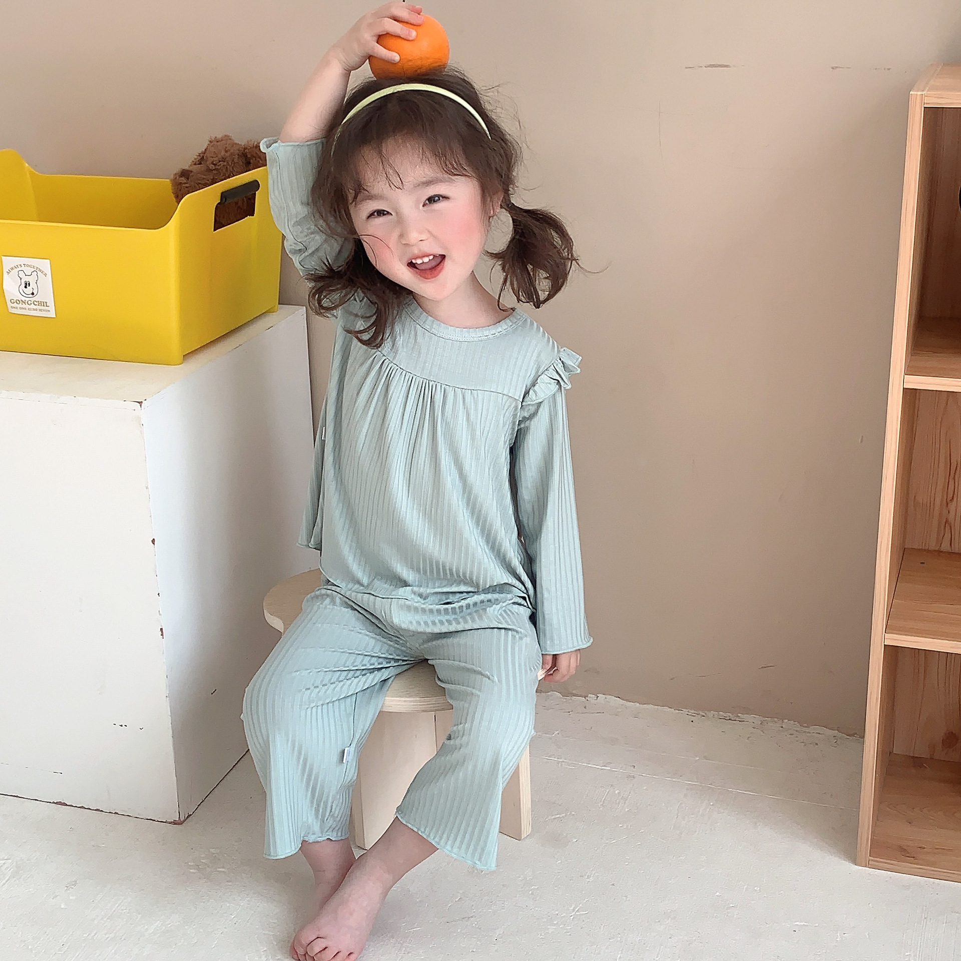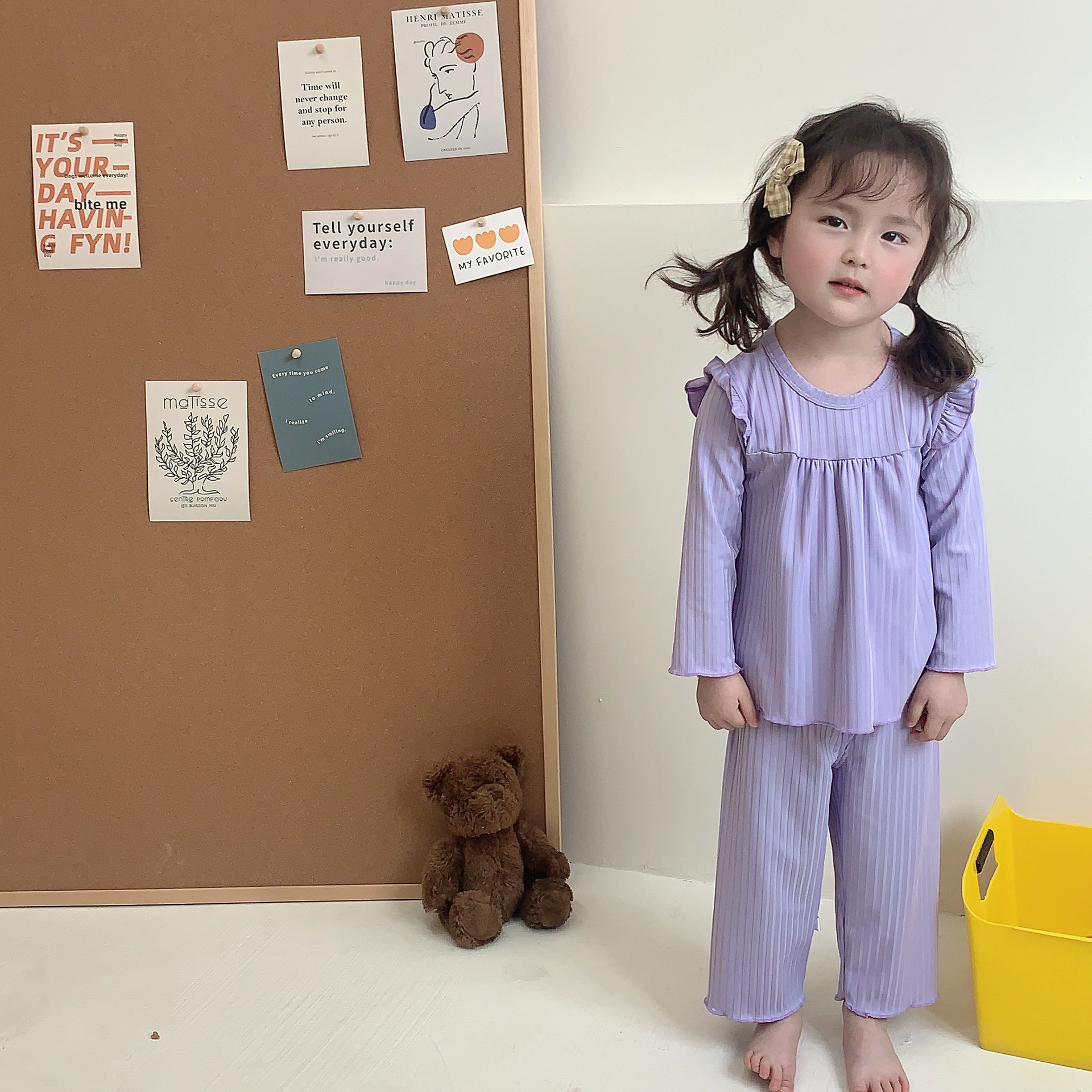 어린이 여름 에어컨 의류 아이스 실크 얇은 잠옷 소녀 홈 의류 만화 모달 여성의 보물 잠옷 세트스토어 가기