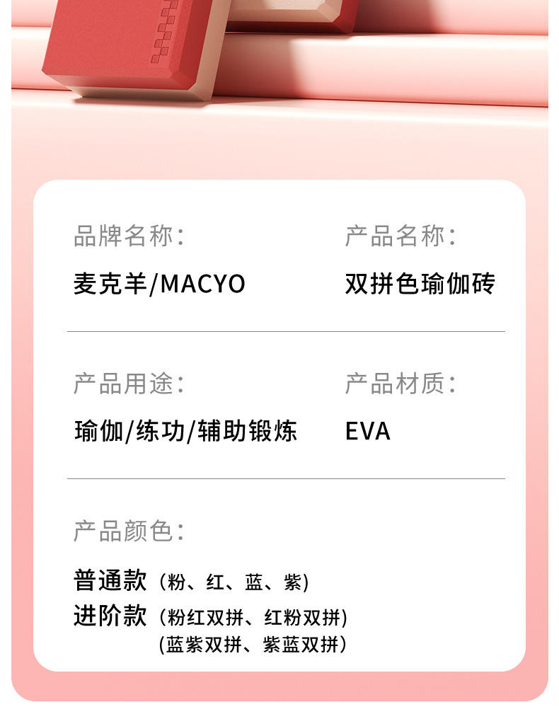 MACYO/마이크 양 요가 벽돌 고밀도 요가 초보자 댄스 특수 보조 도구 특수 내마모성 미끄럼 방지스토어 가기