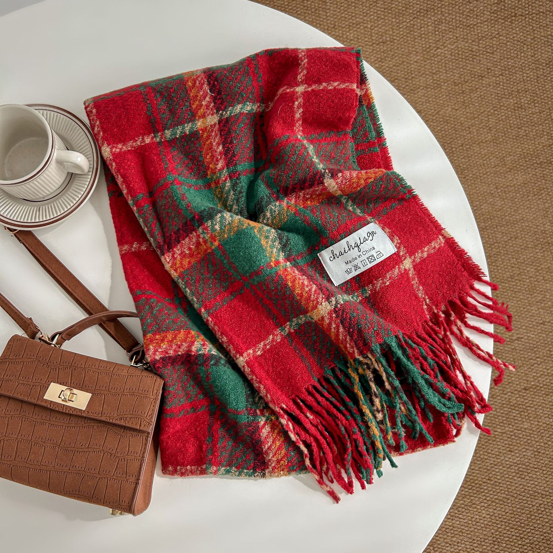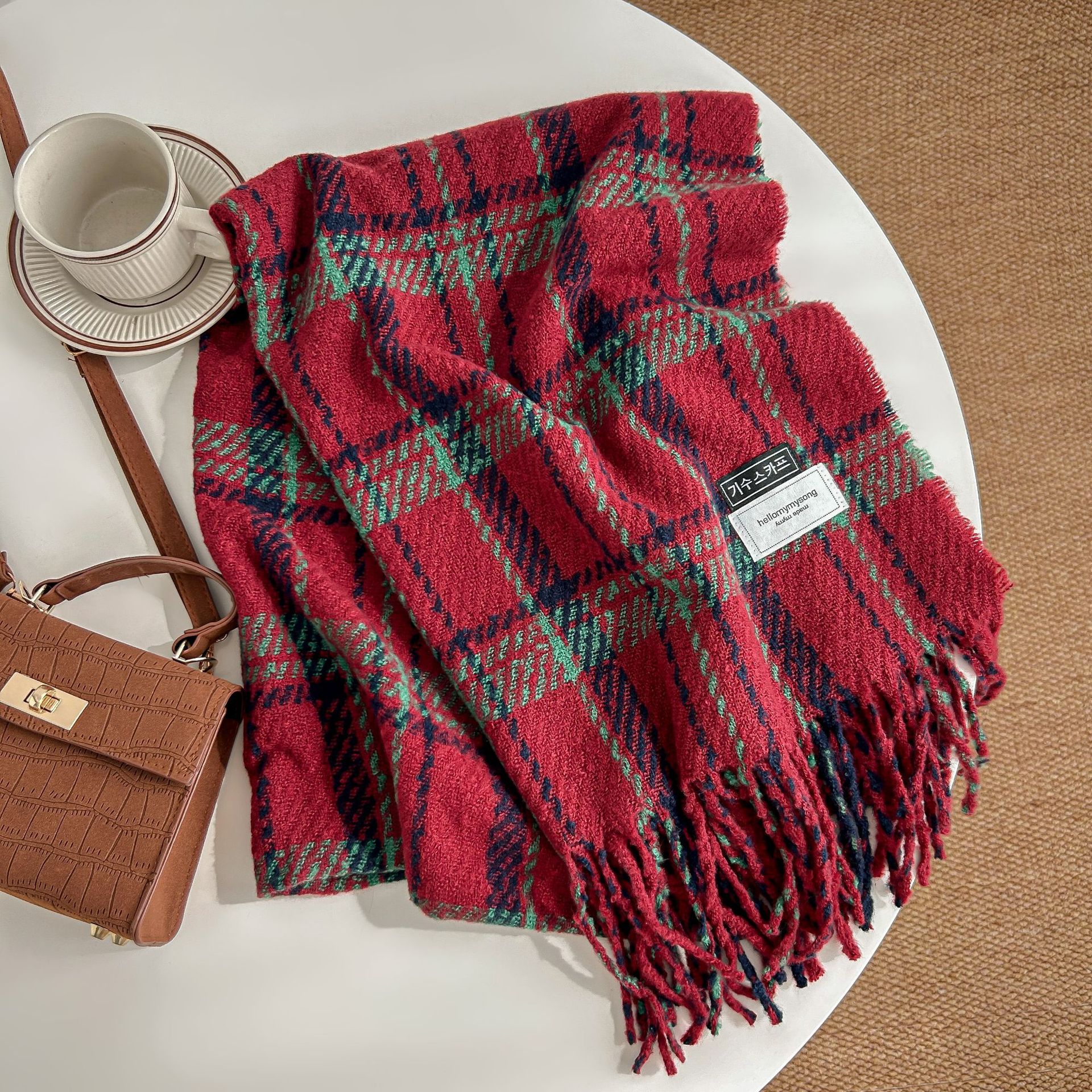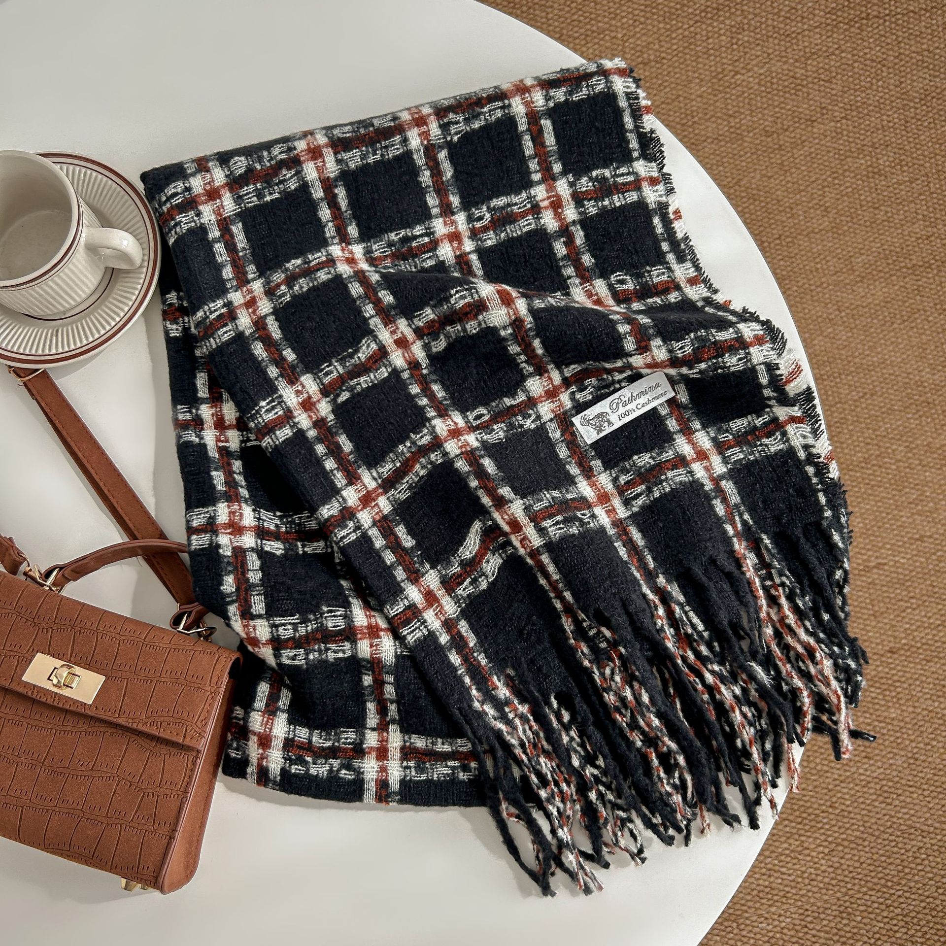 2024 새로운 스타일의 분위기 스카프 여자 겨울 하이 엔드 올 매치 두꺼운 스카프 커플의 따뜻한 격자 무늬 대형 목도리스토어 가기