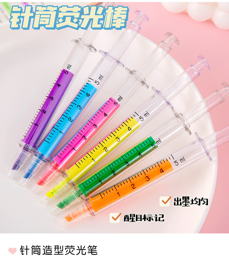 창조적 인 주사기 형광펜 귀여운 주사기 이중 목적 형광 수채화 펜 학생들은 키 마킹 펜을 그립니다