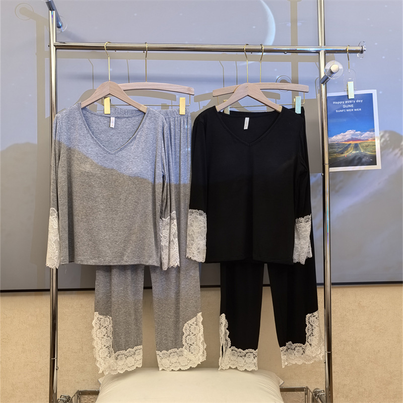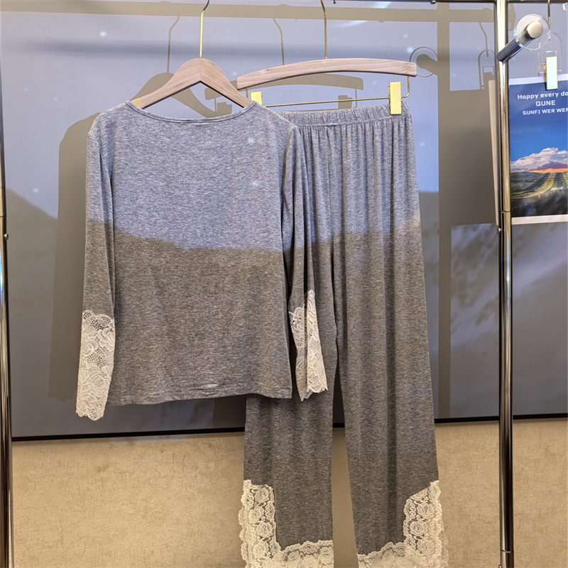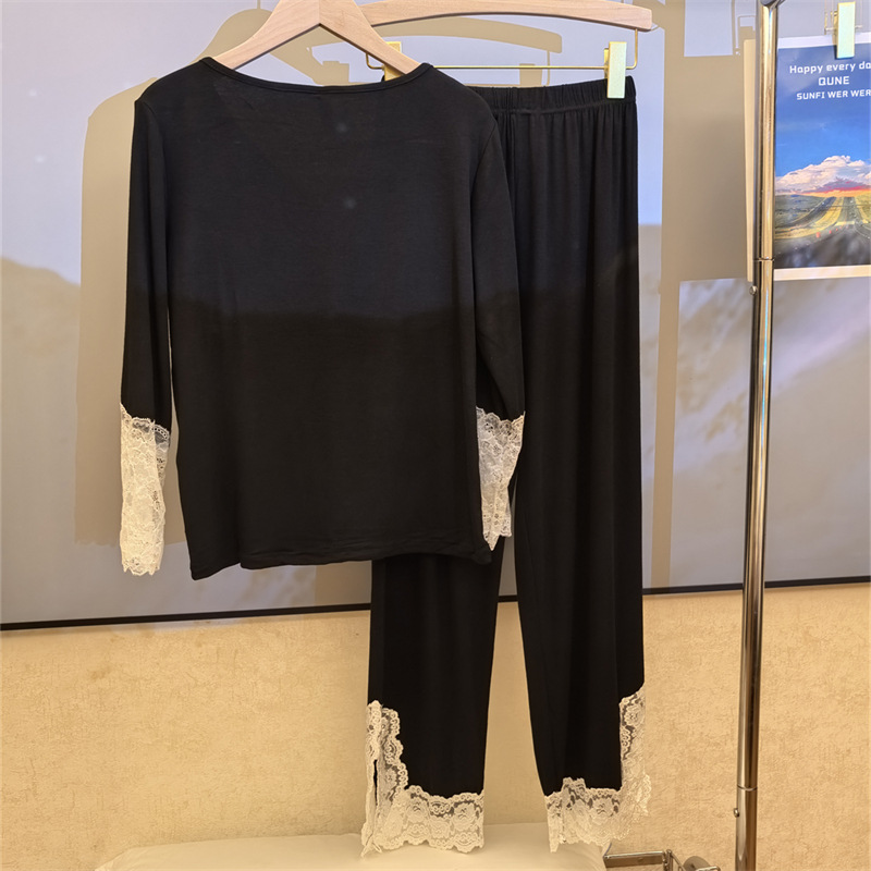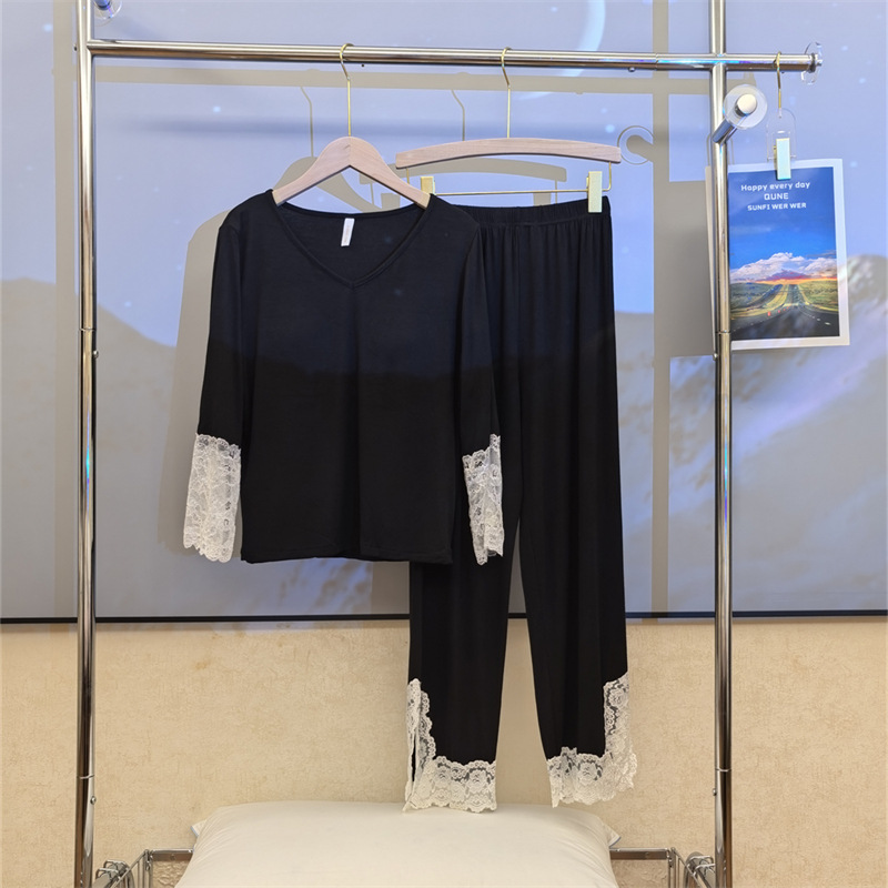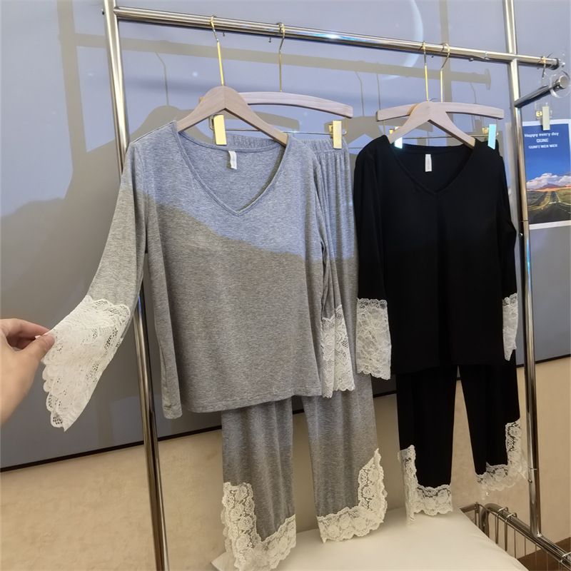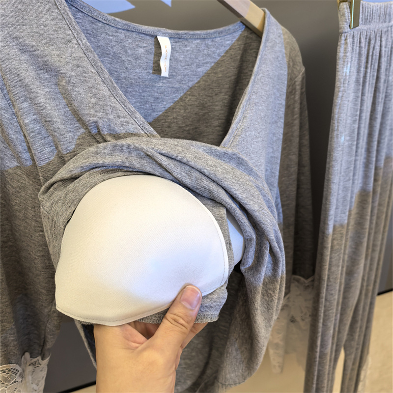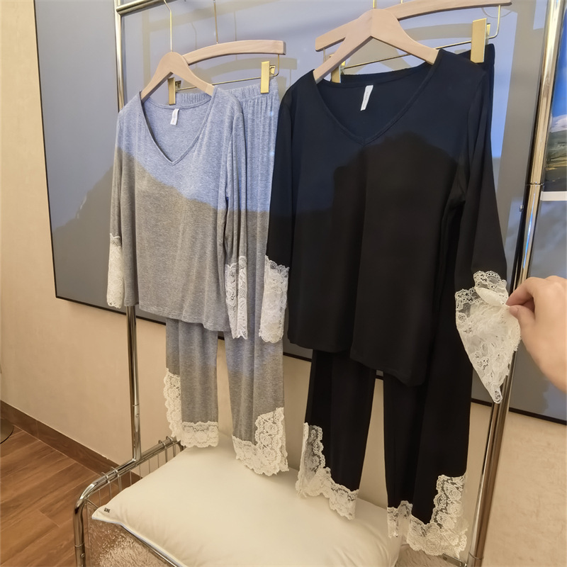 봄과 가을 새로운 프랑스 스타일 순수한 욕망 스타일 파자마 여성용 긴팔 바지 가슴 패드 스위트 레이스 섹시한 홈 의류 세트