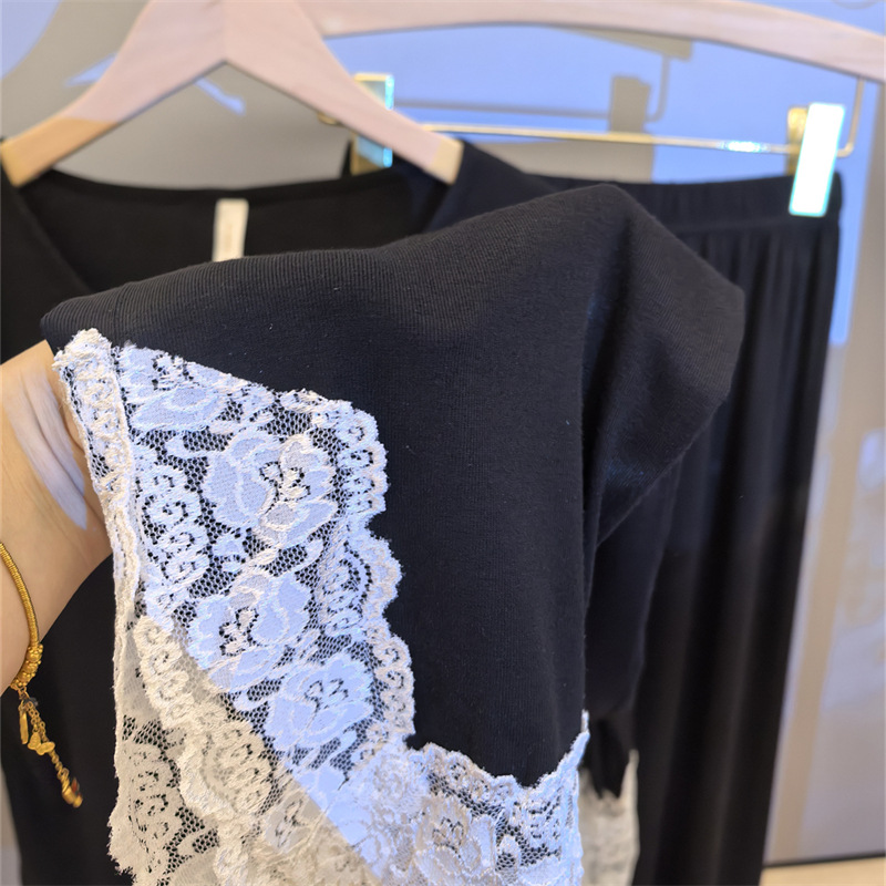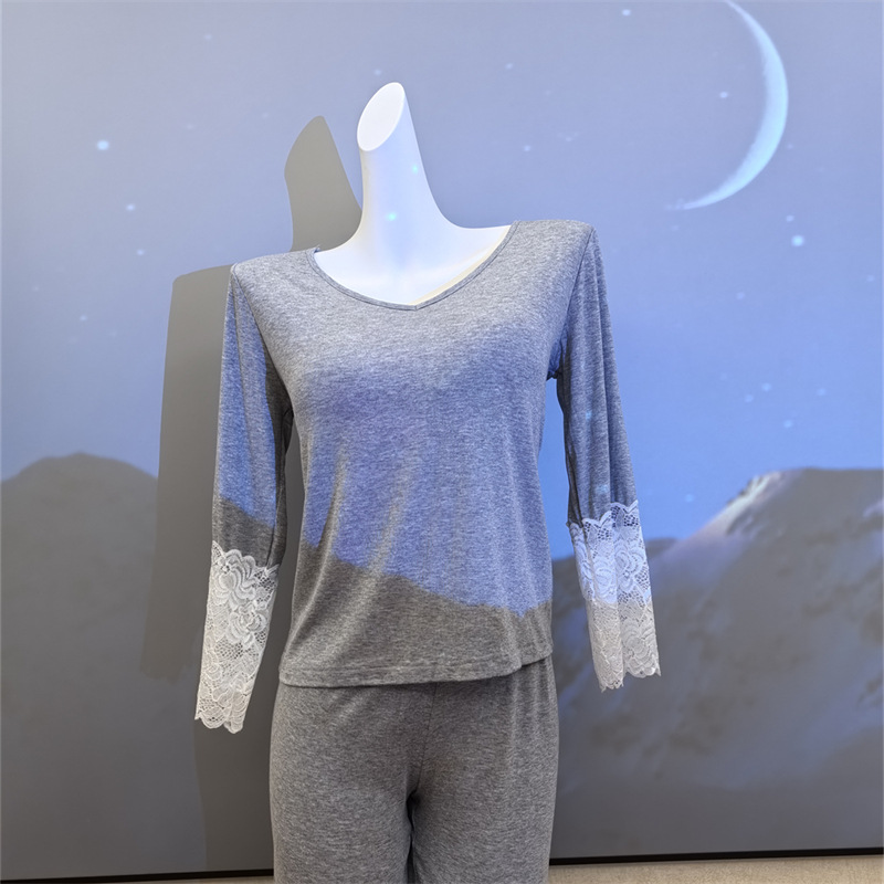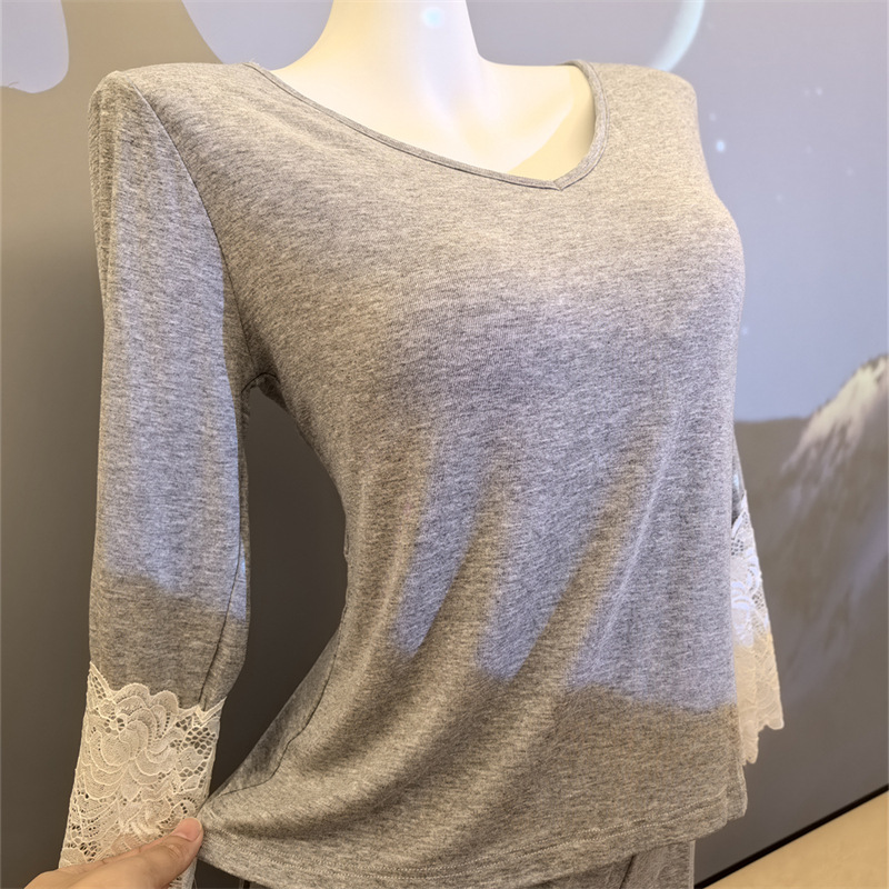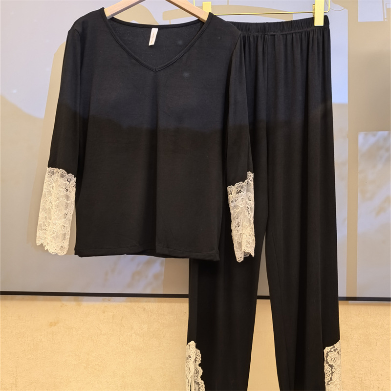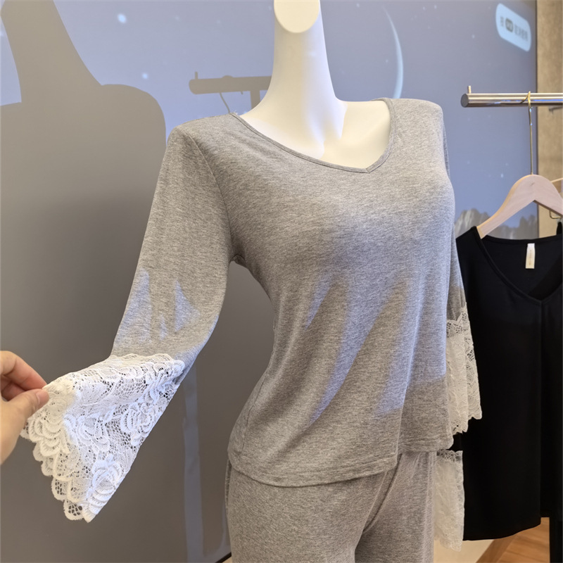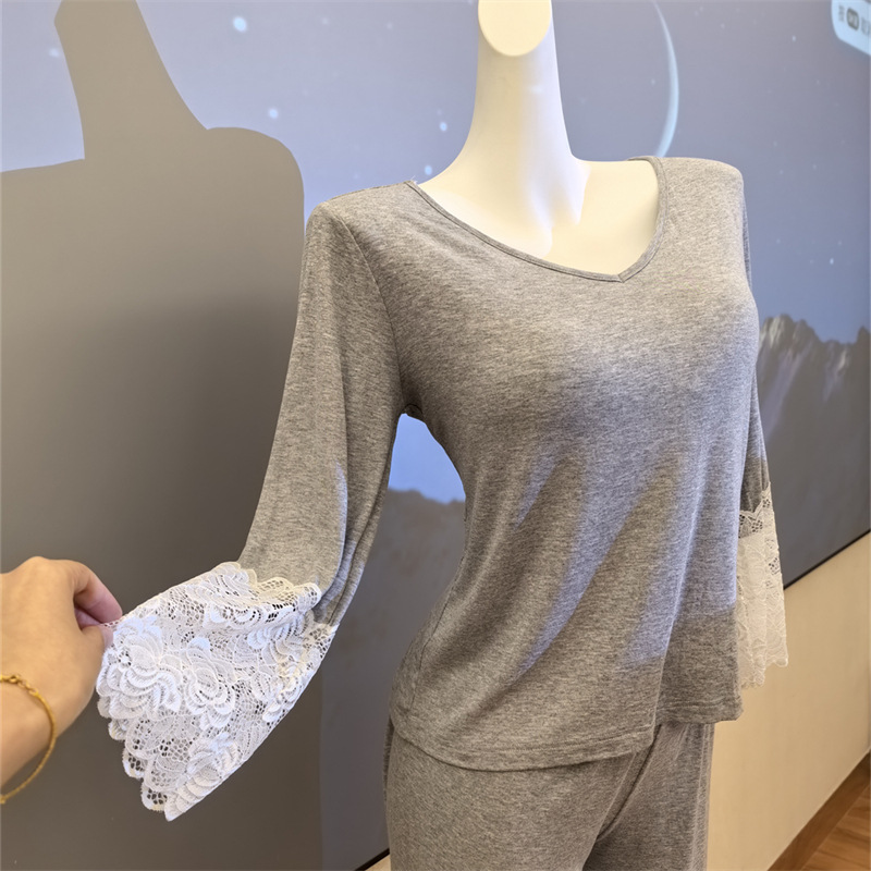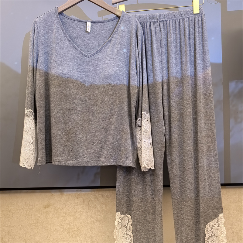 봄과 가을 새로운 프랑스 스타일 순수한 욕망 스타일 파자마 여성용 긴팔 바지 가슴 패드 스위트 레이스 섹시한 홈 의류 세트
