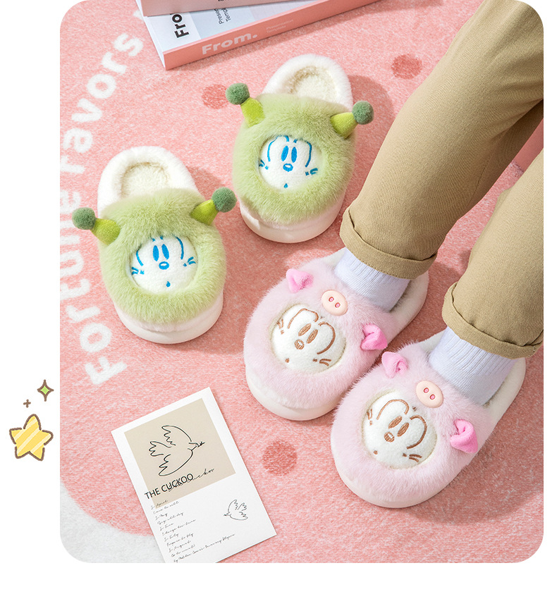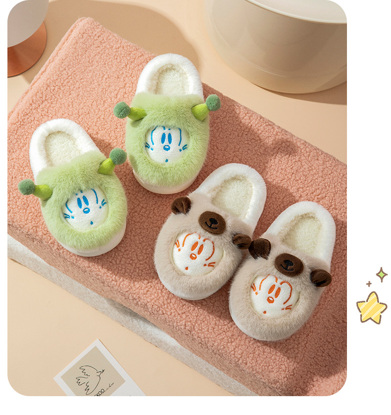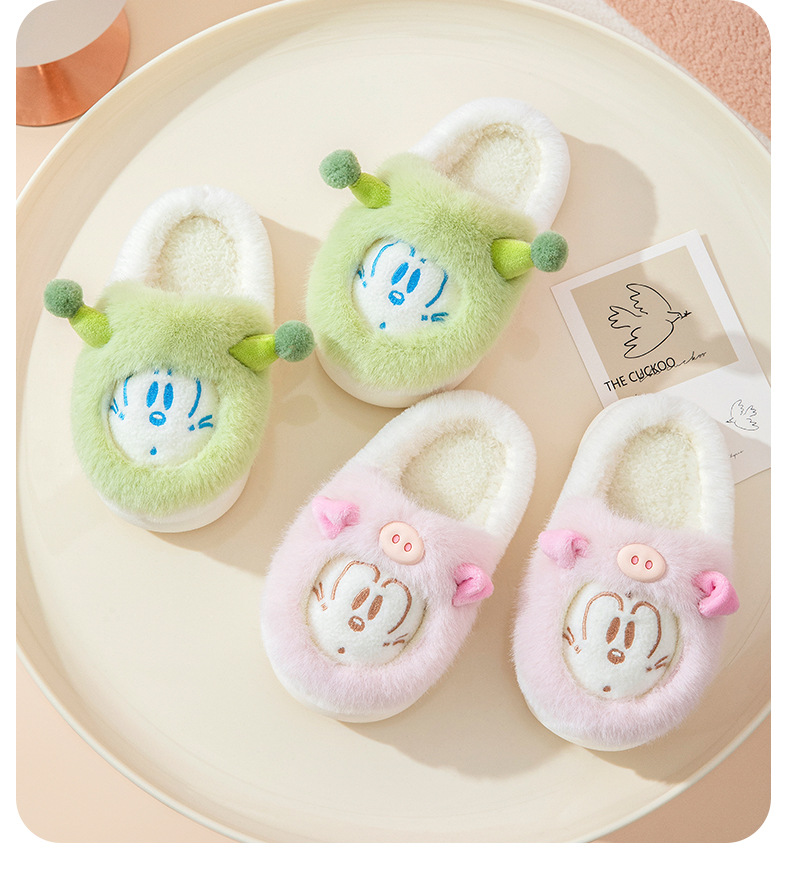 바부 콩 어린이 면 슬리퍼 소녀 겨울 새 집 비 슬립 코튼 신발 작은 소년의 만화 양털 슬리퍼스토어 가기