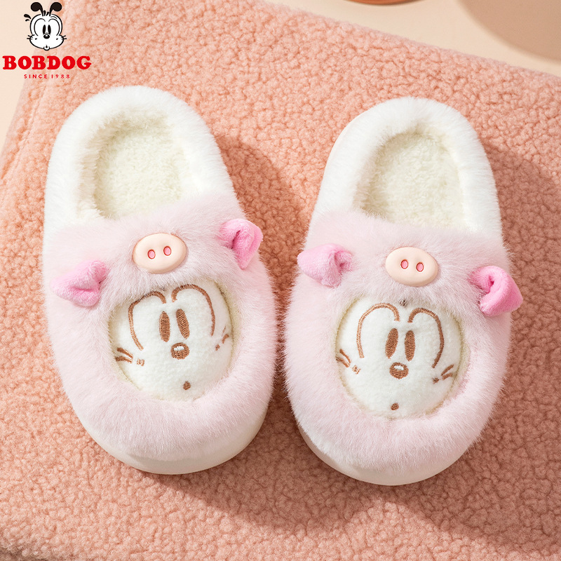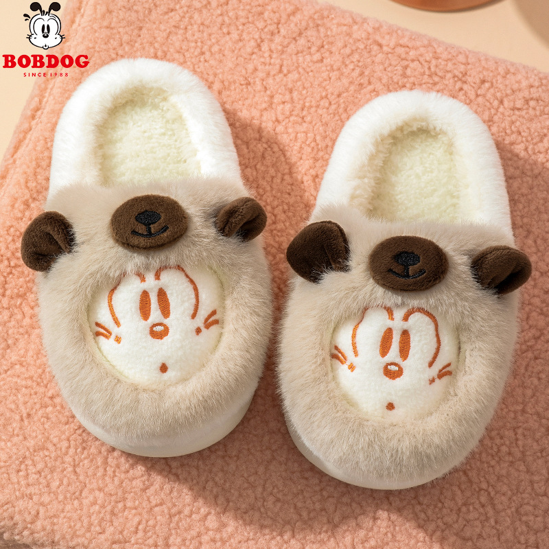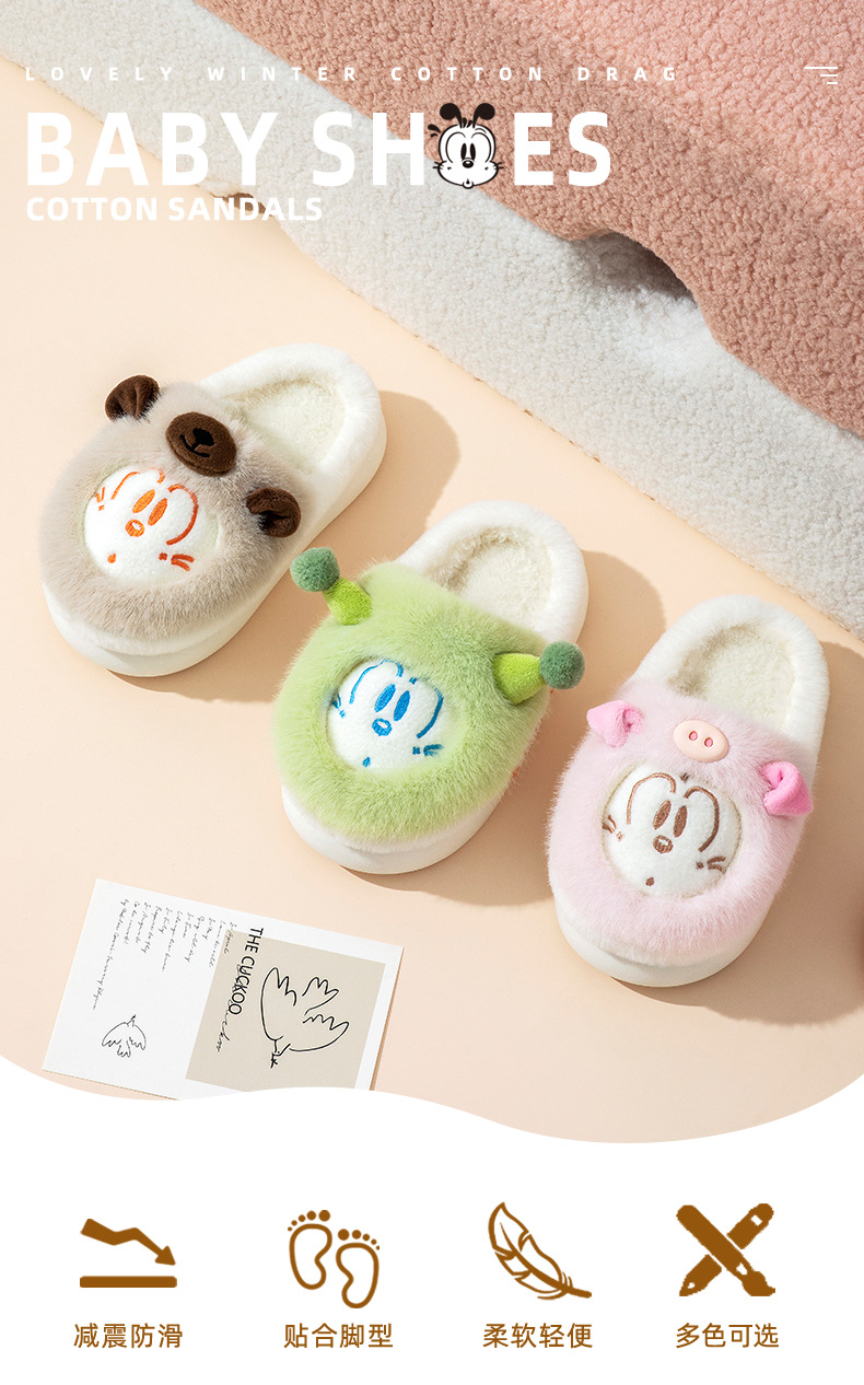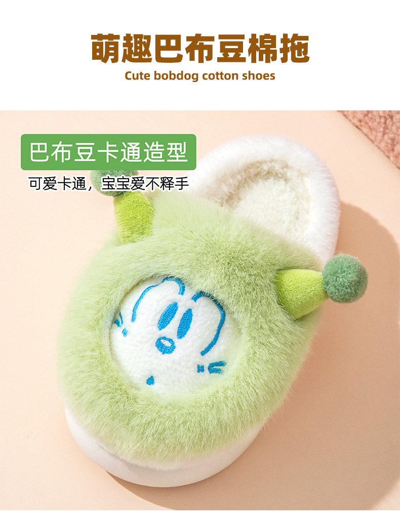 바부 콩 어린이 면 슬리퍼 소녀 겨울 새 집 비 슬립 코튼 신발 작은 소년의 만화 양털 슬리퍼