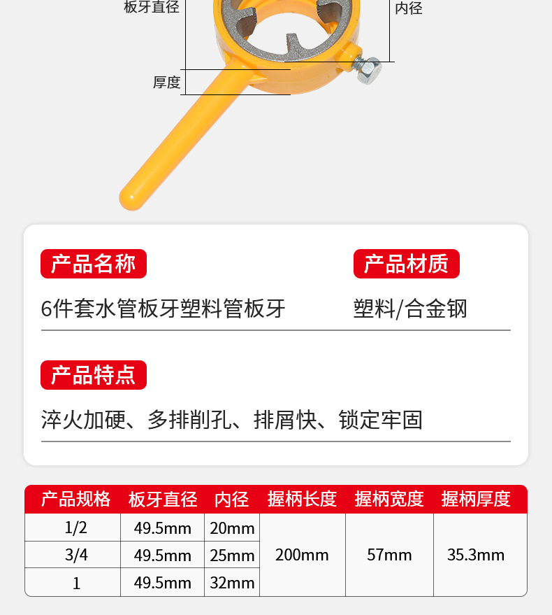 공장 직접 pvc 수도관 다이 탭 세트 4 점 6 점 플라스틱 파이프 도청 도구 손 탭 다이