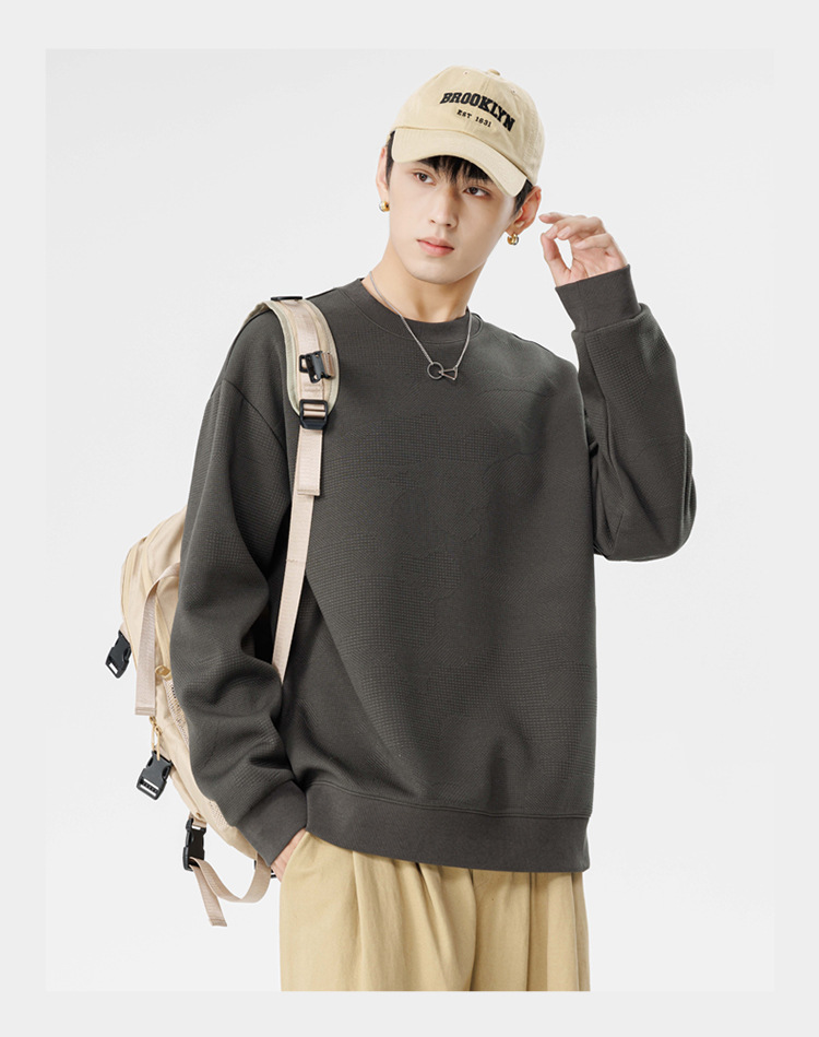 남성용 긴팔 티셔츠 남성용 스웨터 봄과 가을 트렌디 브랜드 올매치 루즈 라운드 넥 학생 내탑베이스 셔츠 남성복스토어 가기
