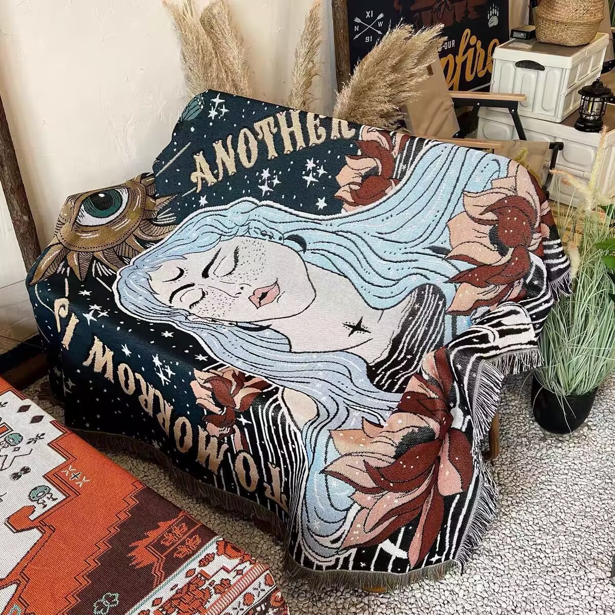 개인 맞춤형 면사 야외 RV 캠핑 담요 사무실 캐주얼 낮잠 담요 홈 테이프 카펫 소파 담요스토어 가기