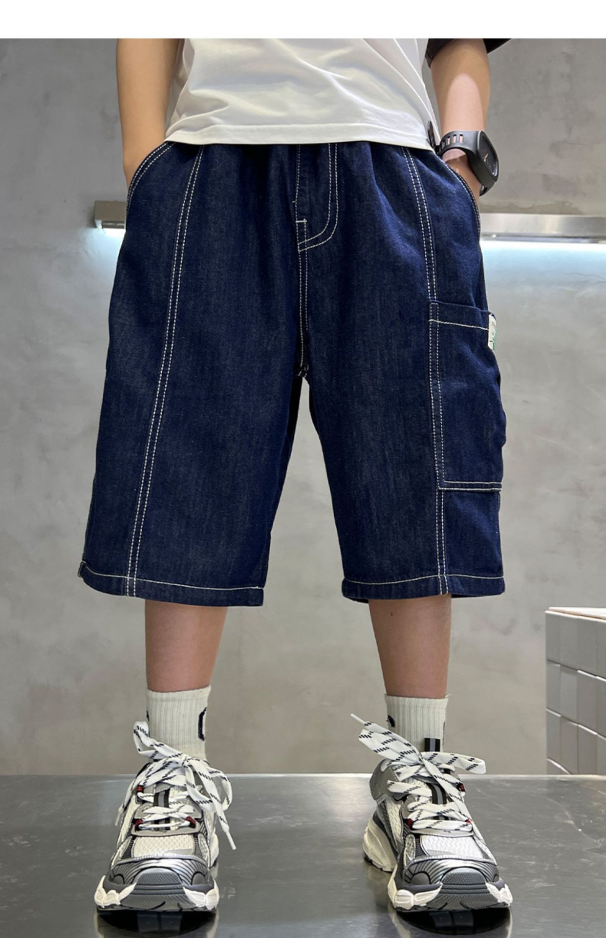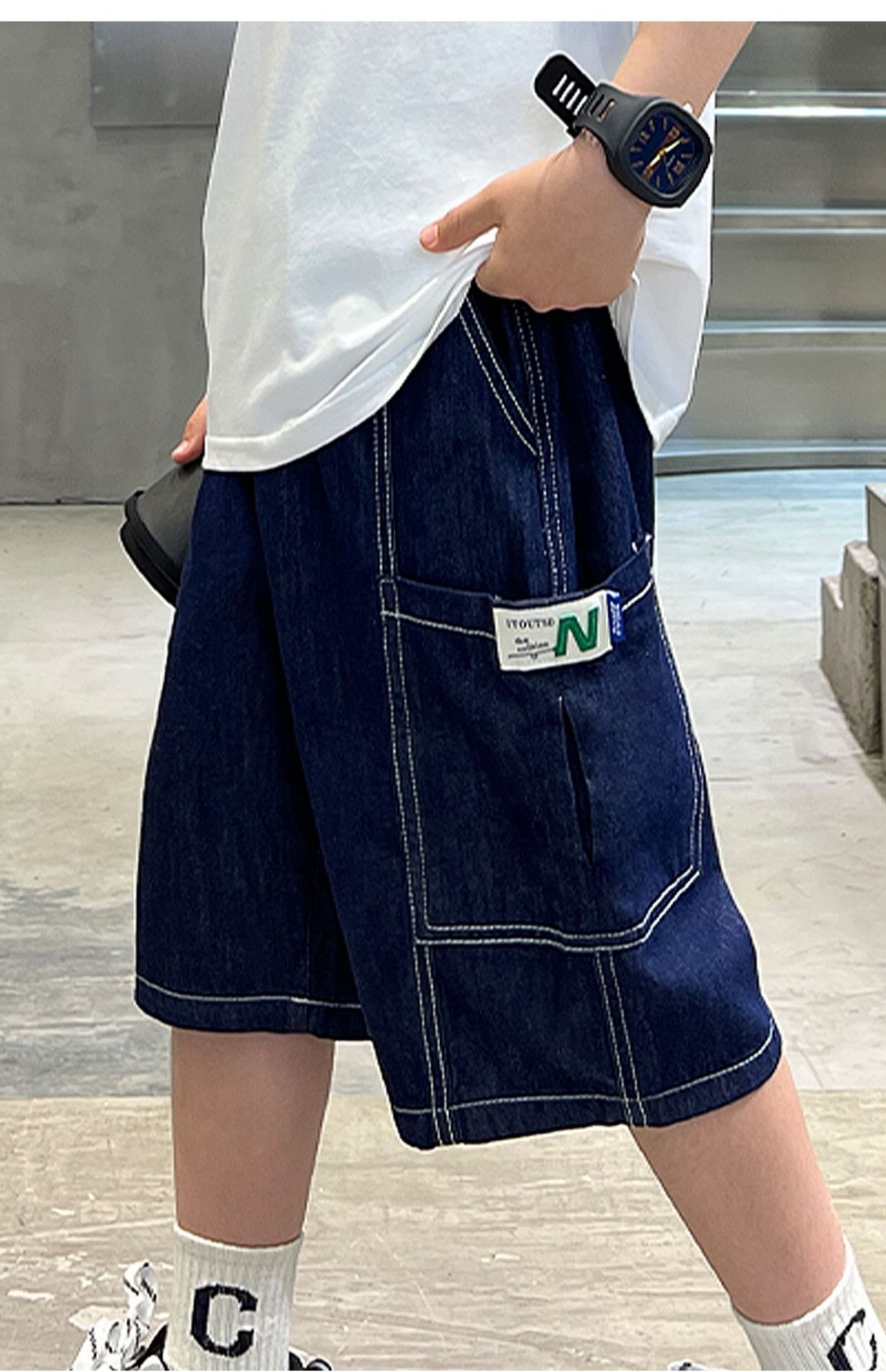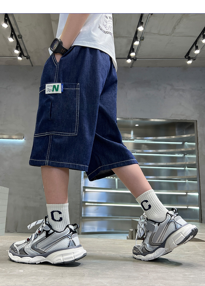 어린이 서양식 한국식 부드러운 청바지 대형 아동복 여름 새 반바지 소년 캐주얼 5 점 바지스토어 가기
