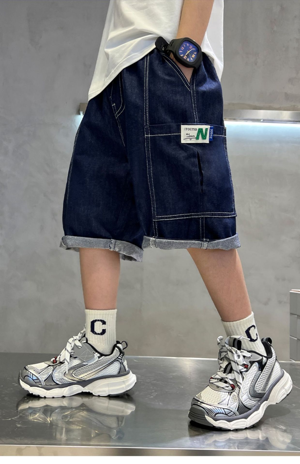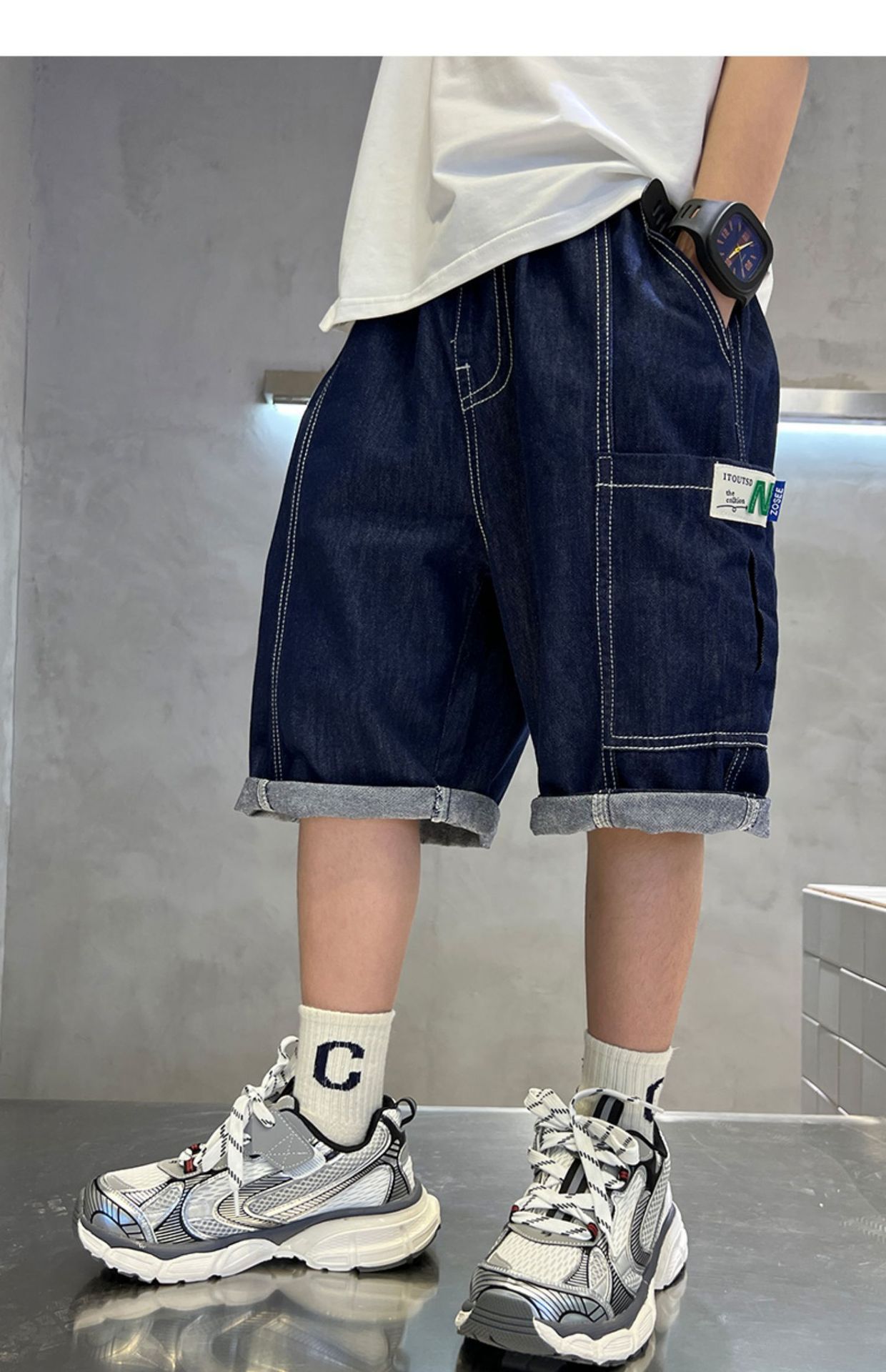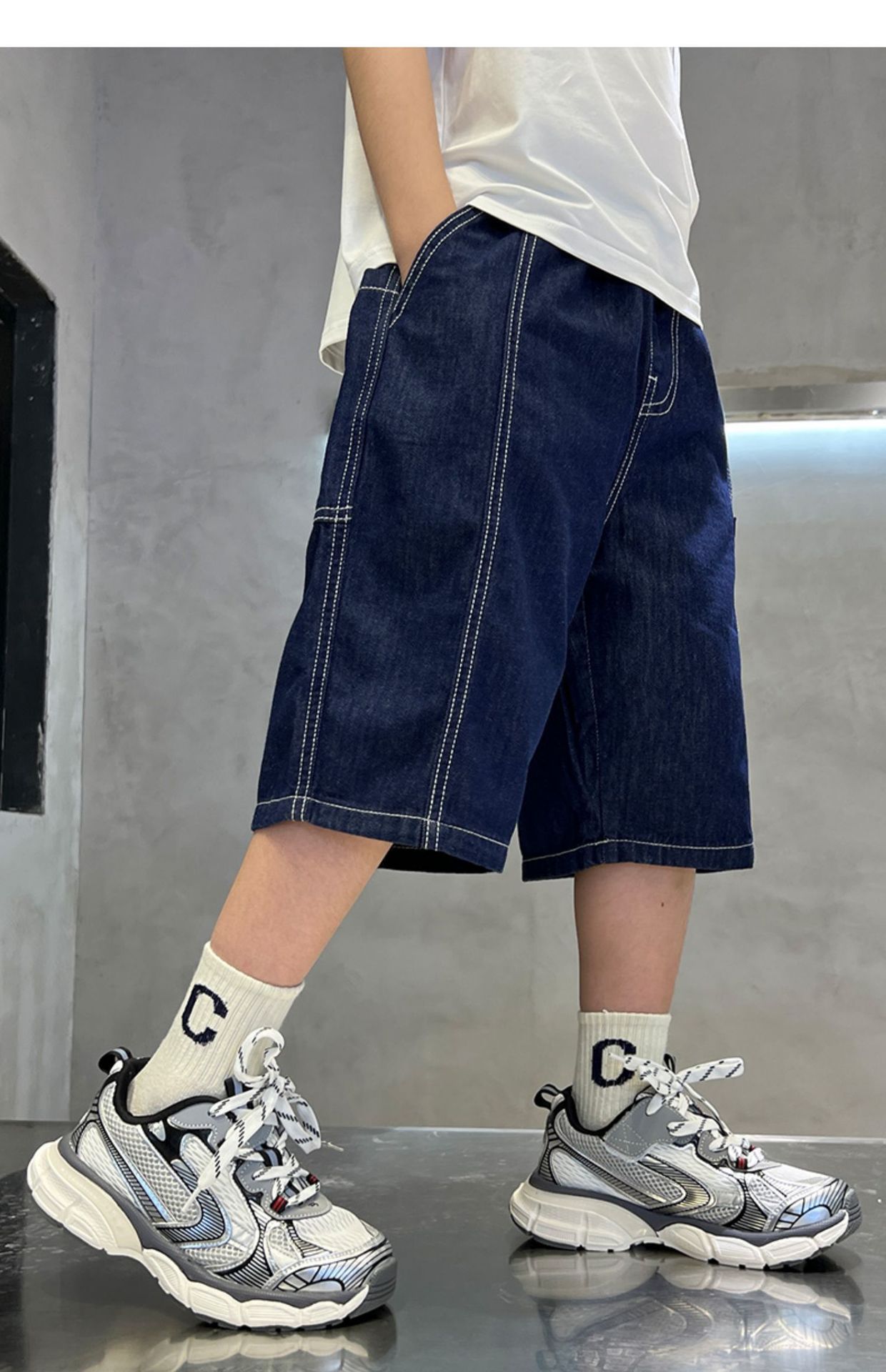 어린이 서양식 한국식 부드러운 청바지 대형 아동복 여름 새 반바지 소년 캐주얼 5 점 바지스토어 가기