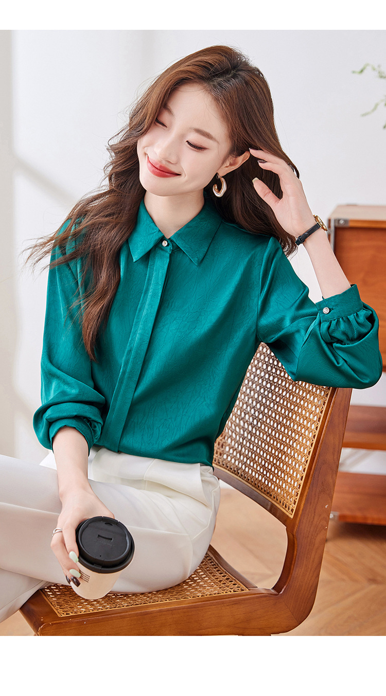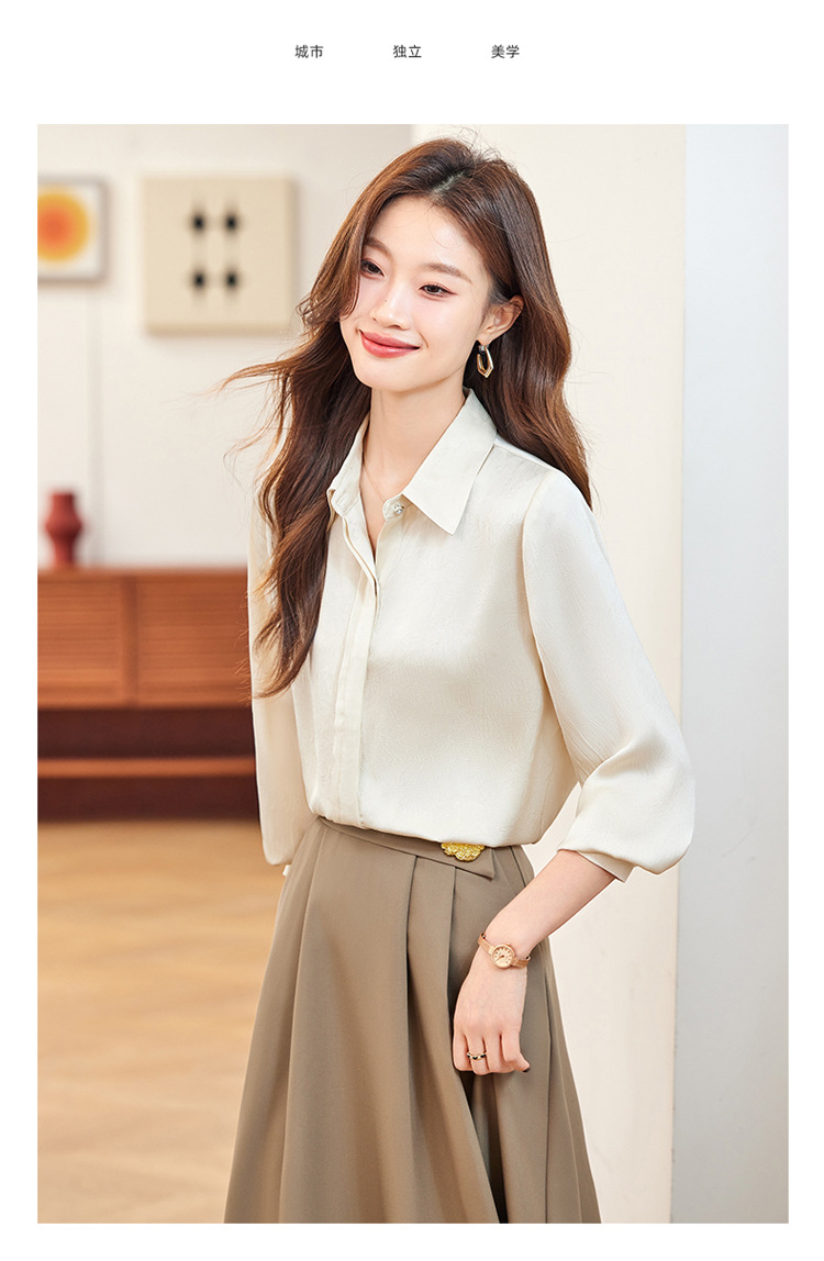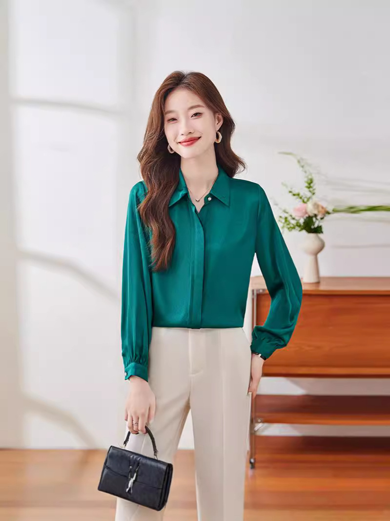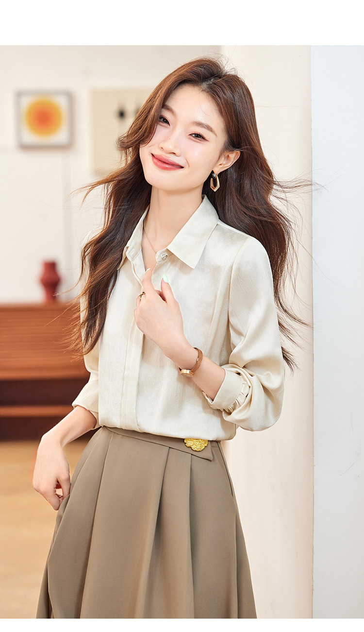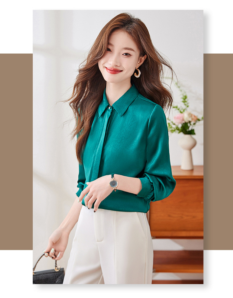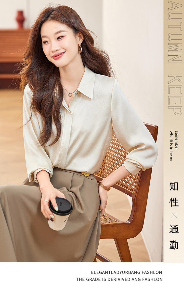 가을 2024 패션 슬림 핏 여성용 긴팔 올매치 도시 아름다운 여성 인기 우아한 통근 셔츠