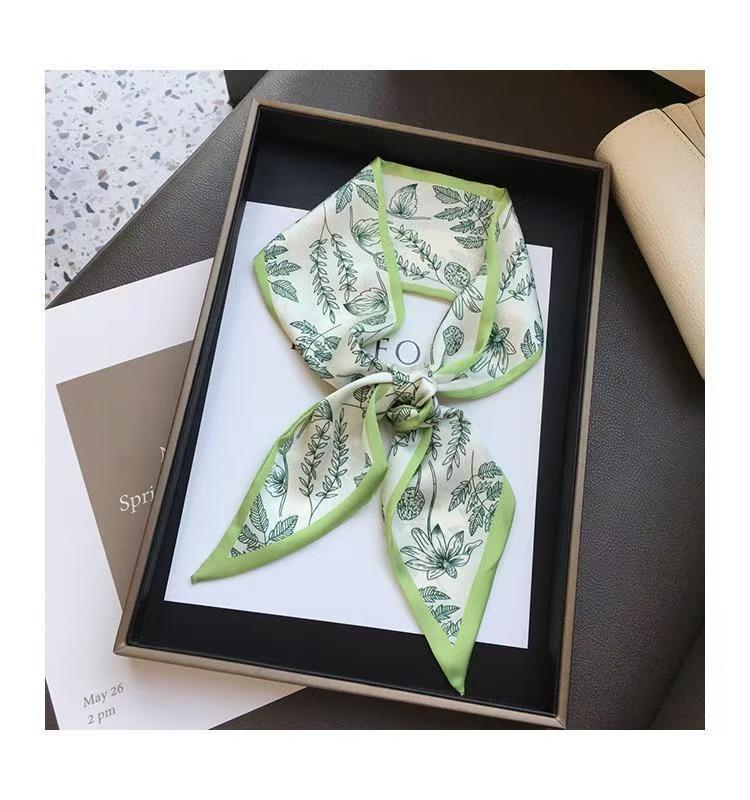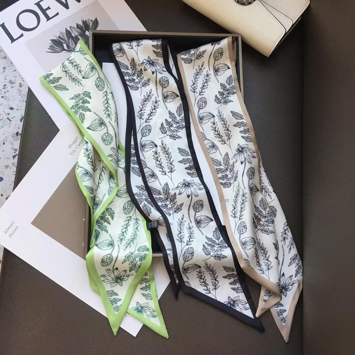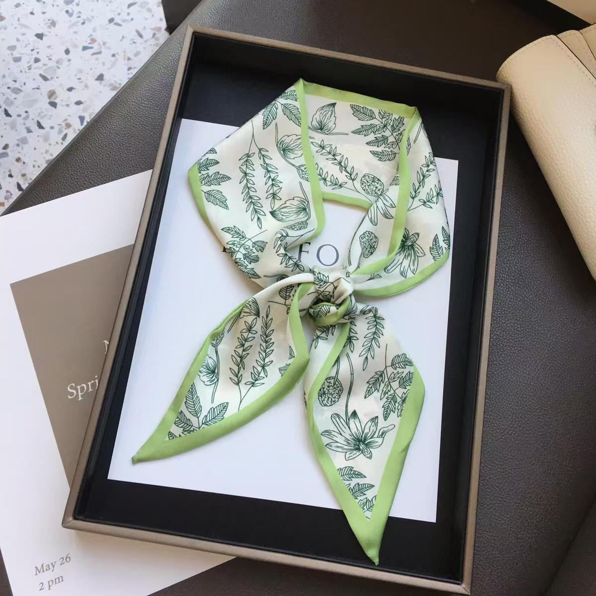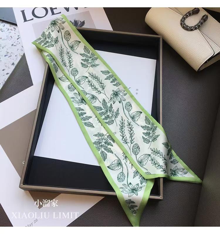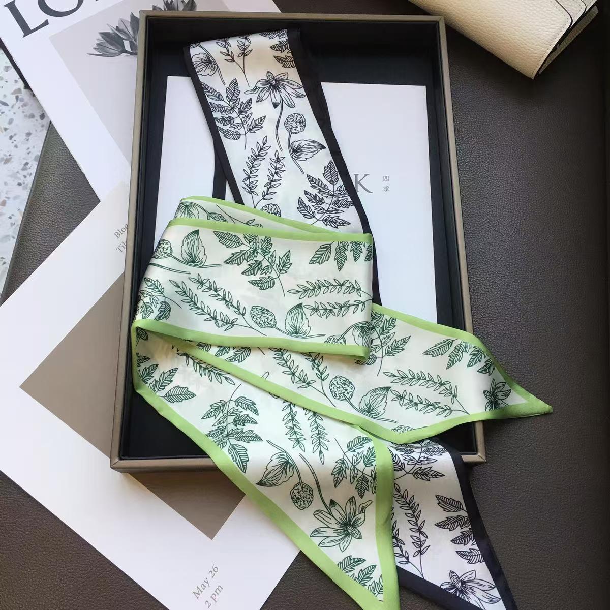 흰색과 부드러운 녹색 작은 실크 스카프 여성의 봄과 여름 좁은 줄무늬 헤어 스트랩 헤어 넥타이 가방 장식 긴 스카프스토어 가기